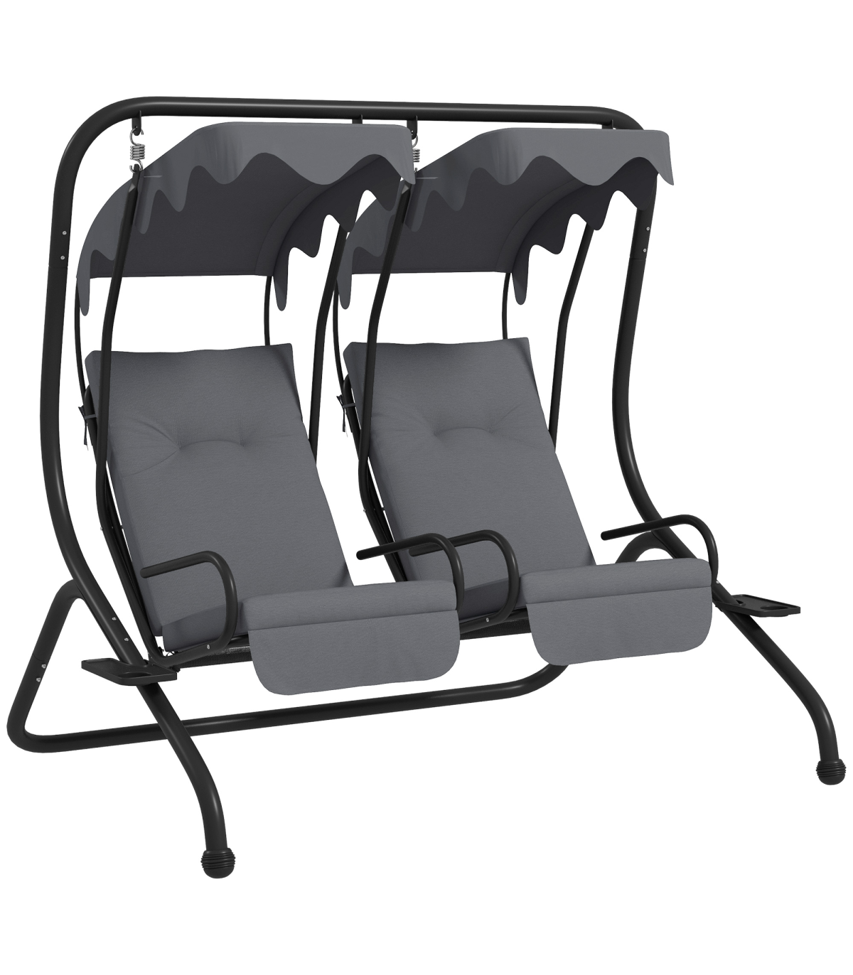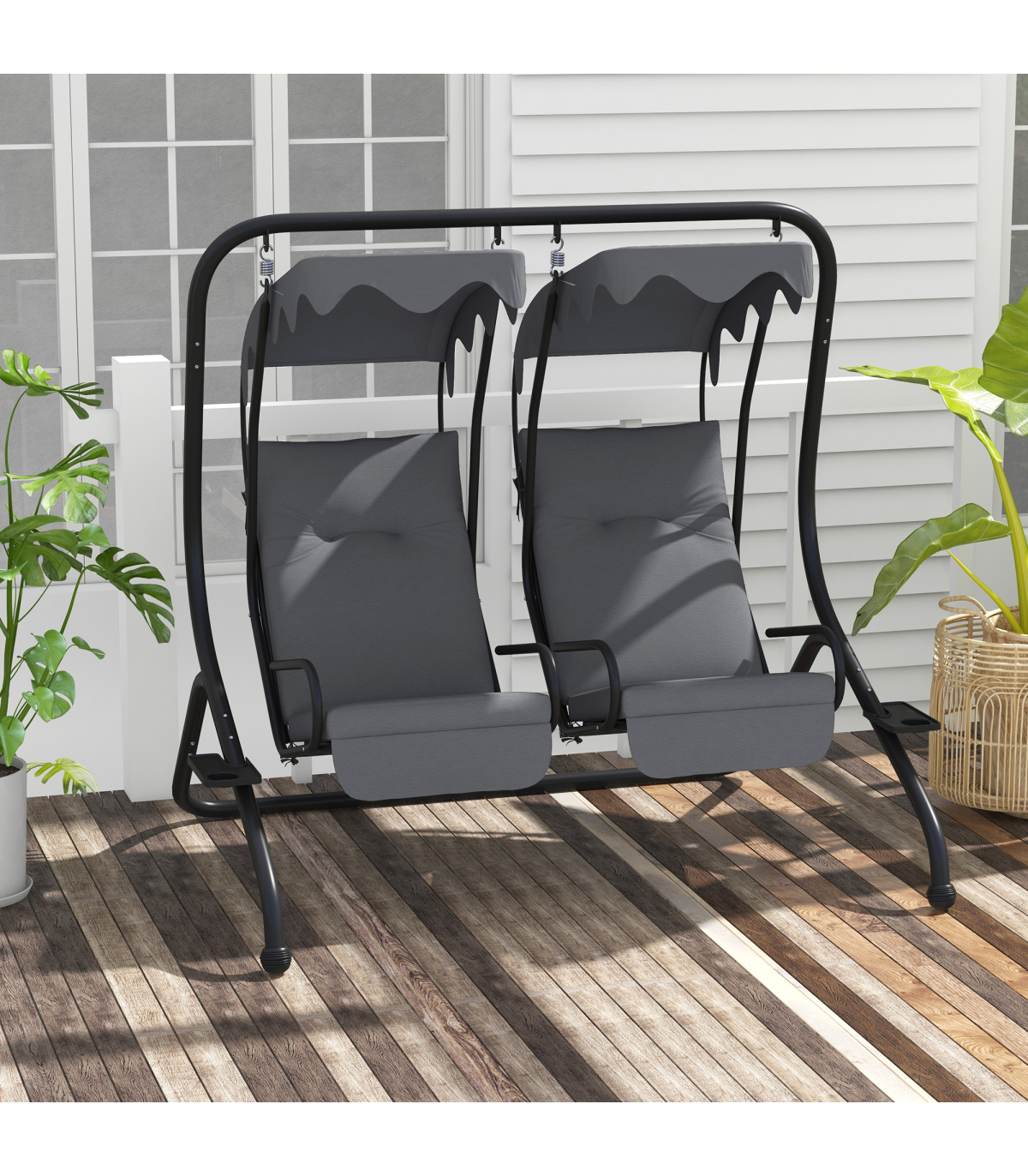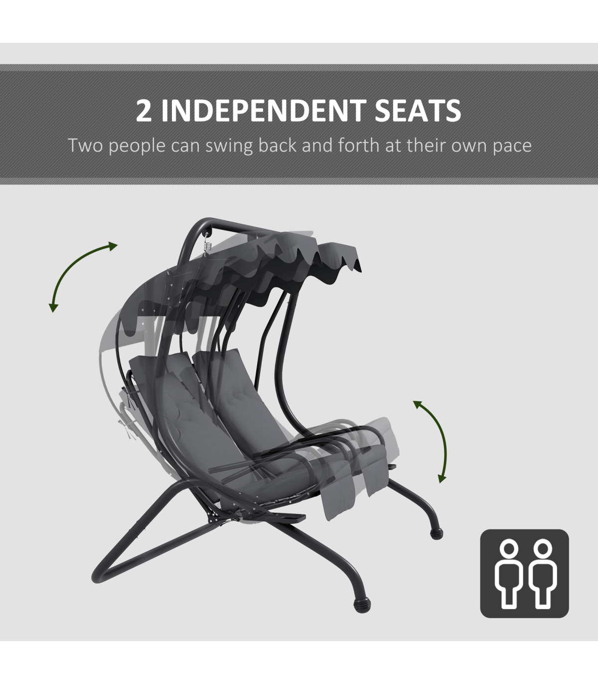 Outsunny Canopy Swing 2 Separate Relax Chairs w/ Handrails, Cup Holders Grey