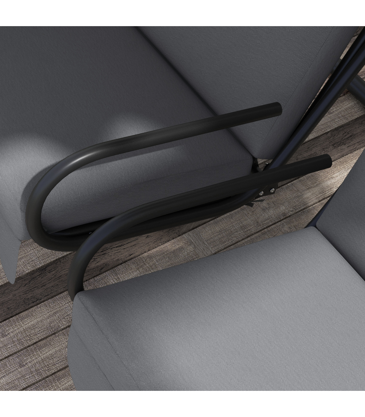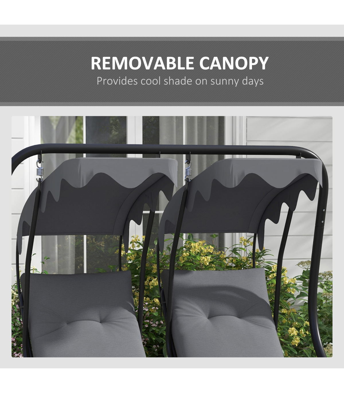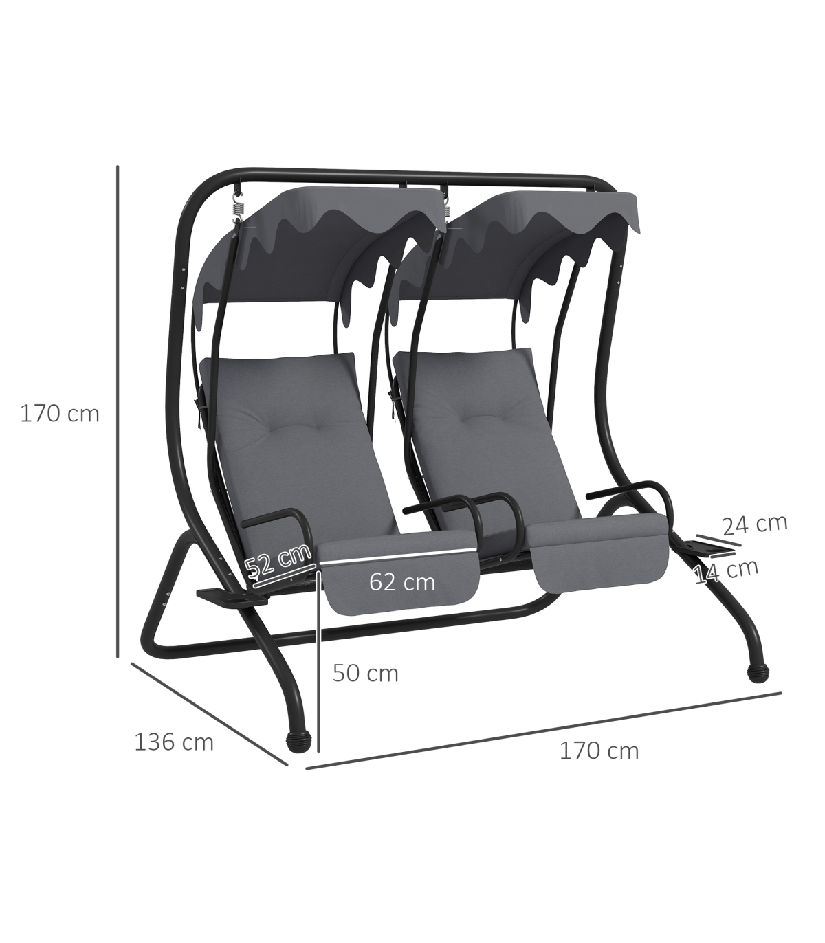 Outsunny Canopy Swing 2 Separate Relax Chairs w/ Handrails, Cup Holders Grey