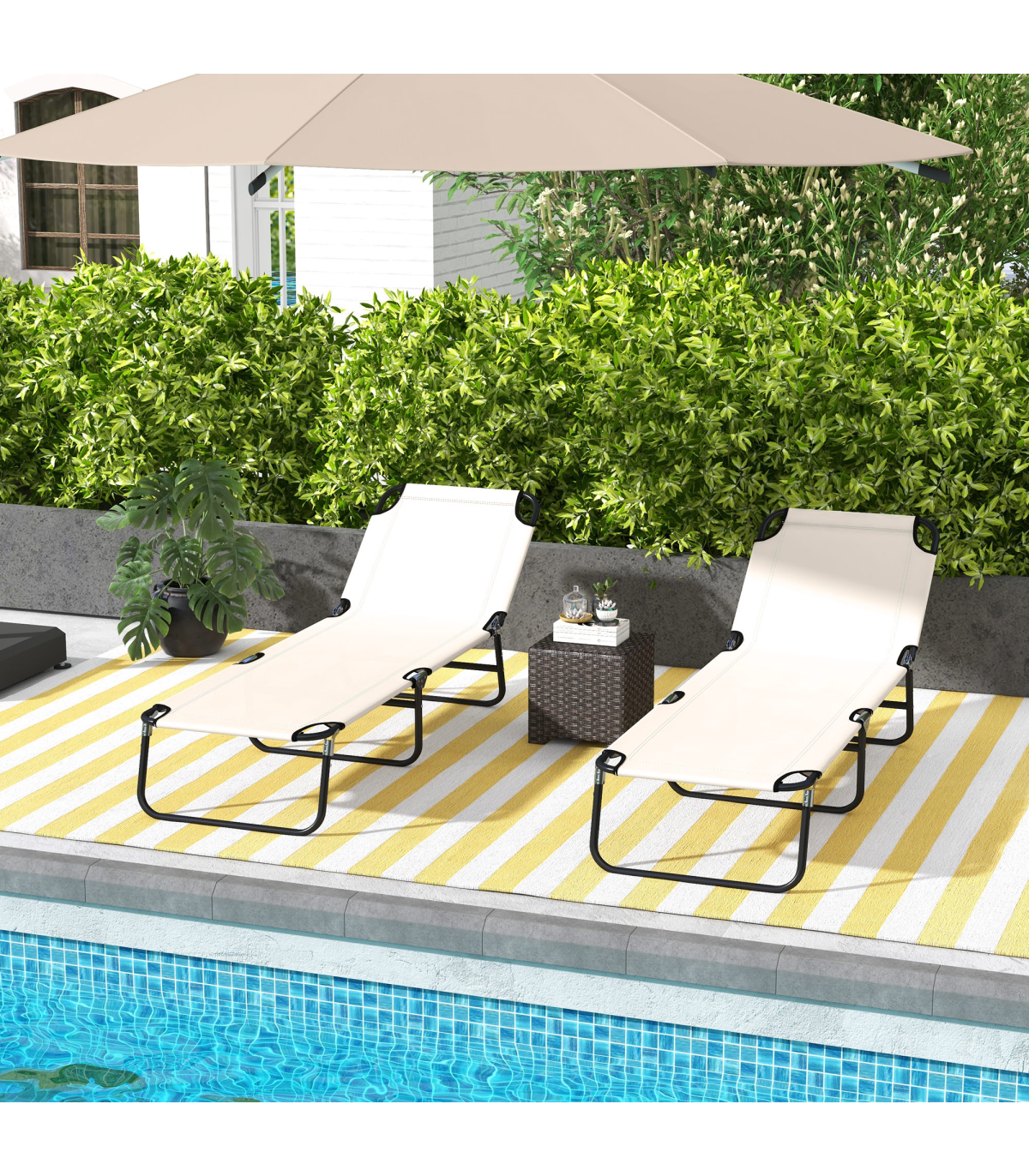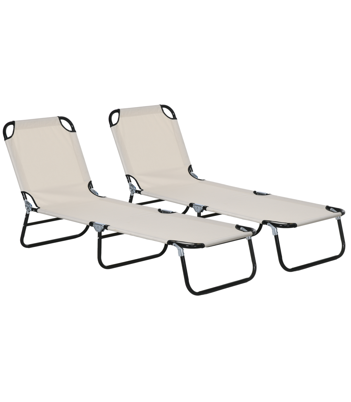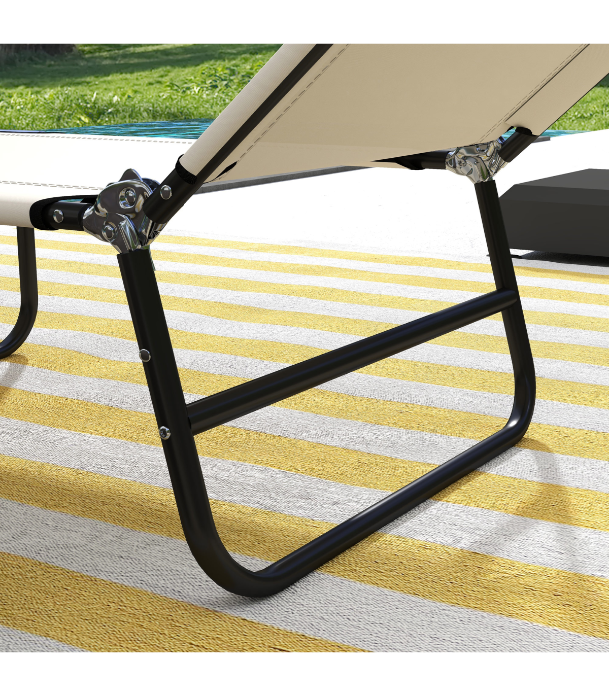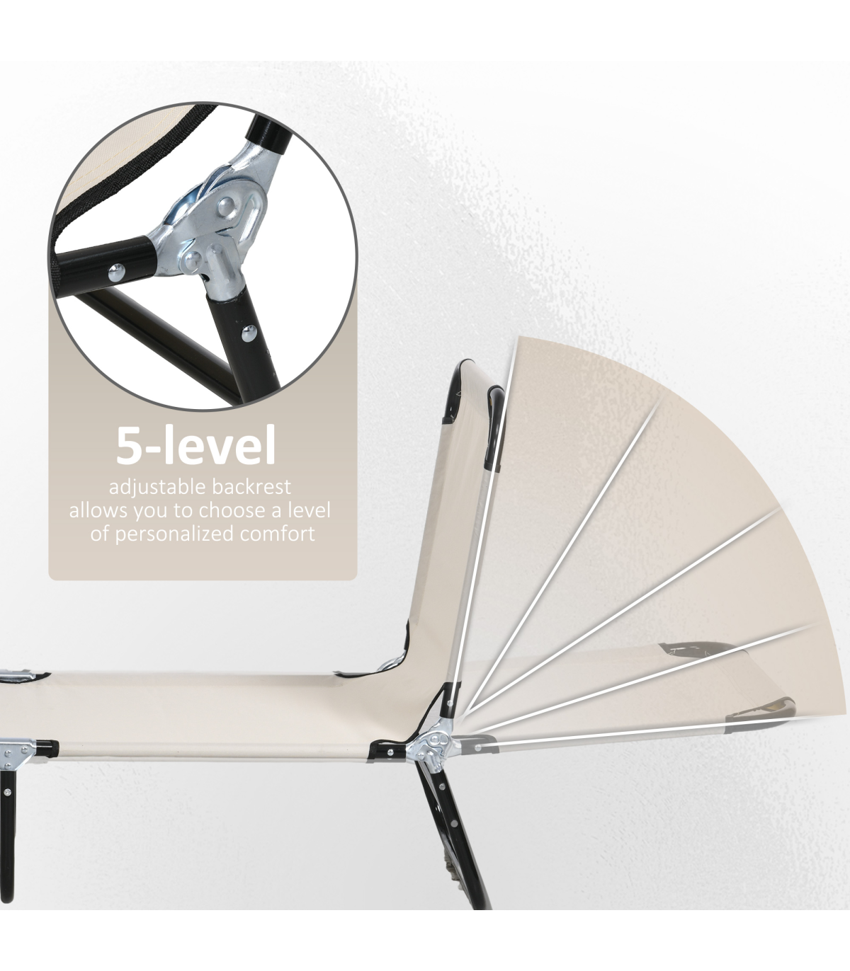 Outsunny 2 Piece Reclining Chaise Lounge with 5-Level Adjustable Backrest Cream