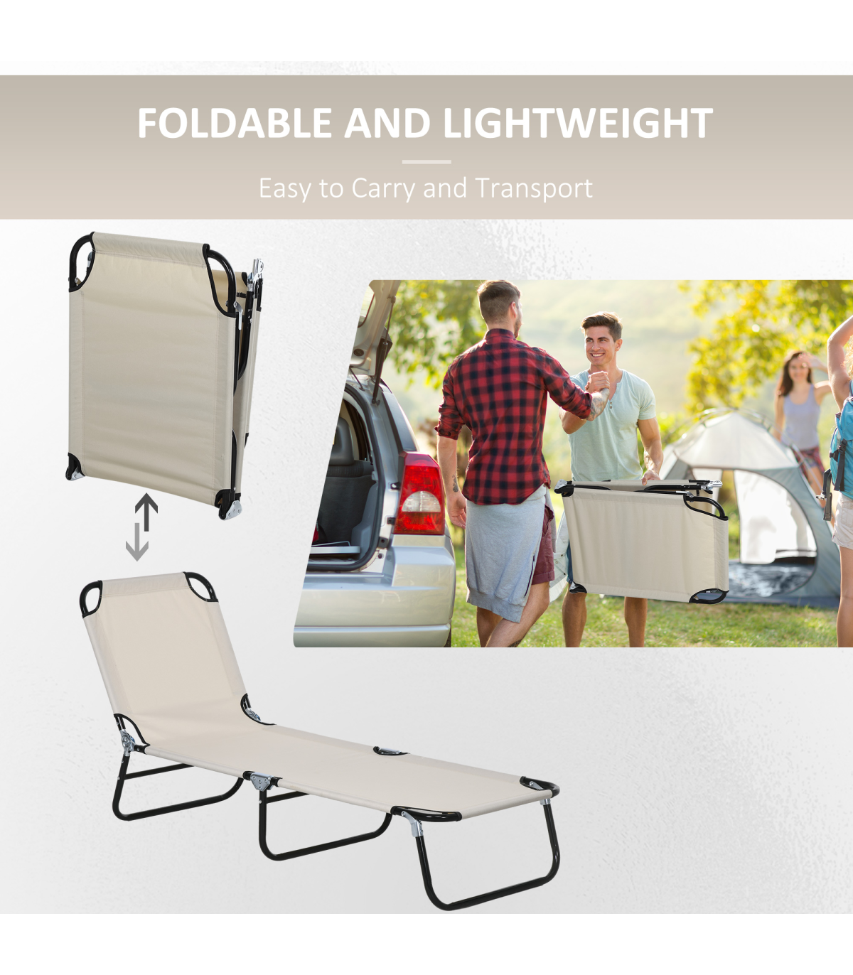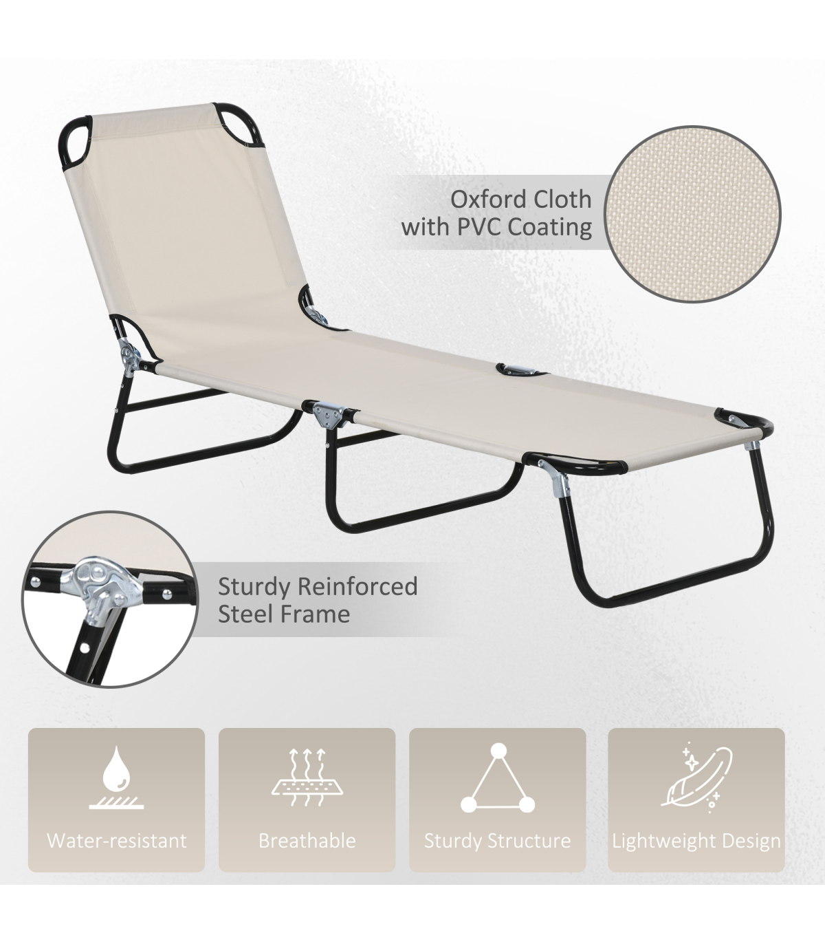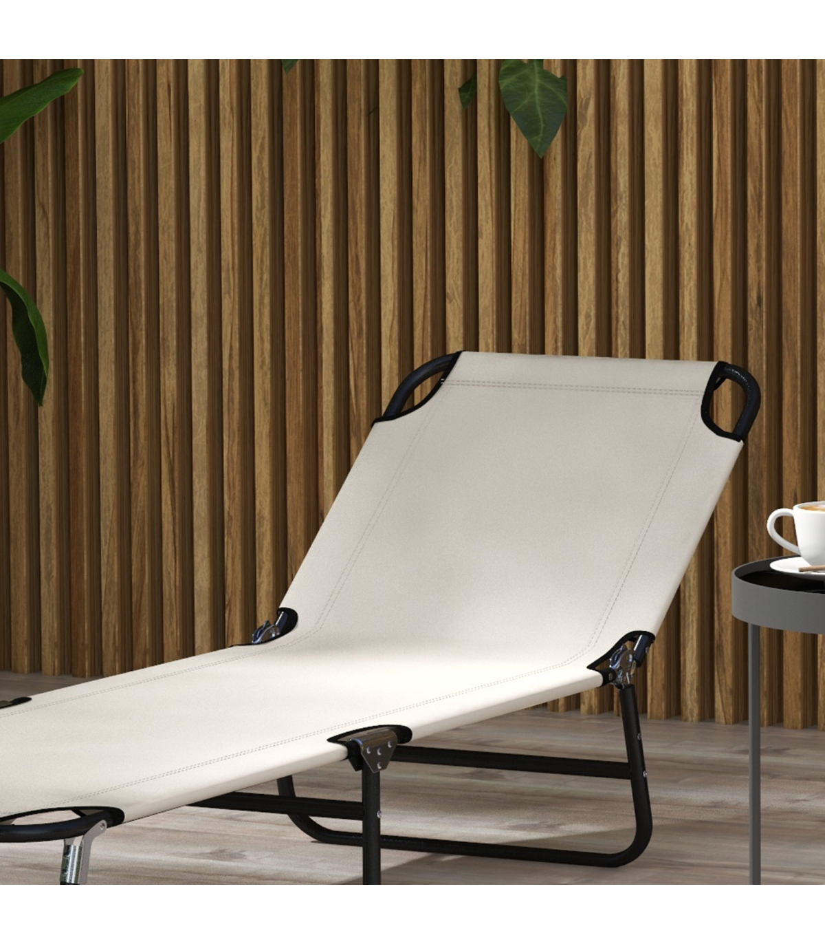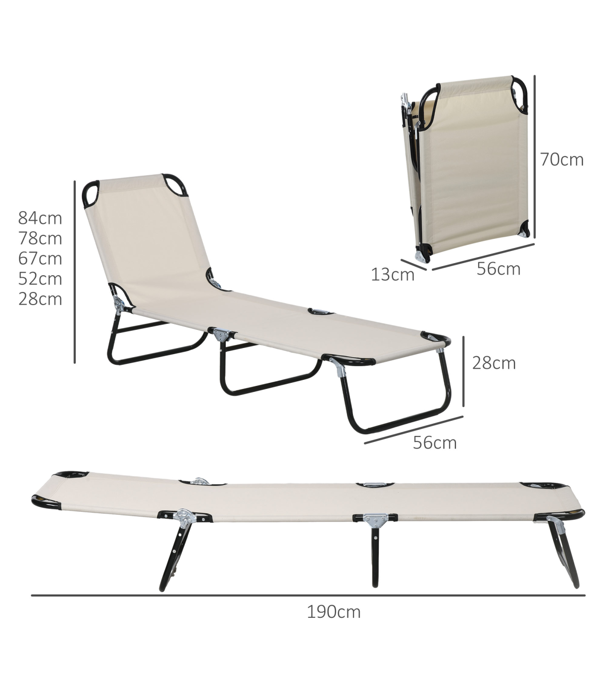 Our Outsunny folding sun lounger is strong, comfortable and will support you all afternoon long. Reinforced metal frames keep you supported - fabric seats are fitted to keep you comfortable. Three long legs keep the lounger balanced. The back can be set to five different positions - choose a position you prefer best.