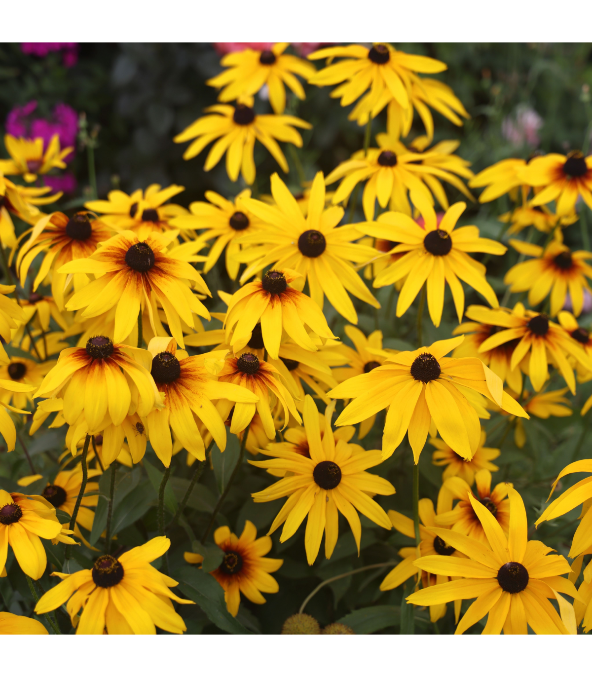 Black eyed single yellow flowers with cone-shaped, black brown centres from August - October. Ideal for adding colour in the late summer.