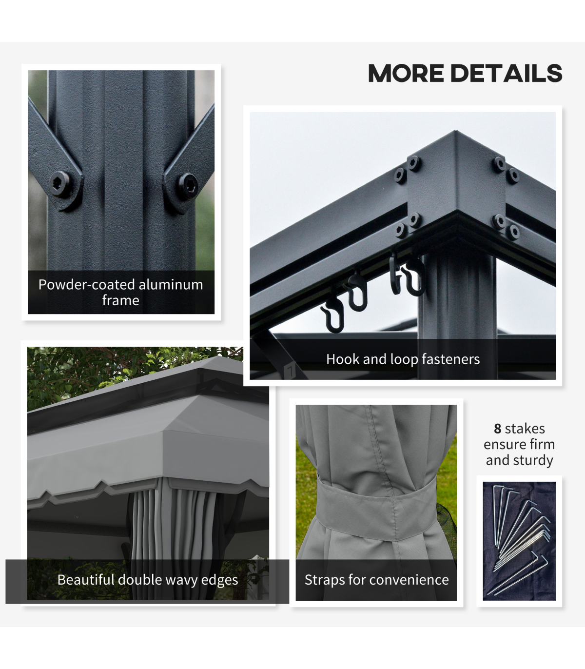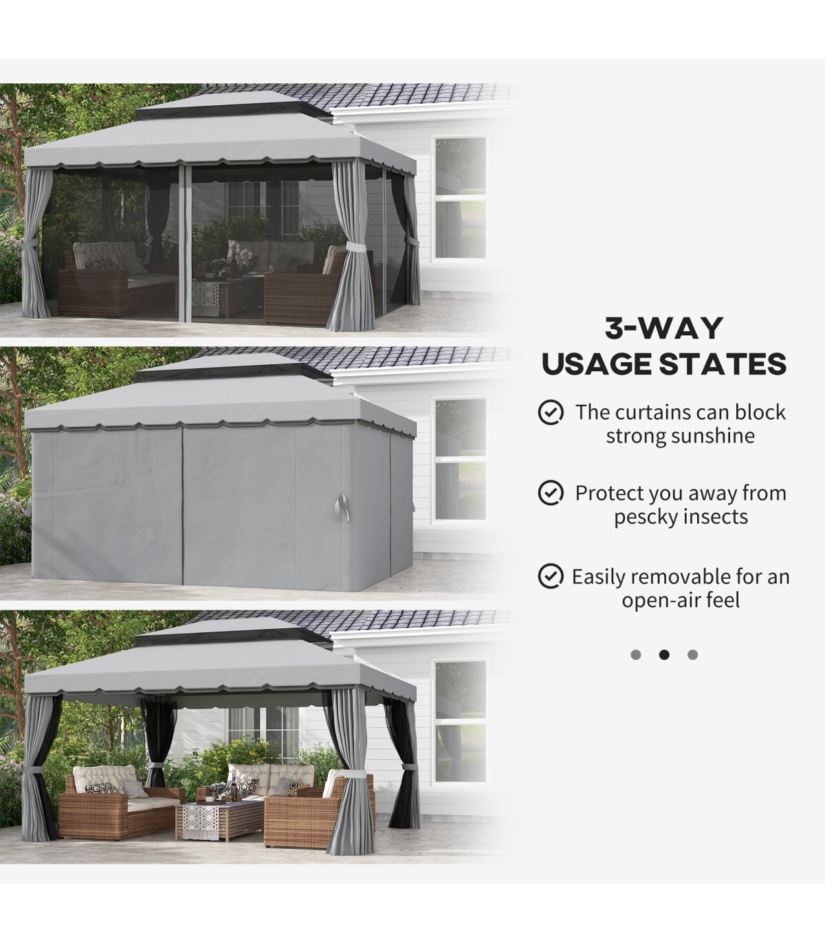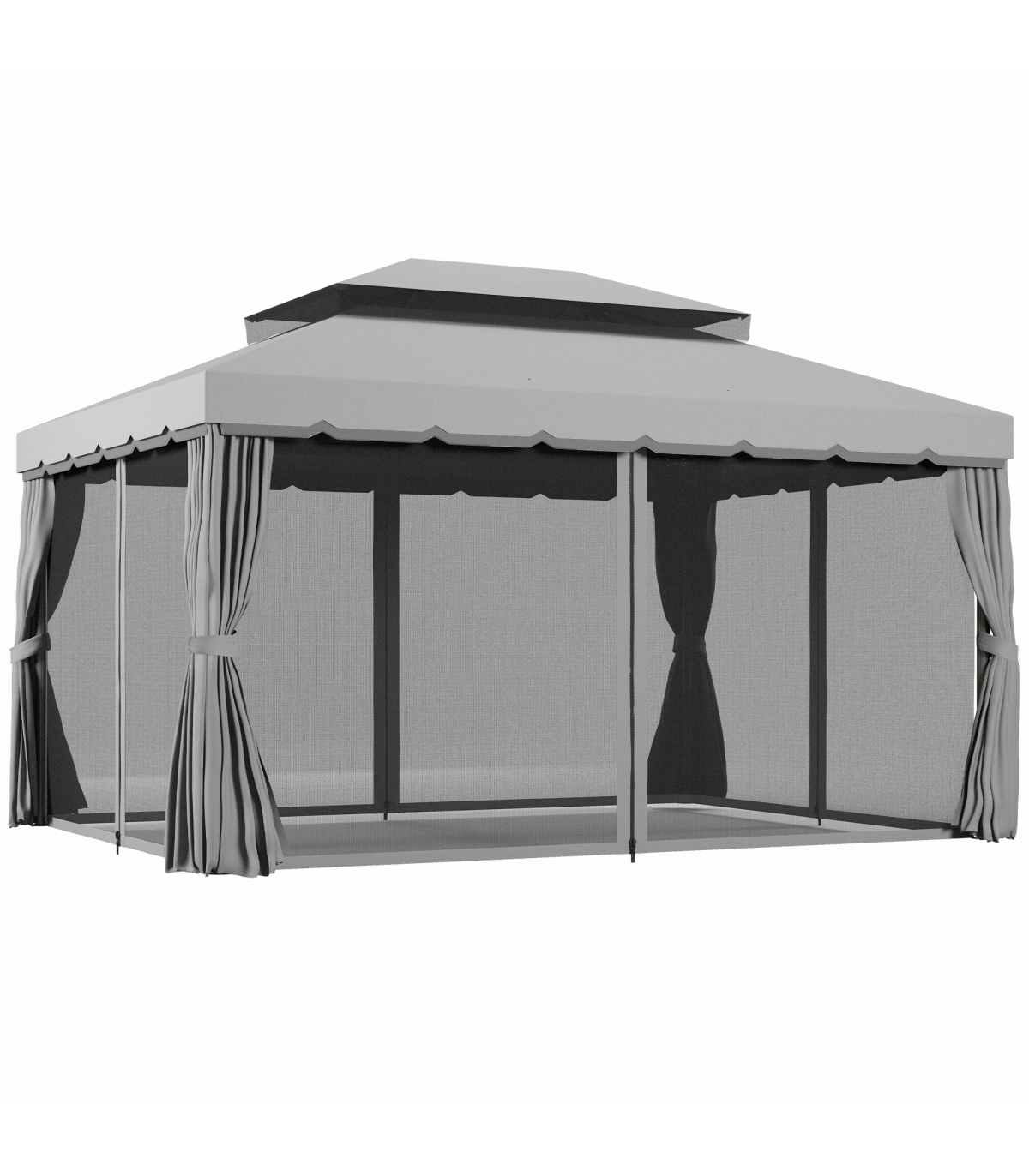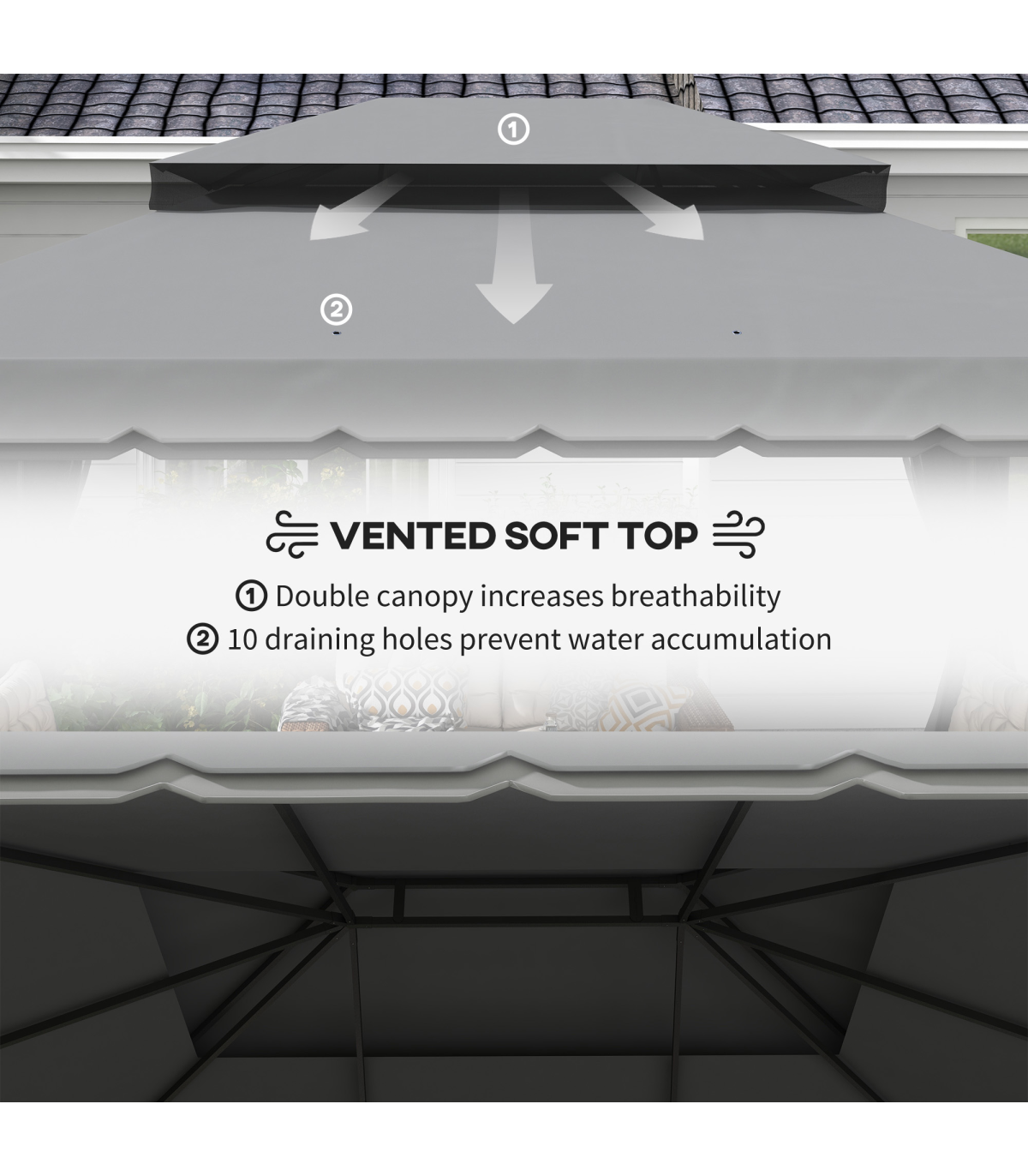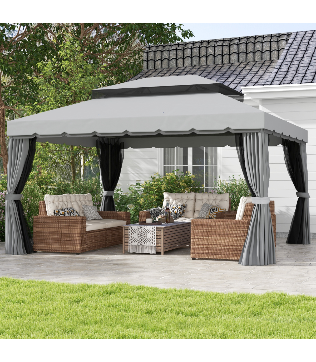 Outsunny 3x4m 2-Tier Gazebo Aluminium Garden Marquee Party Tent Light Grey