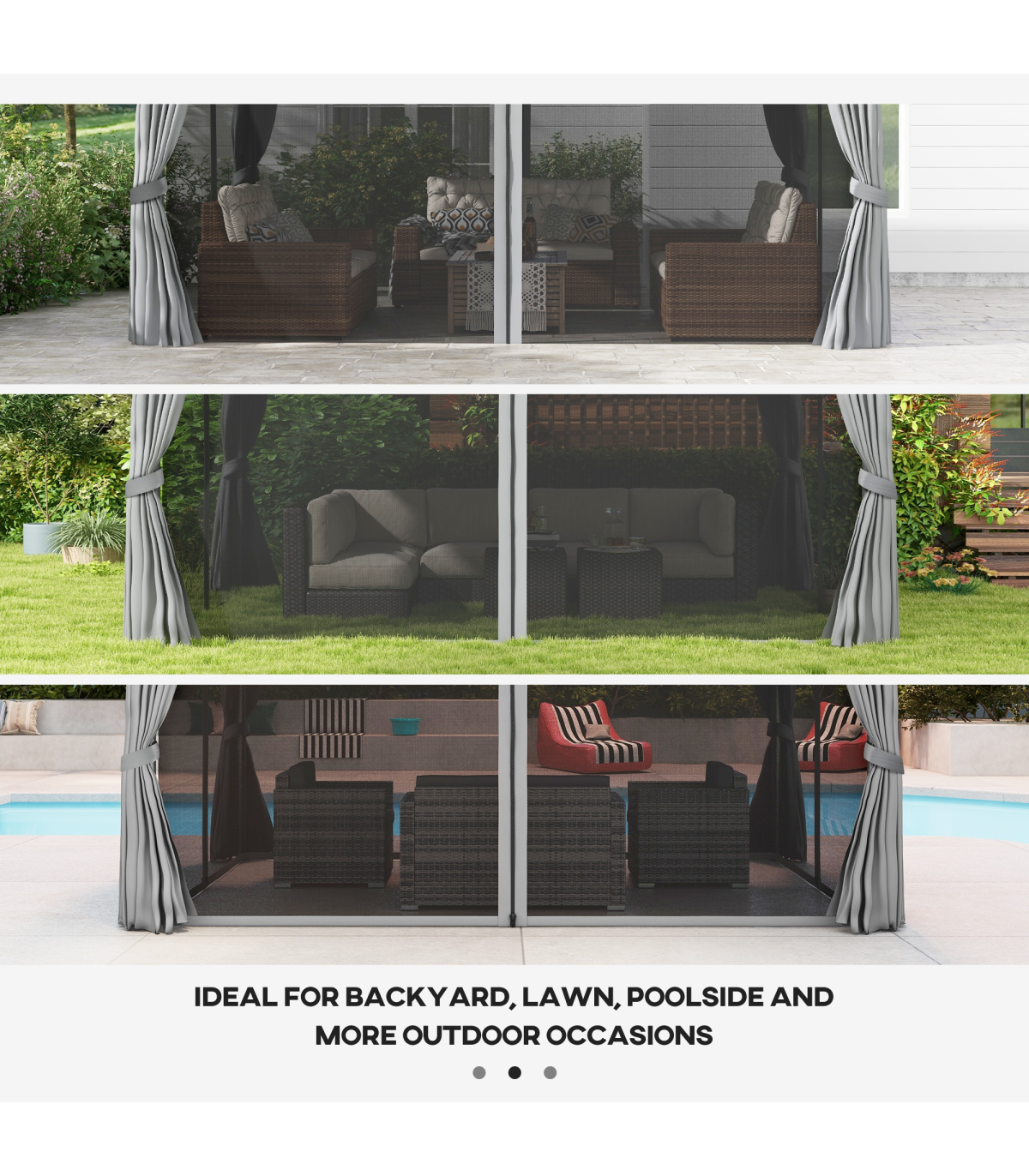 Outdoor gatherings made to be memorable - with full help from this 4m x 3(m) Outsunny gazebo with sides. It's spacious enough for plenty of people inside, with the curtains creating an open or private space whenever. The curtains also come with mesh to help protect you from annoying insects. Comes with eight ground stakes for extra stability. Come do your summer parties the right way this season with our garden pavilion.