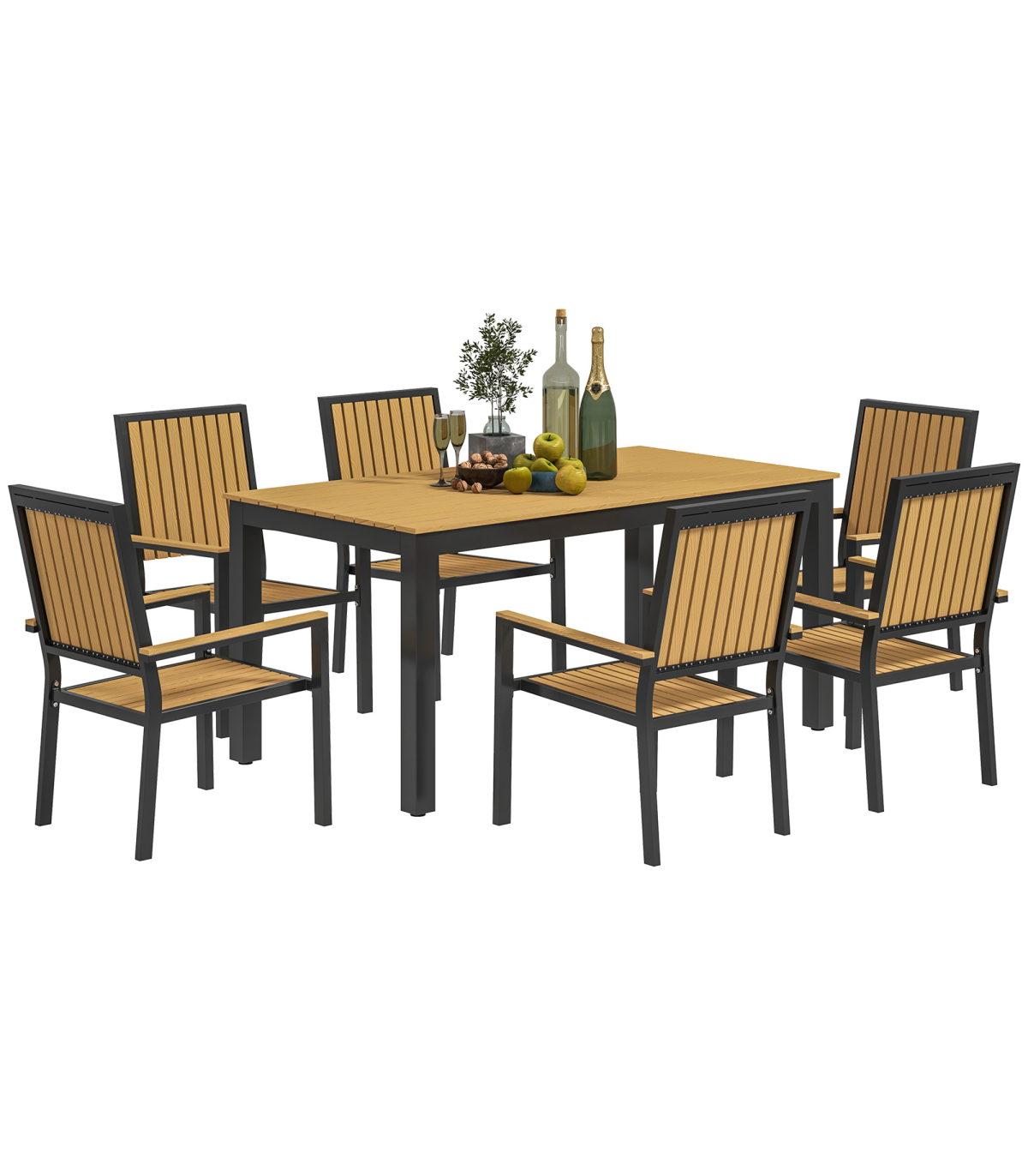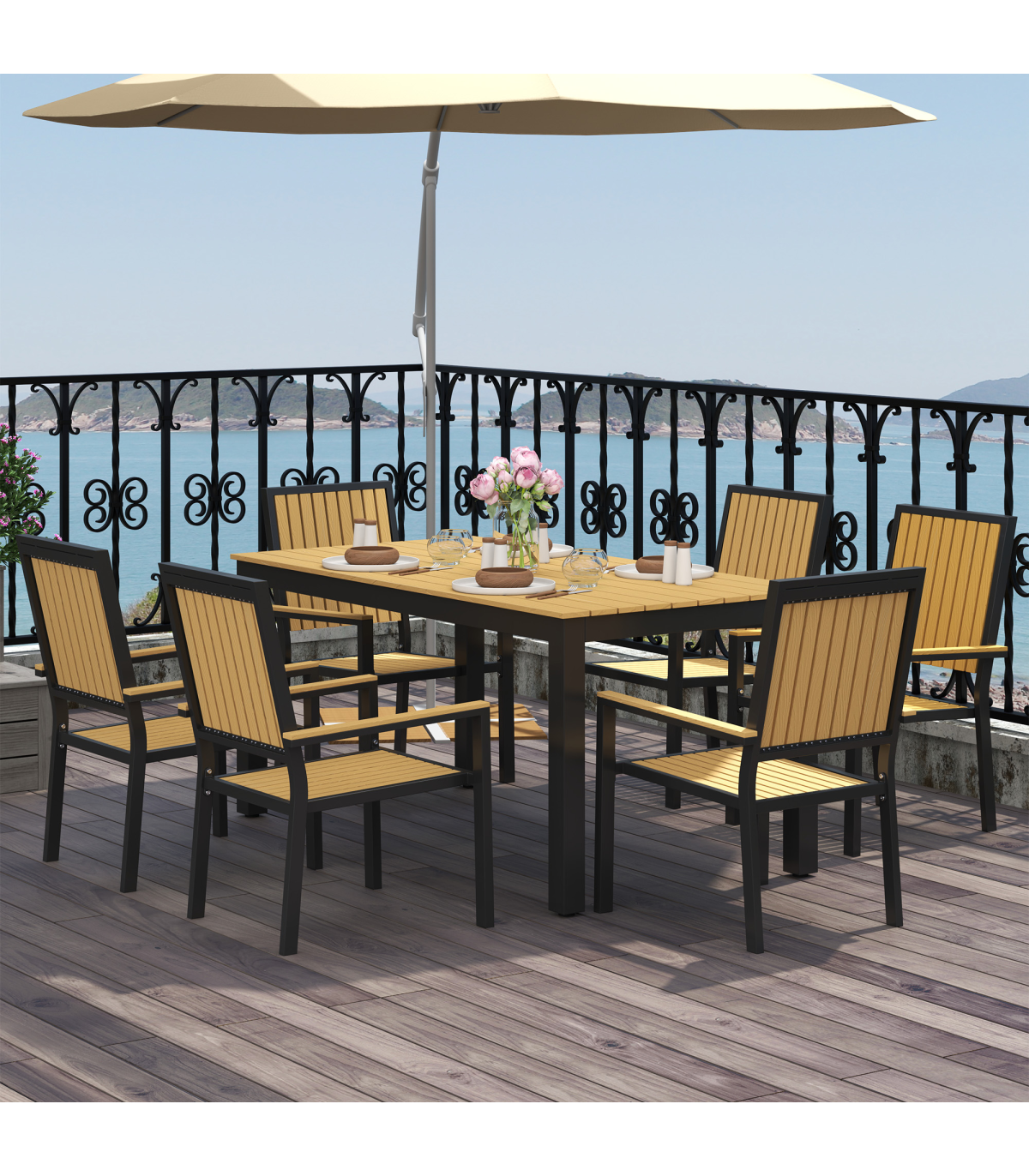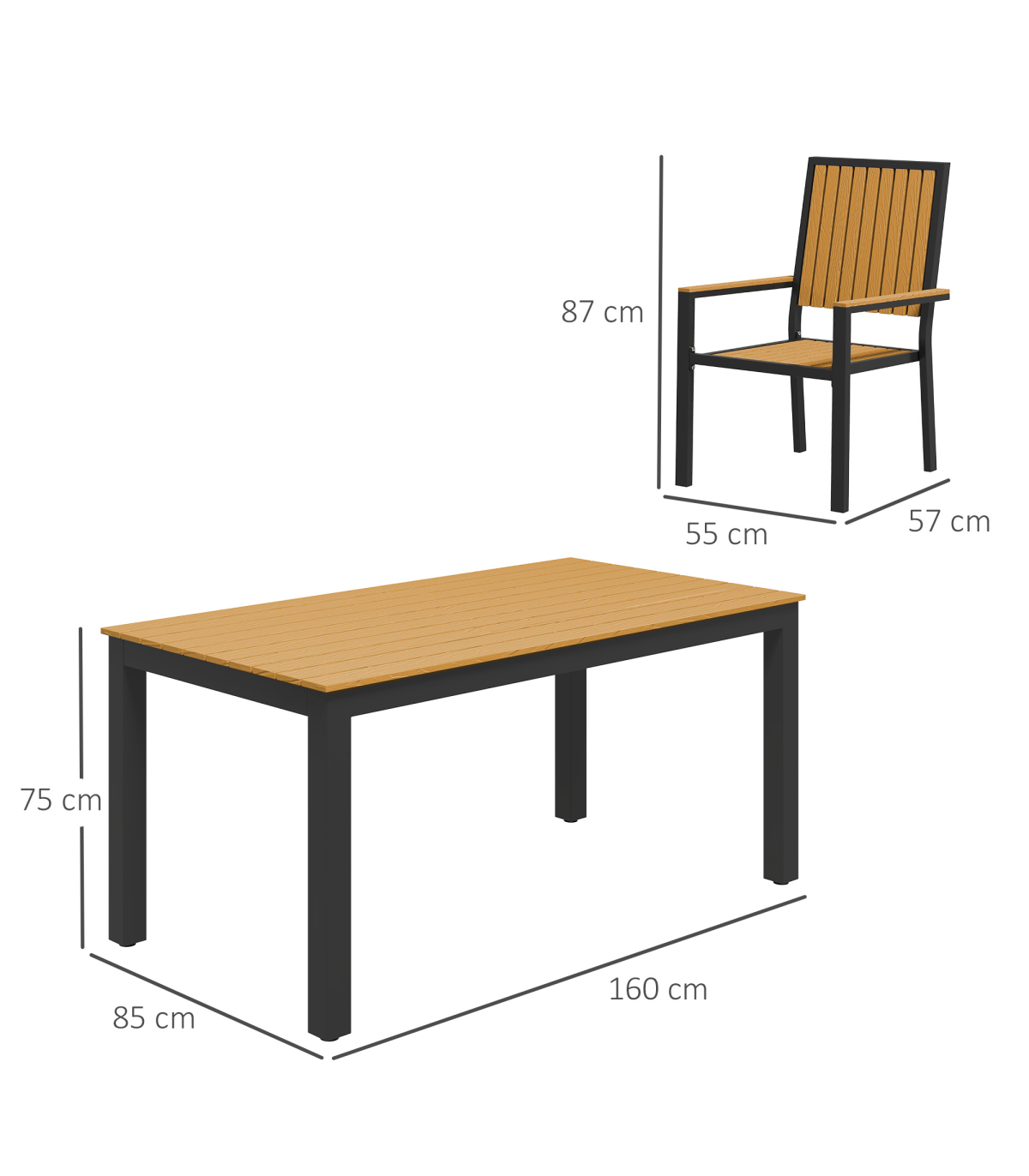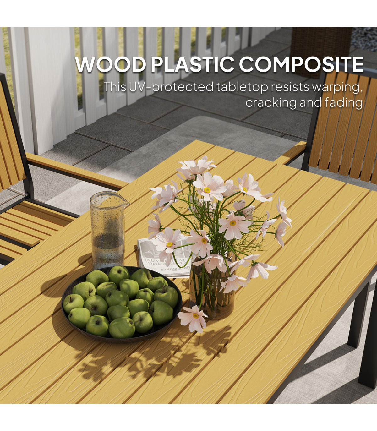 ● This weatherproof tabletop is low-maintenance and easy to clean, with a stylish wood grain