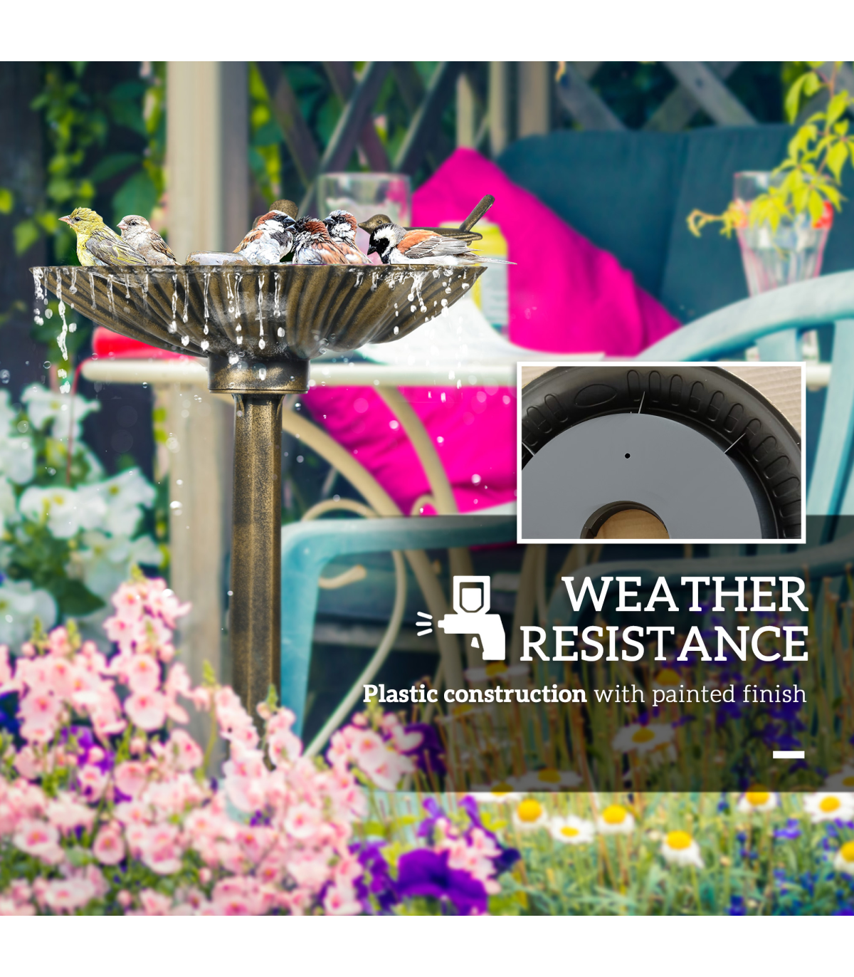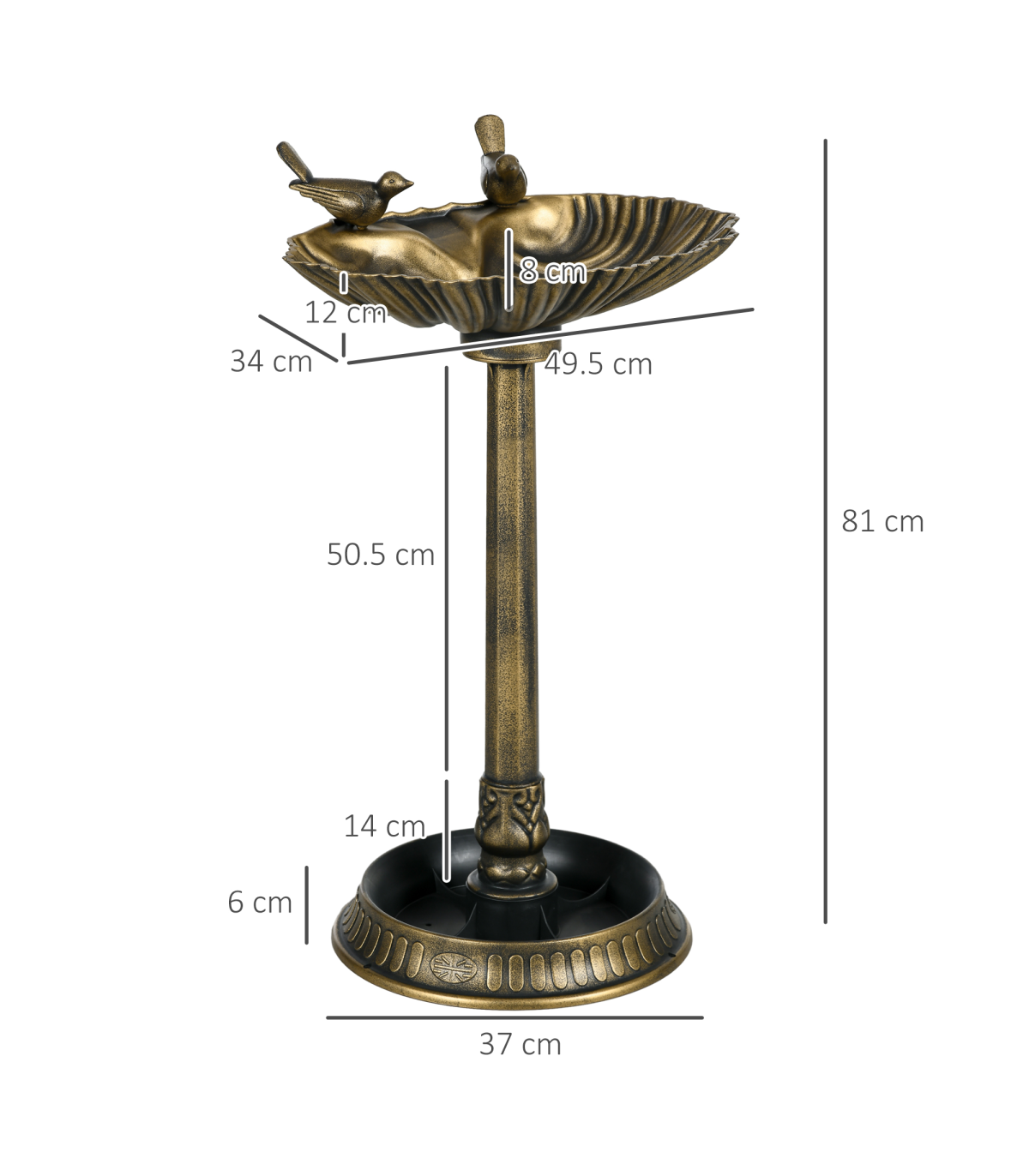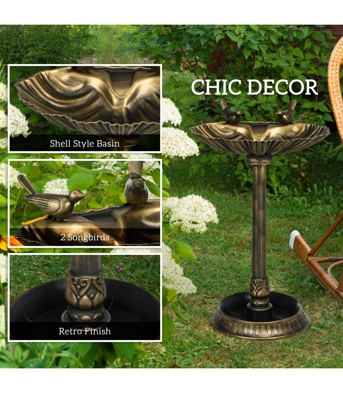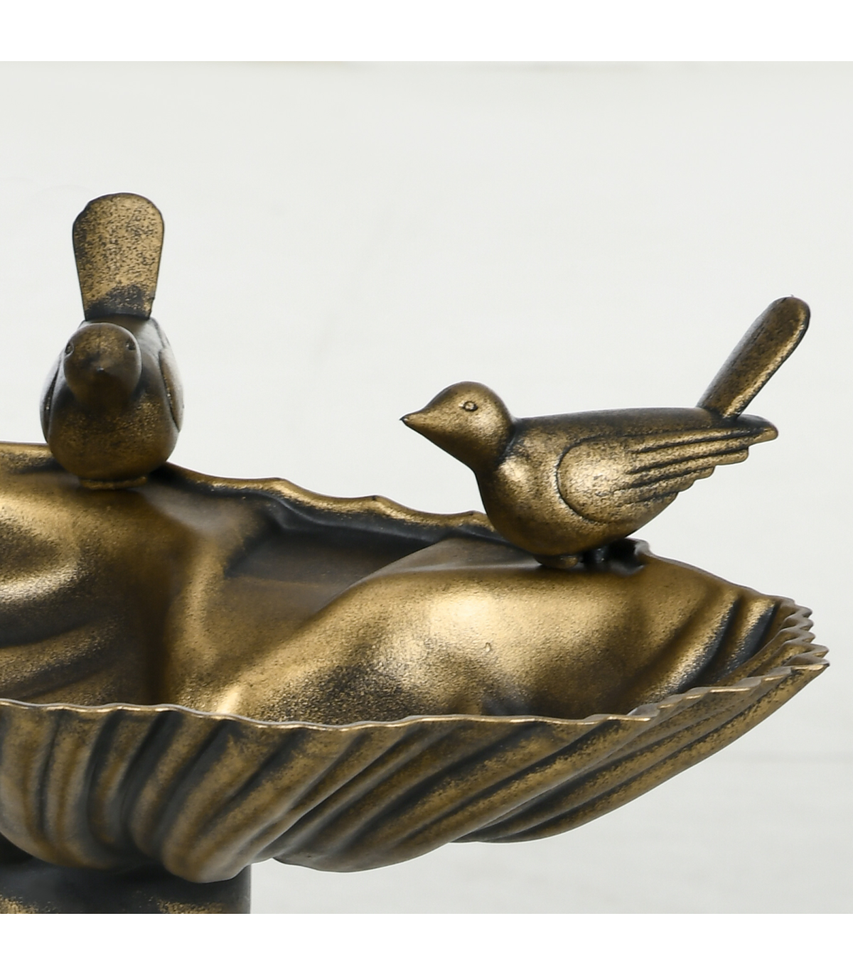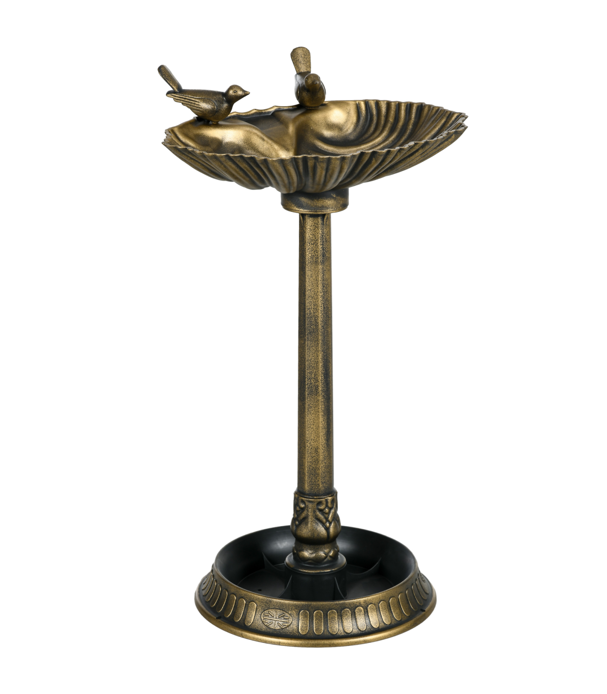 Invite the neighbourhood bird to your home. Offering a classic look with an easy-to-carry build, our plastic bird bath makes your outdoor space a bird watcher's favourite place. Two basins offer birds a place for food and water. Featuring a shell-shaped basin and two bird statues adorning the top, our hummingbird bird bath easily brings a touch of elegance to your garden with an outdoor-ready build that withstands water, weather and frost for year-round enjoyment with a metal-like antique look.