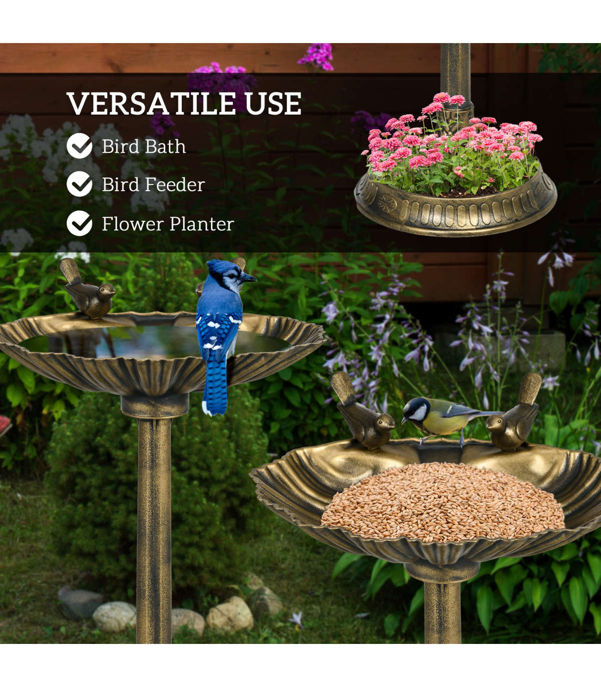 Elegant Two-Basin Bird Bath & Feeder with Antique Finish