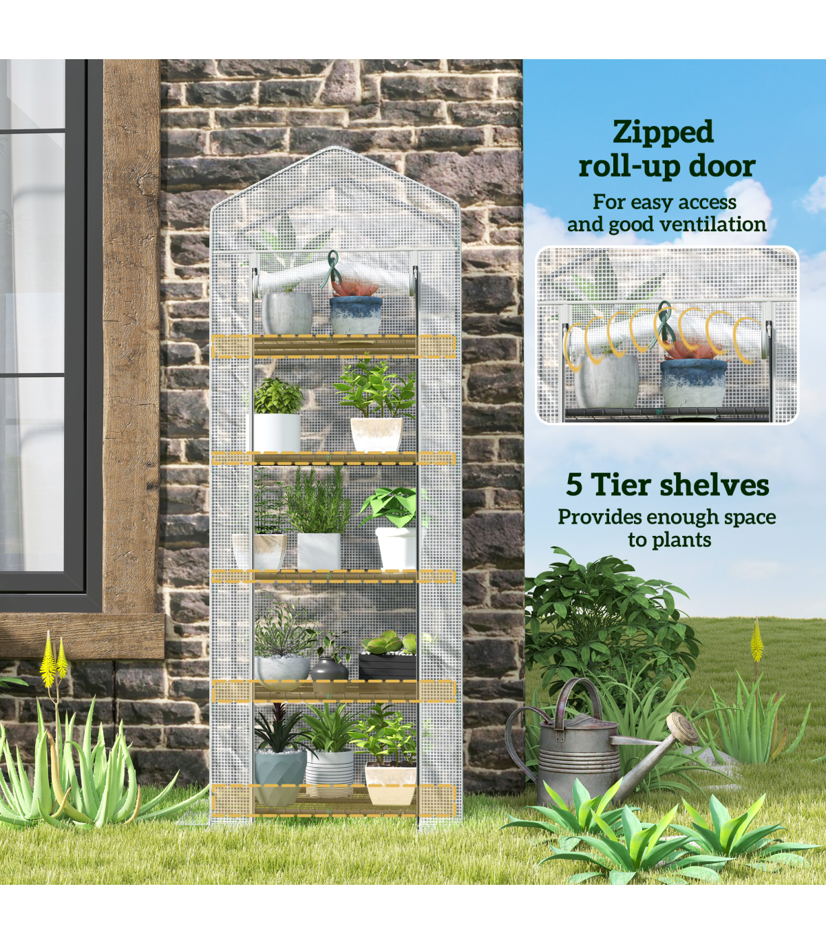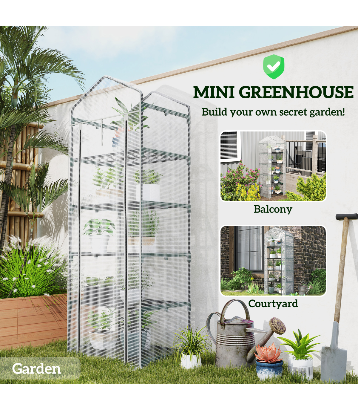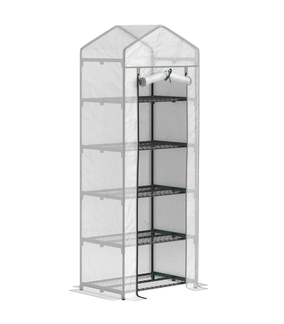 Outsunny 5 Tier Mini Greenhouse Grow House w/ Roll Up Door, White/Grey