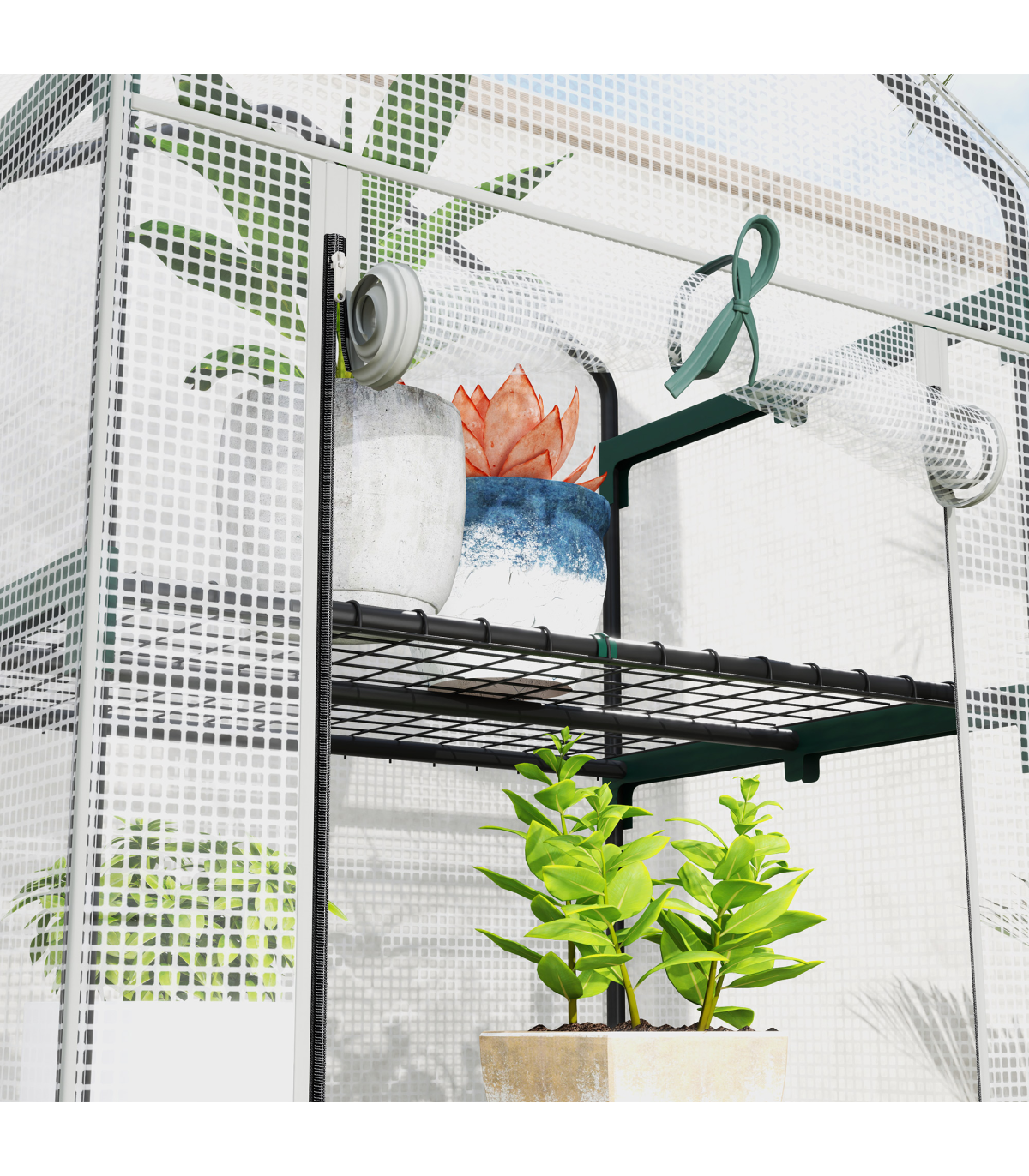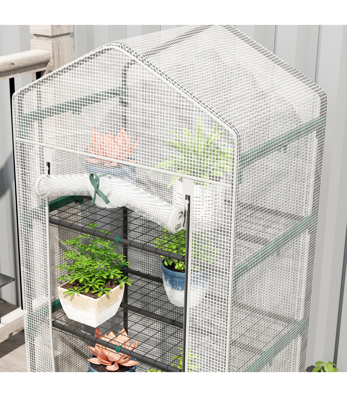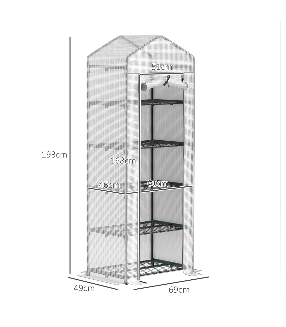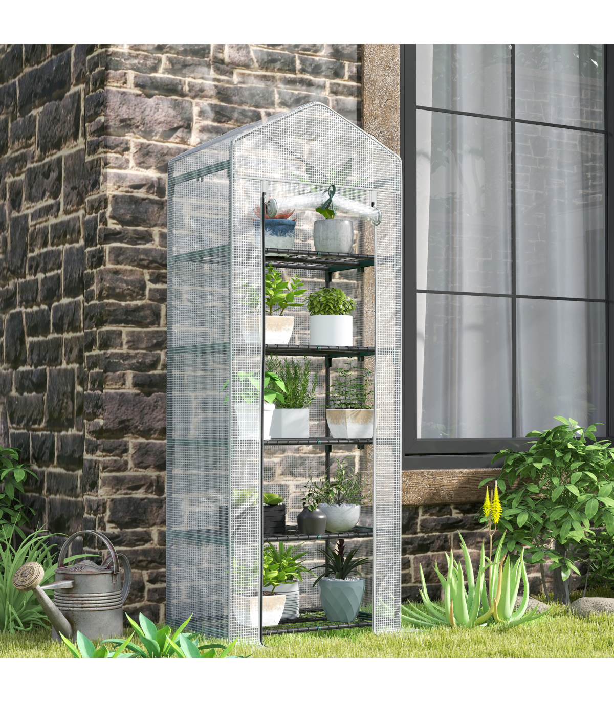 Outsunny 5 Tier Mini Greenhouse Grow House w/ Roll Up Door, White/Grey