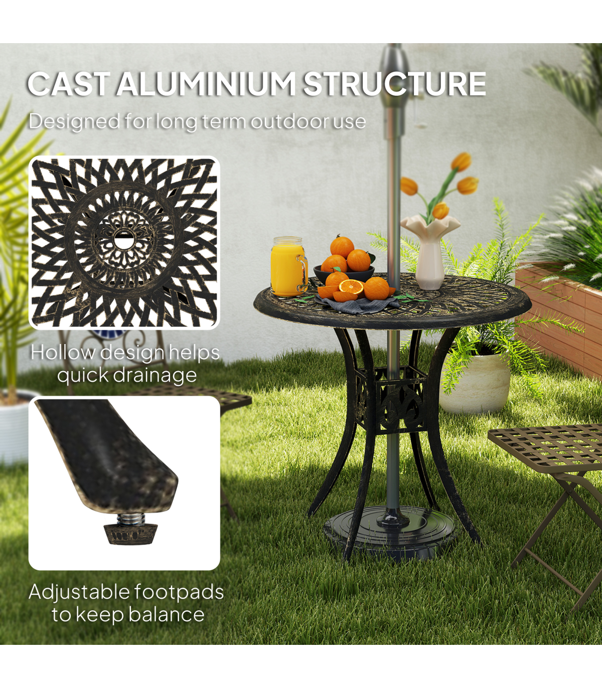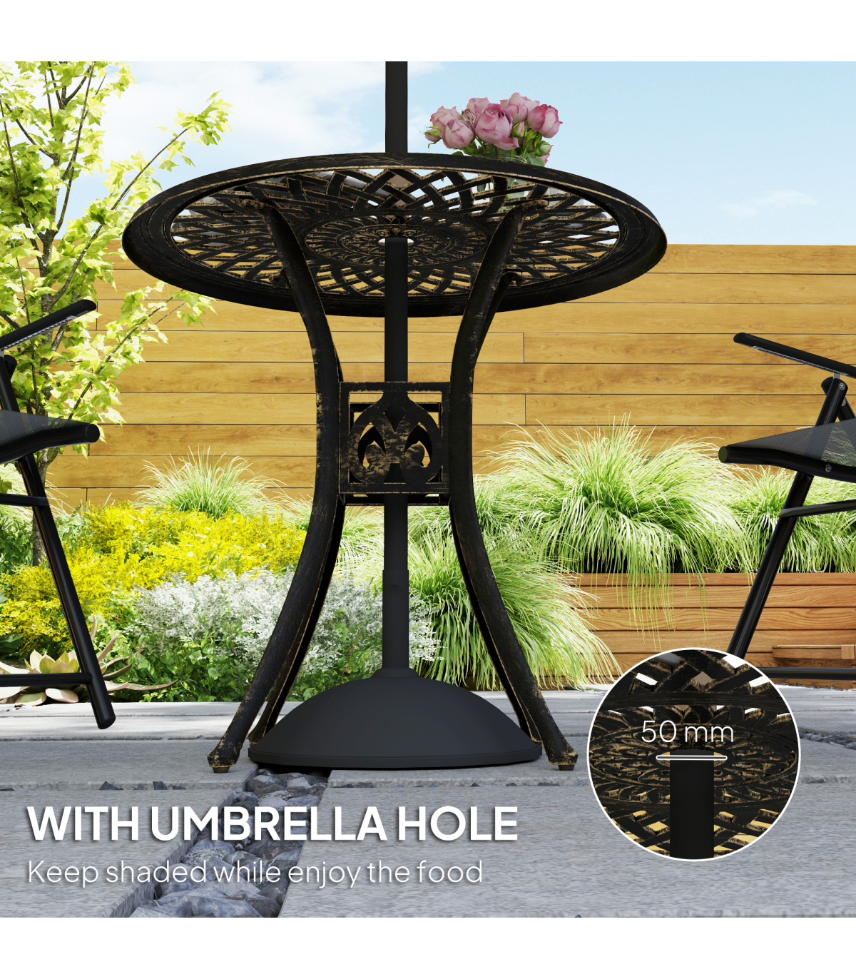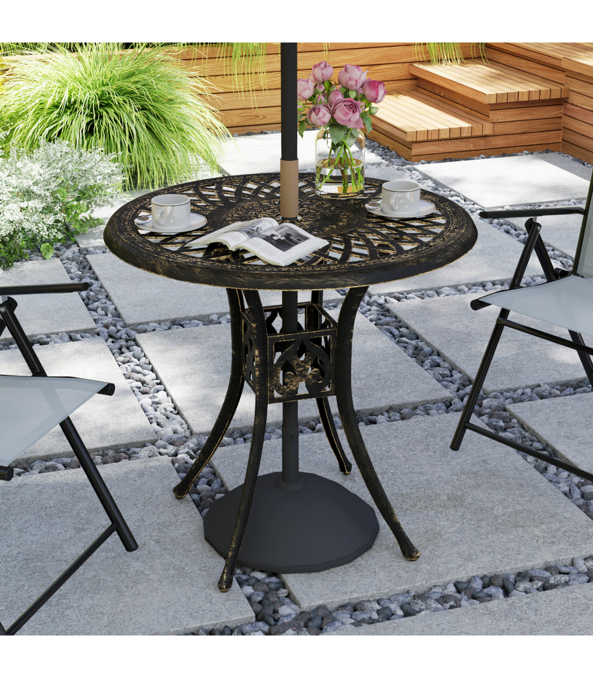 A handy holding spot, which also brings style into your garden and outdoor areas: this round bistro table from Outsunny. Cast aluminium is tough, with a powder coating for extra strength and protection. It's crafted into cut-out design for something a little bit different-great for those who like to make an impression. A middle hold is for holding a parasol umbrella to keep you shaded. To complete, pair with bistro chairs, so everyone can gather round.