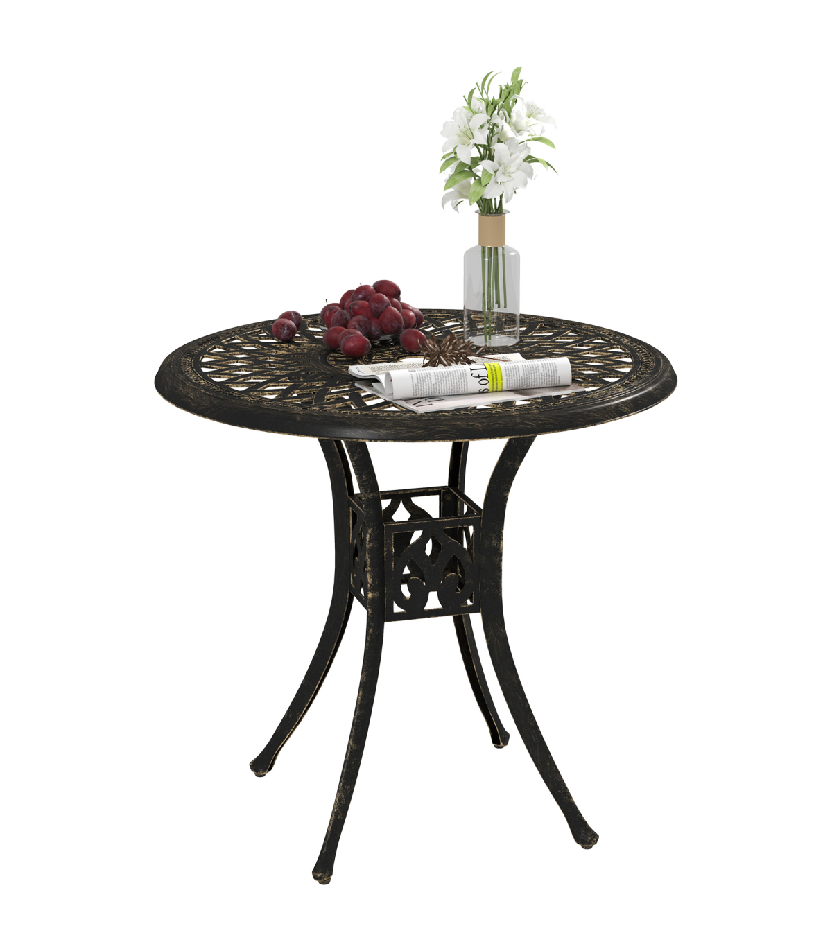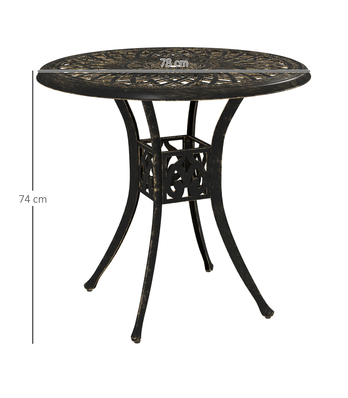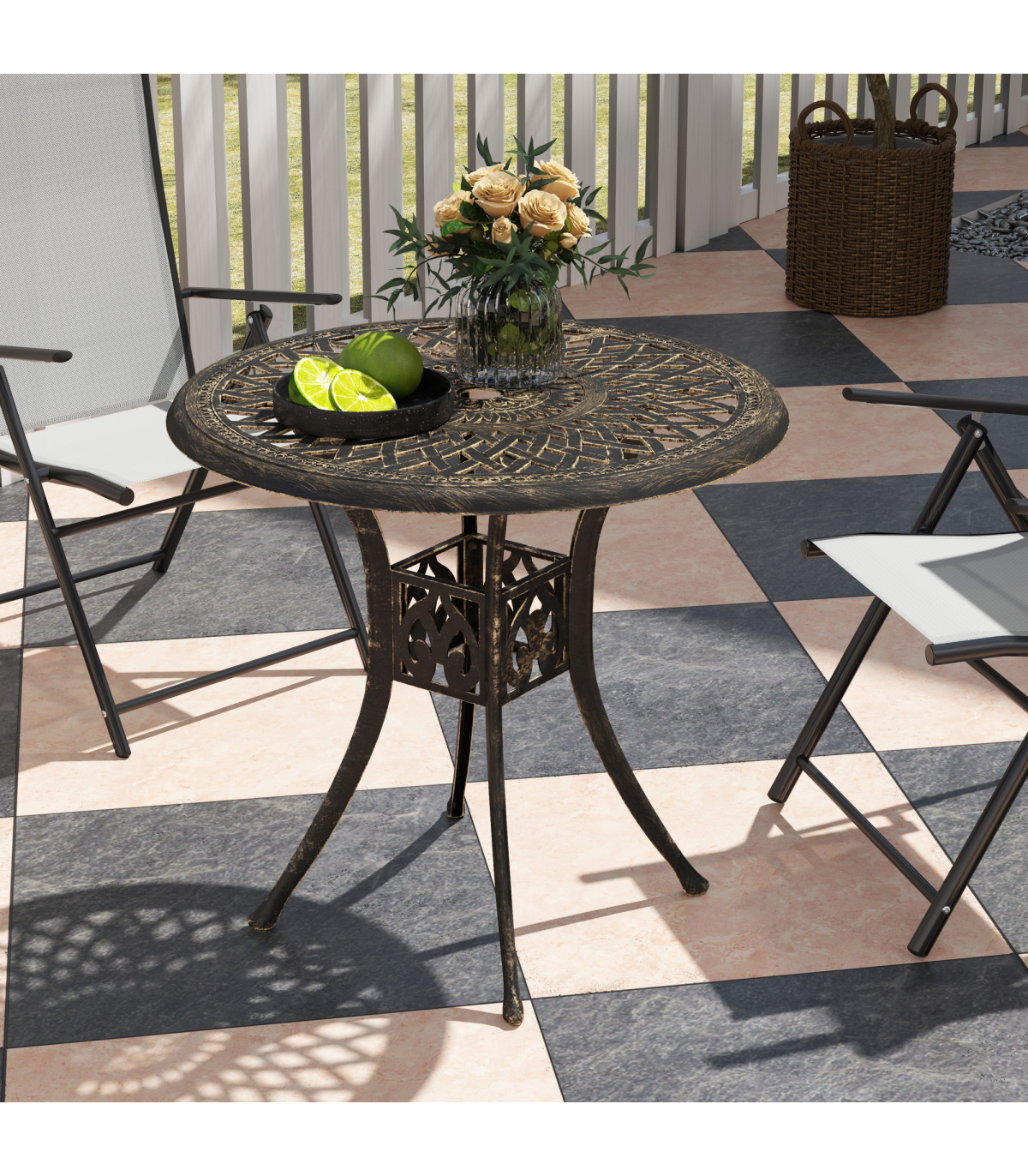 A handy holding spot, which also brings style into your garden and outdoor areas: this round bistro table from Outsunny. Cast aluminium is tough, with a powder coating for extra strength and protection. It's crafted into cut-out design for something a little bit different-great for those who like to make an impression. A middle hold is for holding a parasol umbrella to keep you shaded. To complete, pair with bistro chairs, so everyone can gather round.
