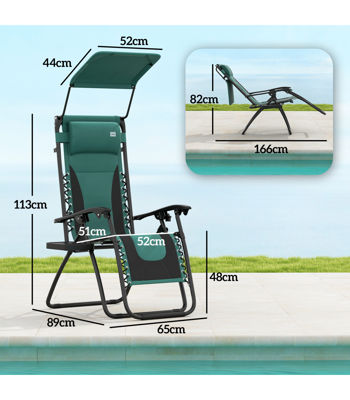 Outsunny Zero Gravity Lounger Chair, Folding Reclining Chair, Green