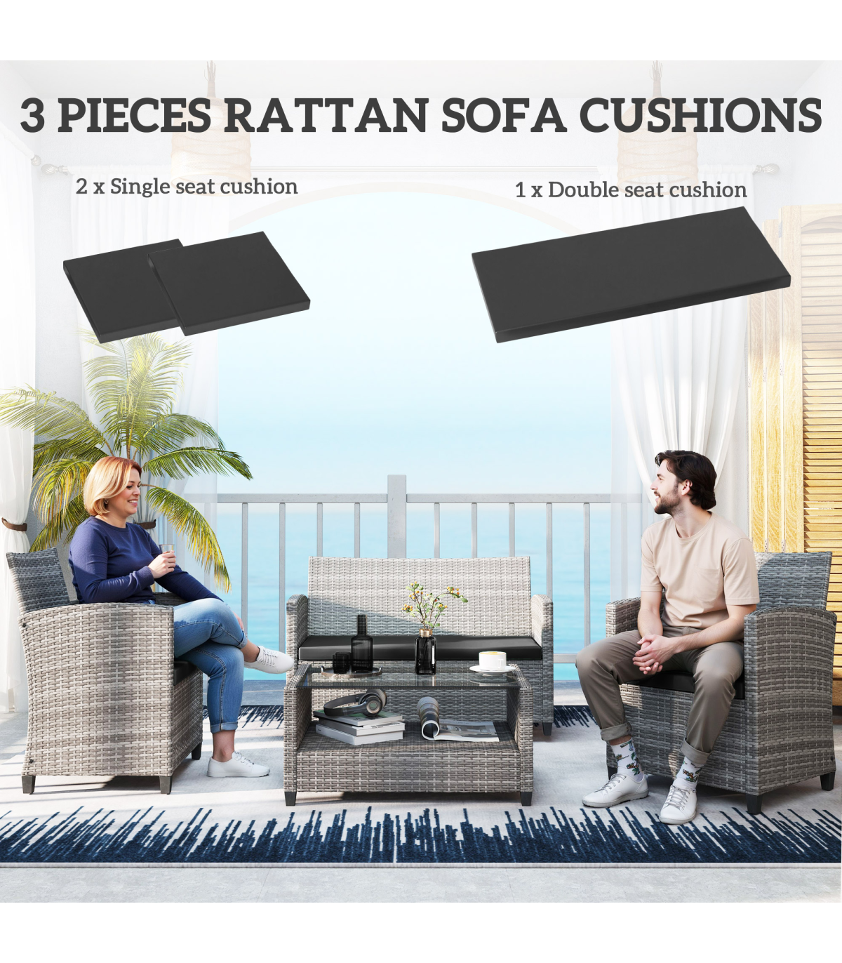 ● Three cushions per set: two single and a double