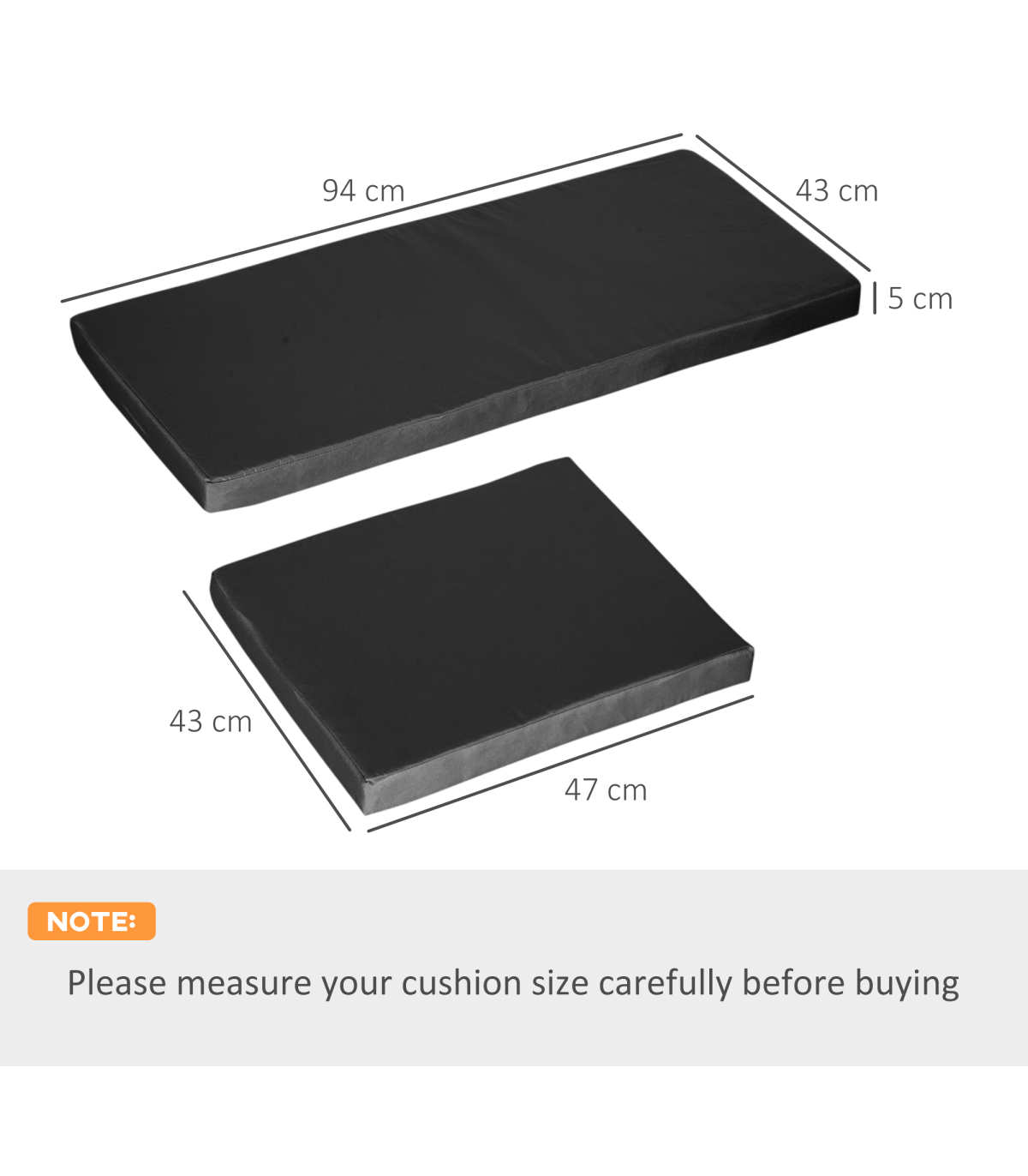 ● Double Seat Cushion: 94L x 43W x 5H cm