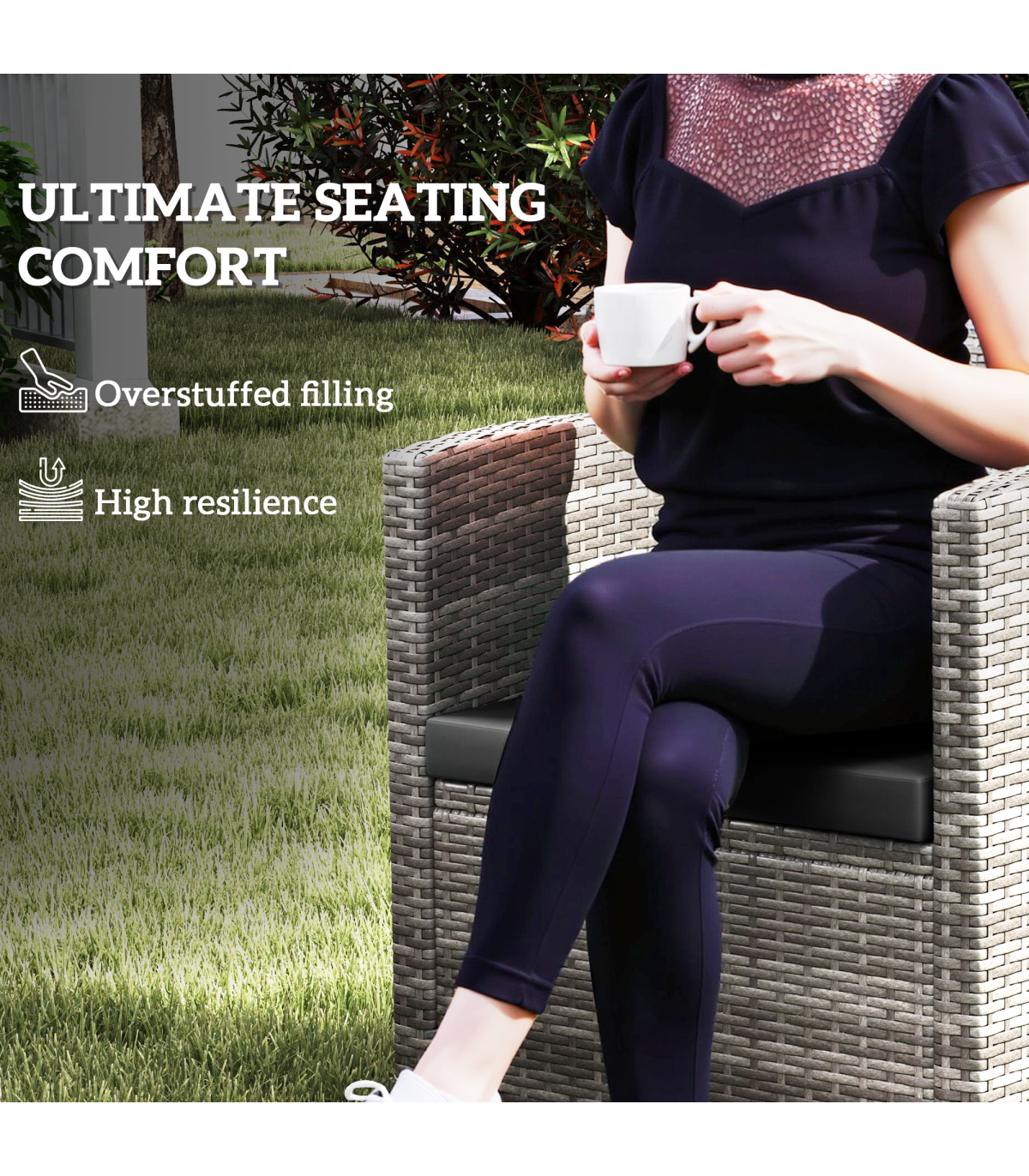 New comfort for your outdoor set: go for these three Outsunny replacement cushions for rattan furniture. Comes with three pieces: two single seat cushions and one double seat cushion. Each cushion is filled with thick cotton for comfort. The polyester covers of outdoor cushions for chairs are breathable and fade-resistant, with a zip fastening to remove and clean easily. Comfort and style in your garden done the new way.