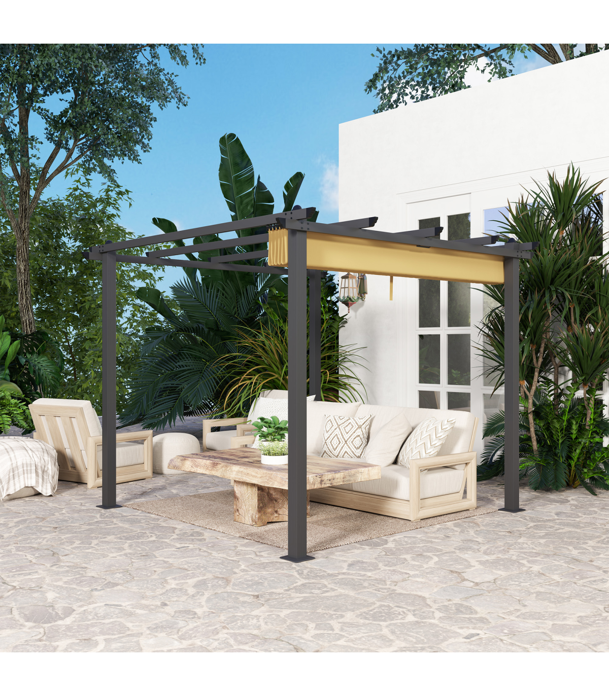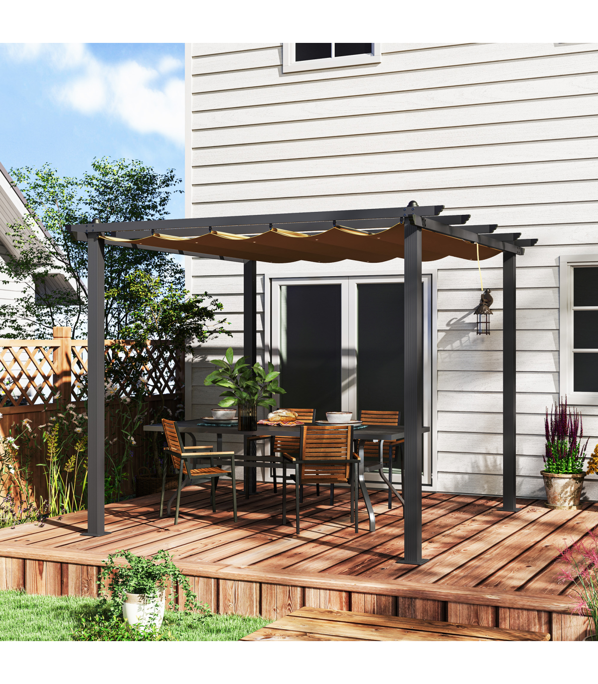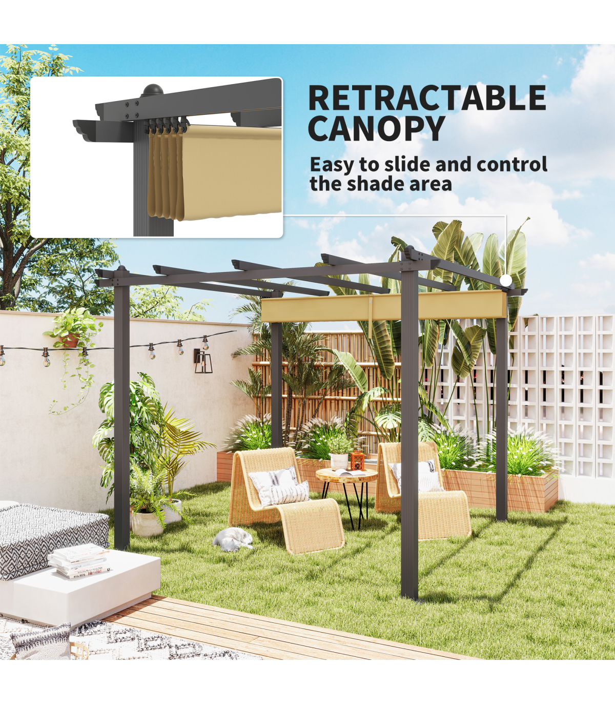 Stylish Aluminium Pergola with Retractable Canopy for Outdoor Spaces
