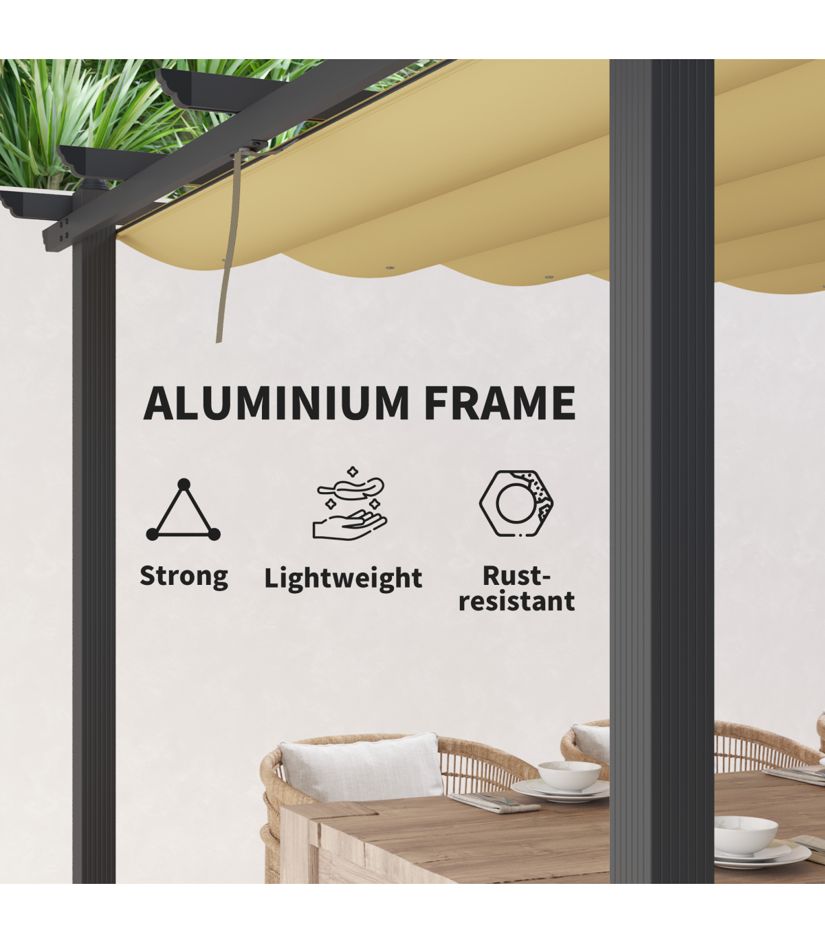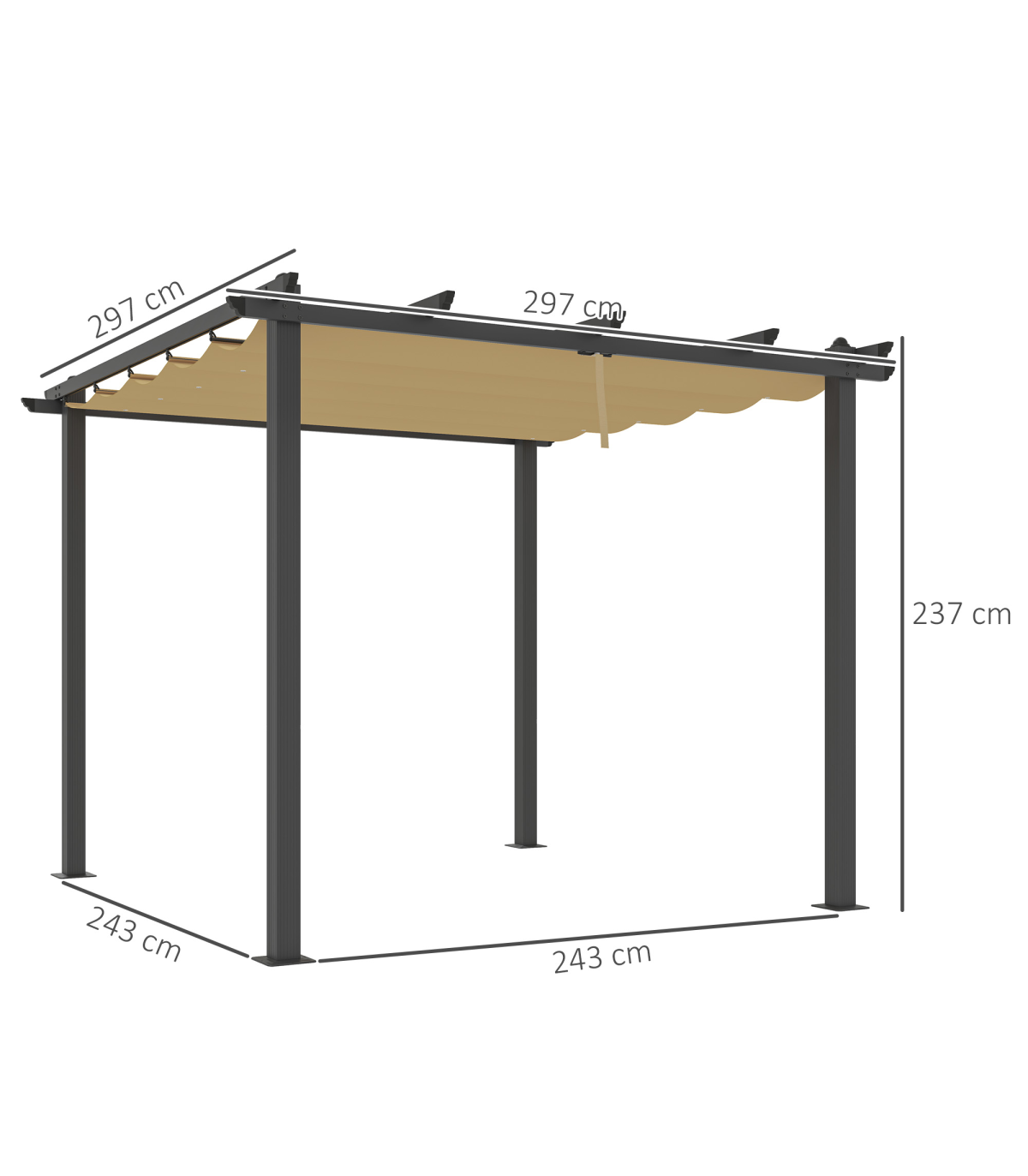 This Outsunny retractable pergola allows you to be in control - enjoy the sunshine or relax in the shade. Move the fabric roof panel to a position of your choice, letting you be fully in control. The aluminium structure is strong, with ground stakes and expansion screws included to attach to the floor. Grommet holes on the fabric for easy water drainage. Enjoy your outdoor space more than ever before.