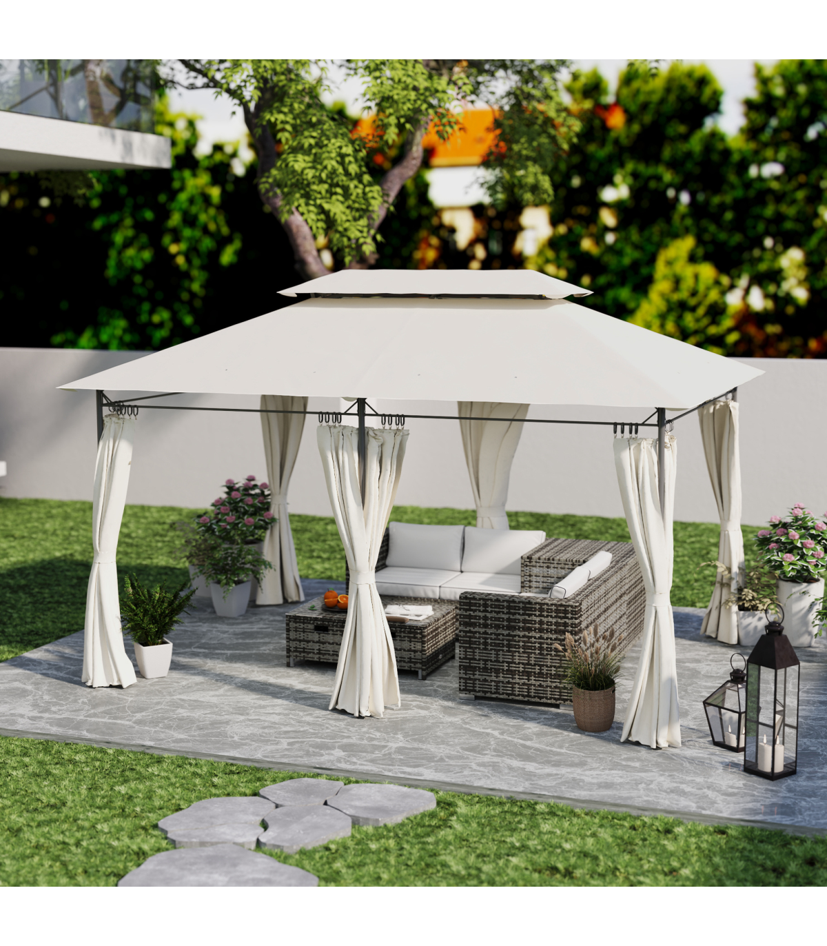 Garden Canopy Gazebo with Two-Tier Roof for Outdoor Relaxation - 3x4m