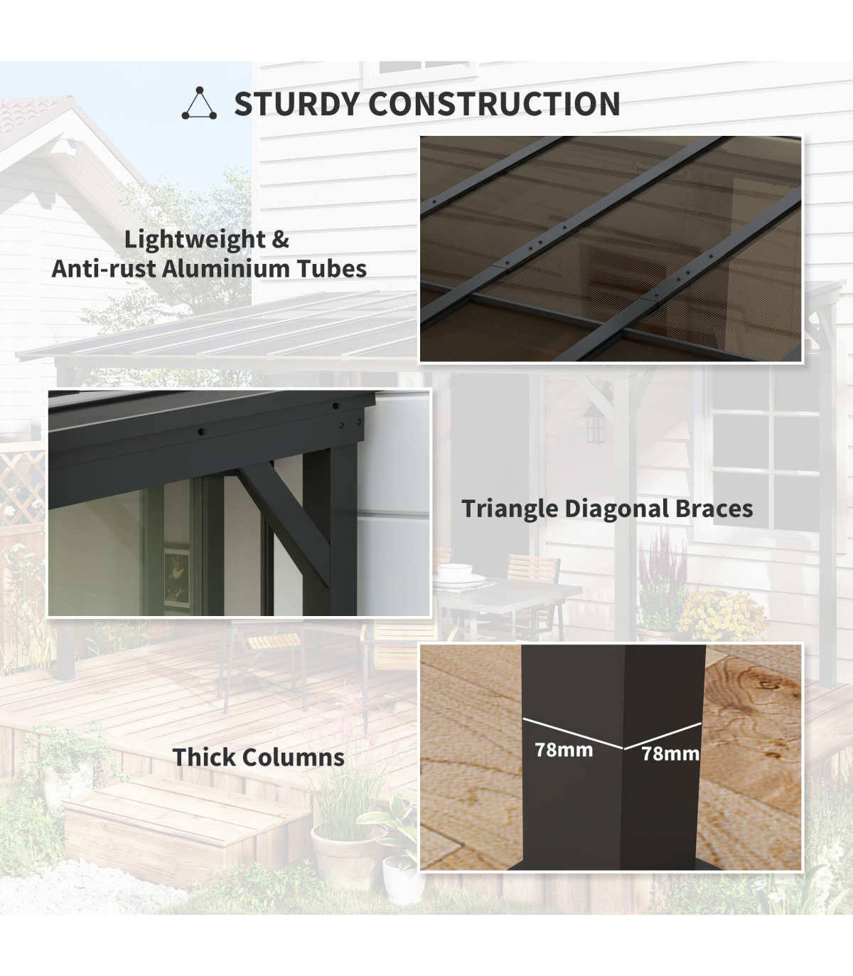 ● Robust 78 x 78 mm metal columns for durability