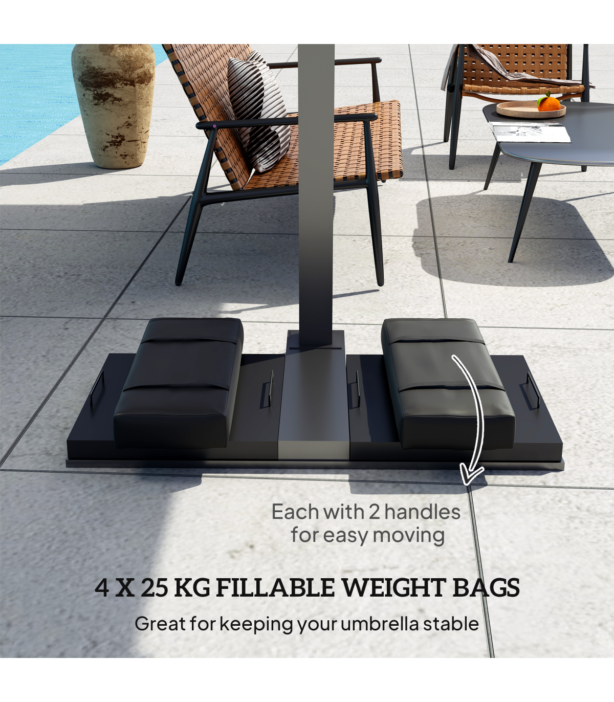 ● Fill with sand easily, featuring two convenient carry handles