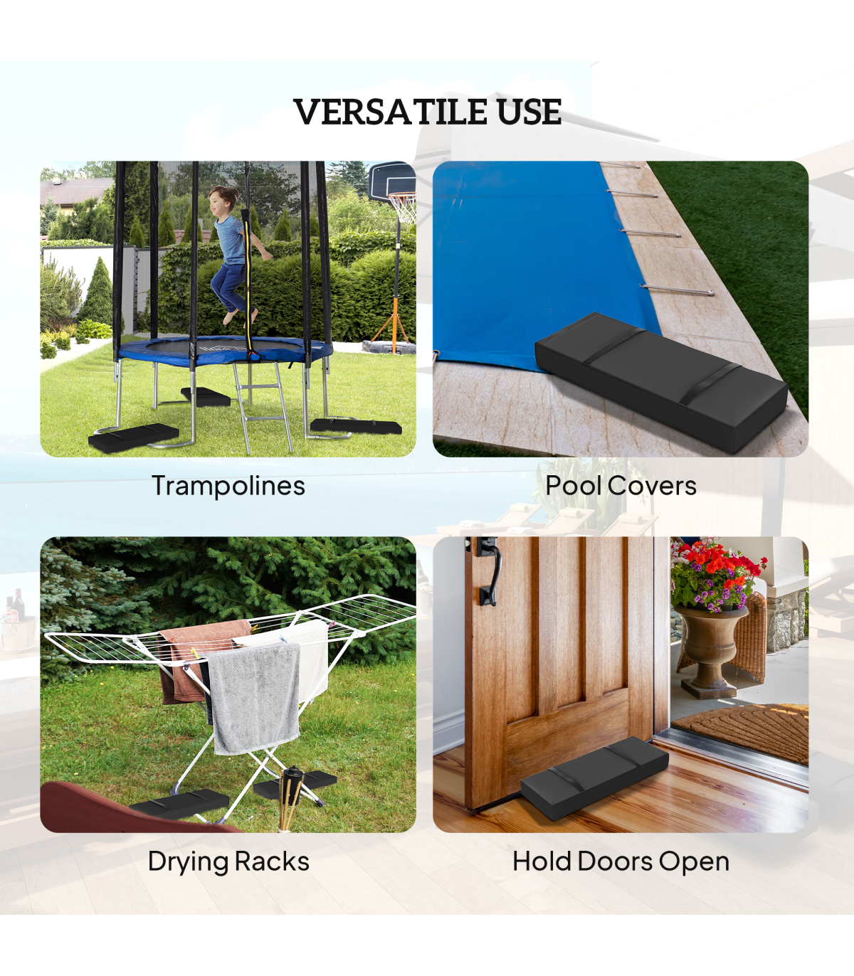 ● Versatile use for securing various outdoor items, like pool covers, trampolines, drying racks