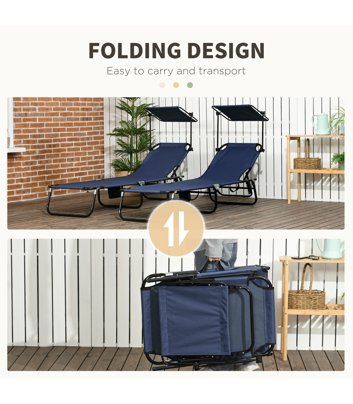 Comfort Lounge Chairs - Adjustable Recline & Sunshade - Set of 2