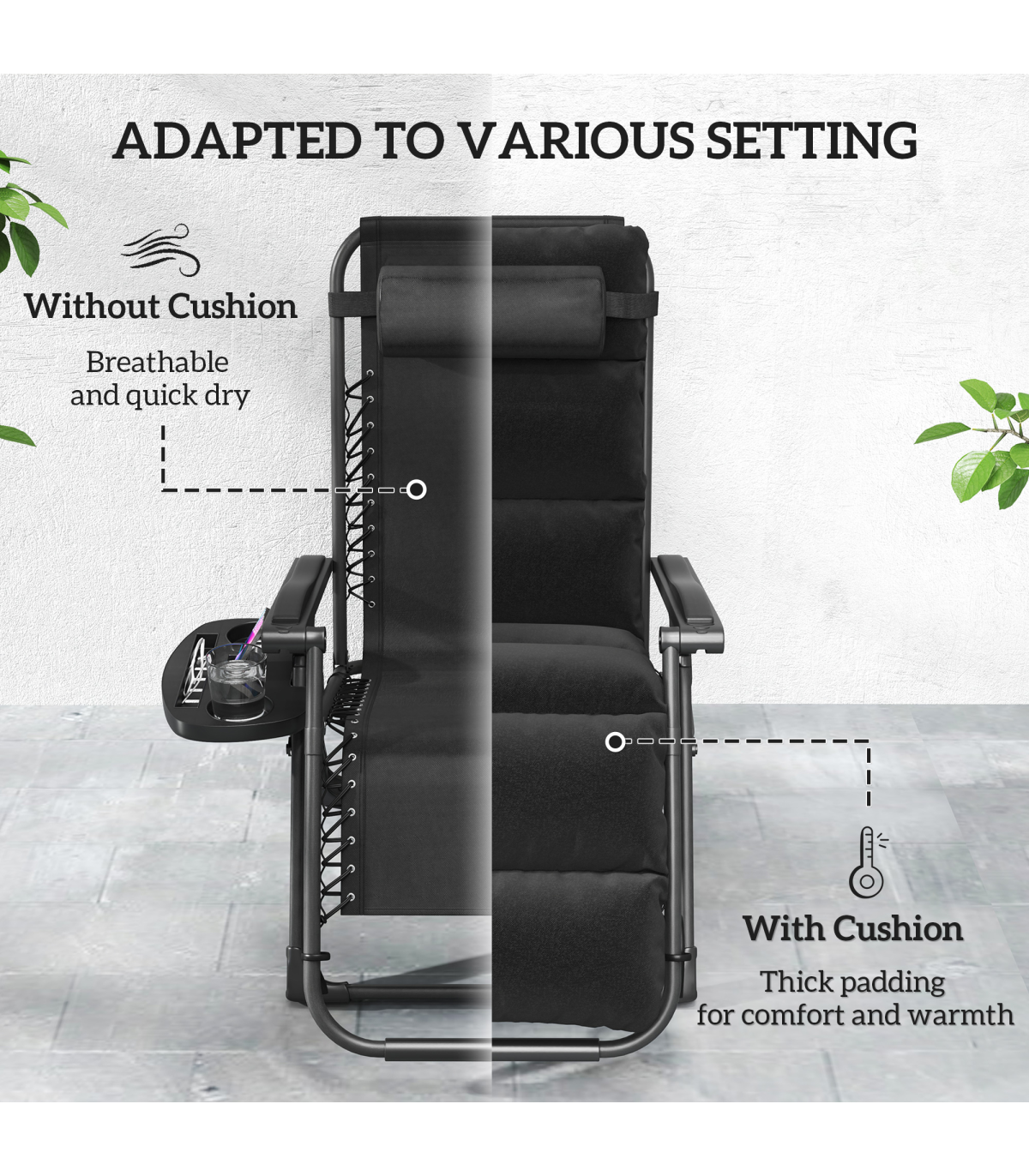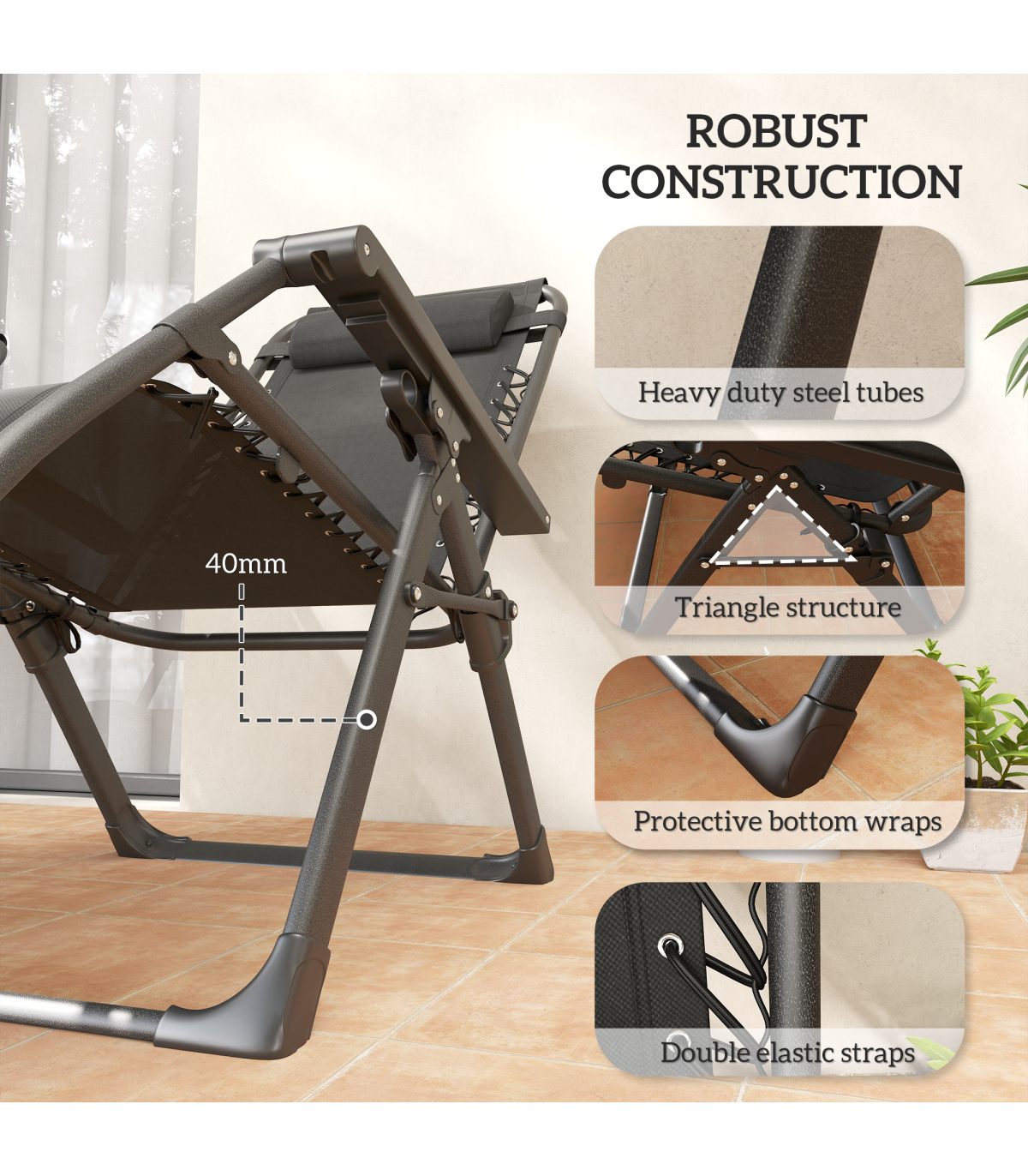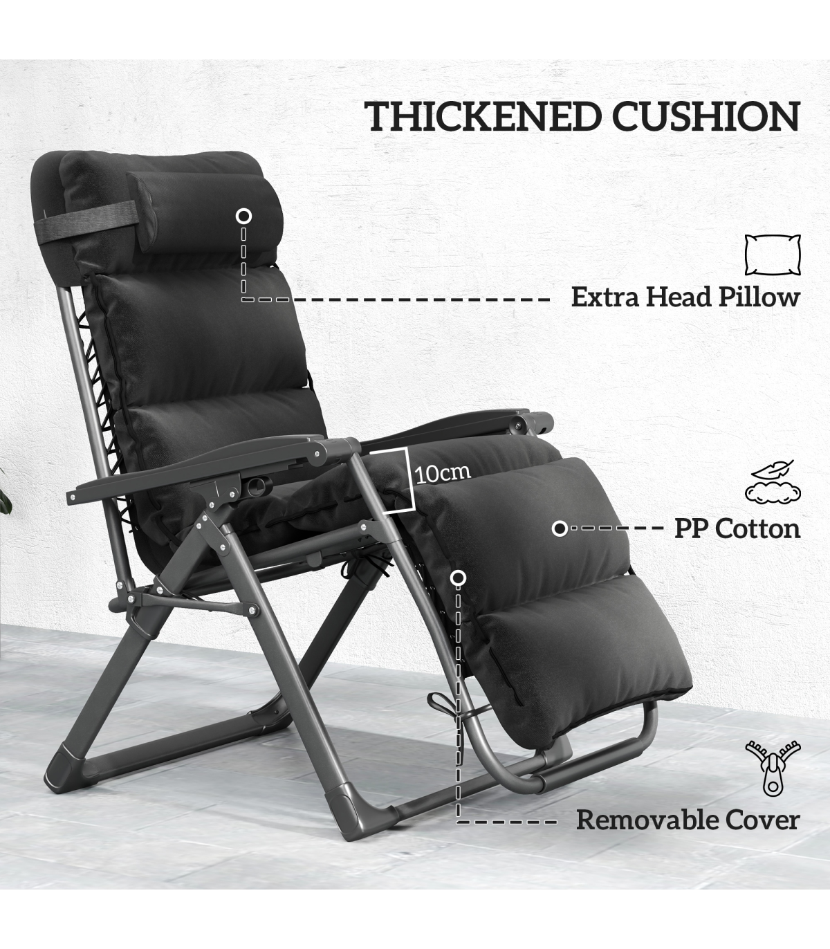 Lounging with a friend has never been so relaxing, thanks to this Outsunny outdoor recliner chair set. The backs recline back to a position you want, to a maximum angle. Each zero gravity chair is fitted with 10 cm seat cushions - sink in comfortably to relax outdoors. The steel frames mean each garden lounger is strong and supportive