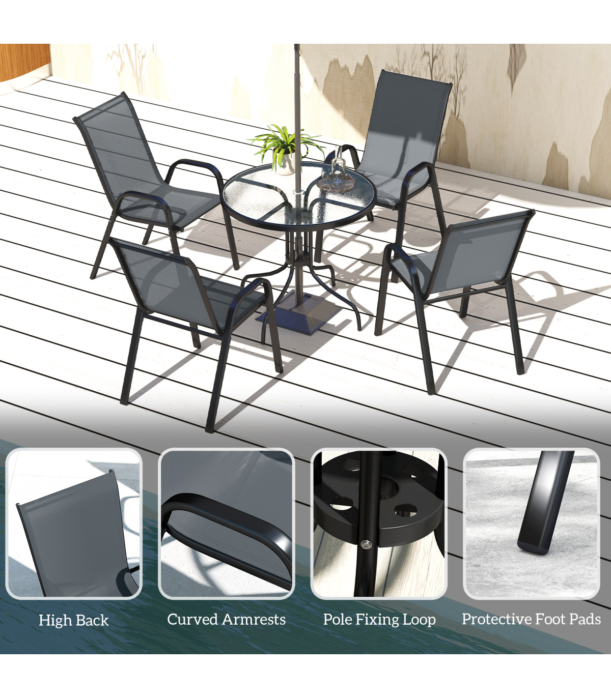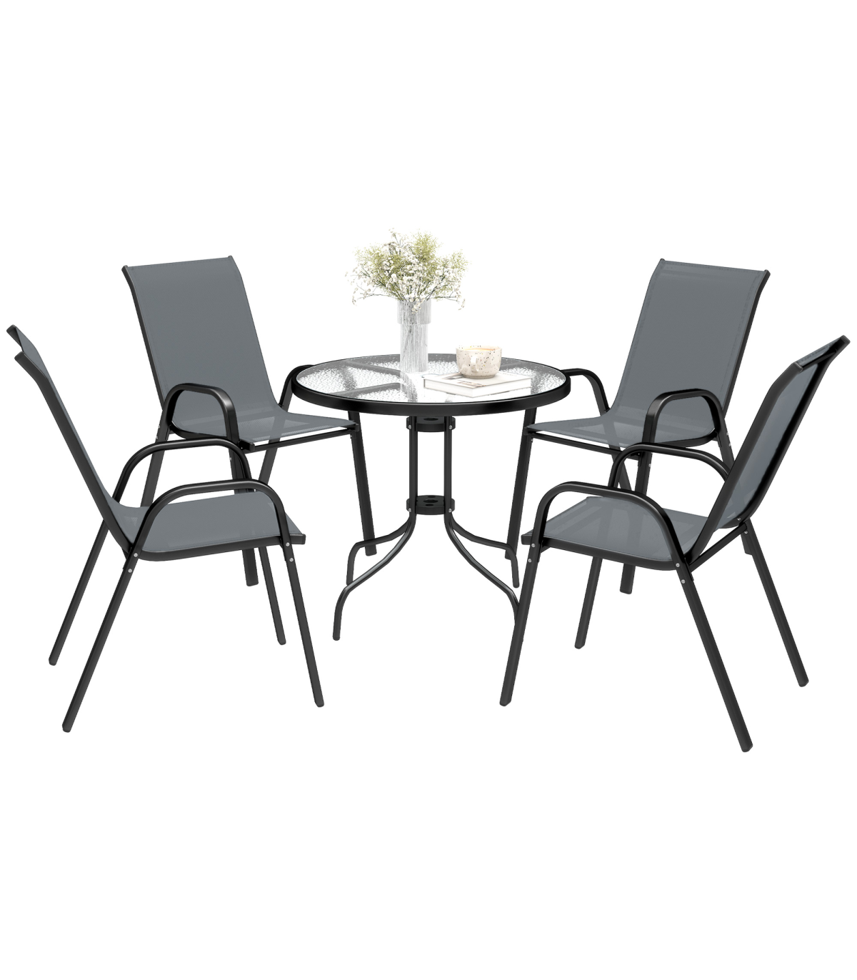 Outsunny 5 PCs Garden Furniture Set, Round Table and Stackable Chairs, Grey