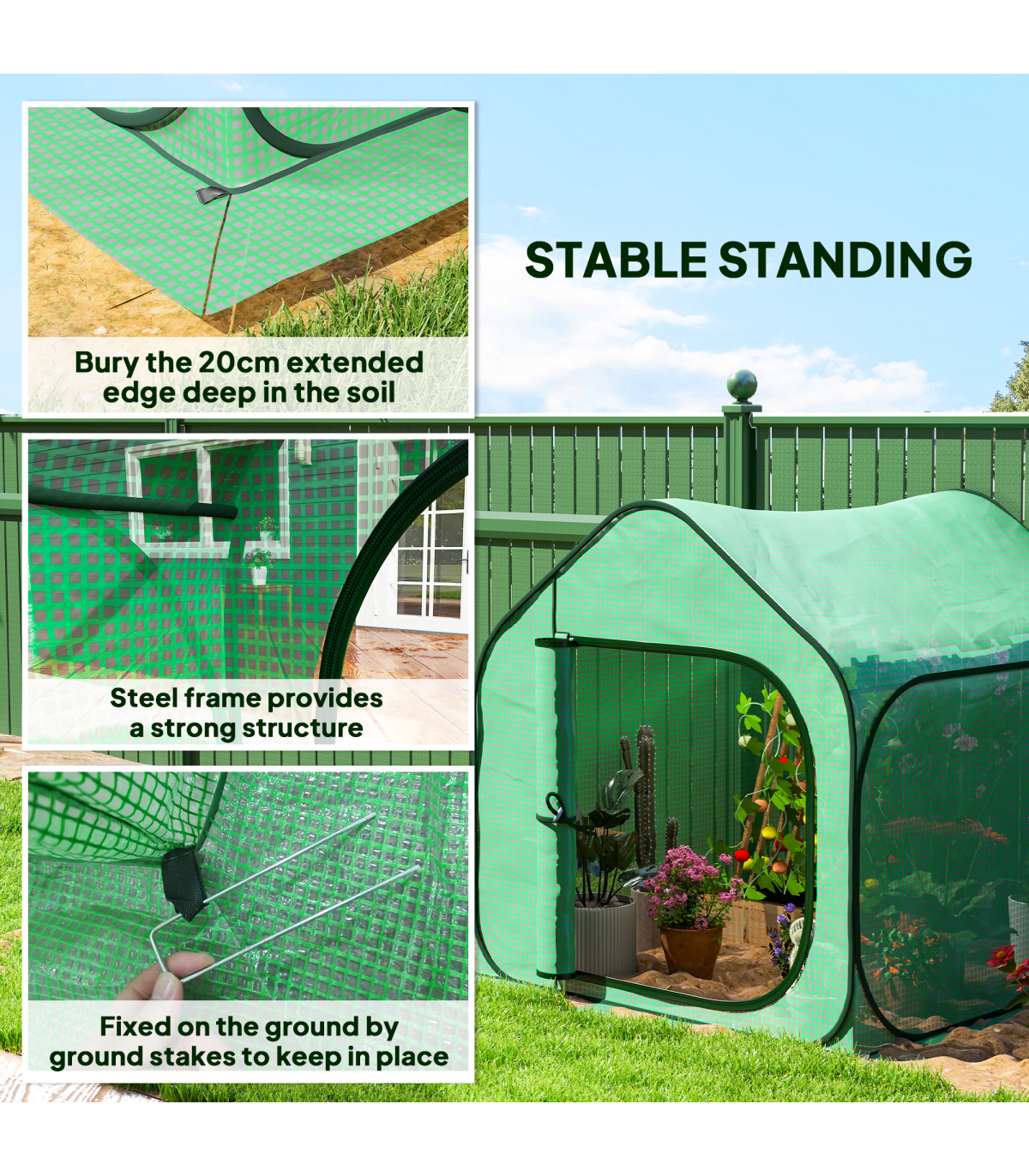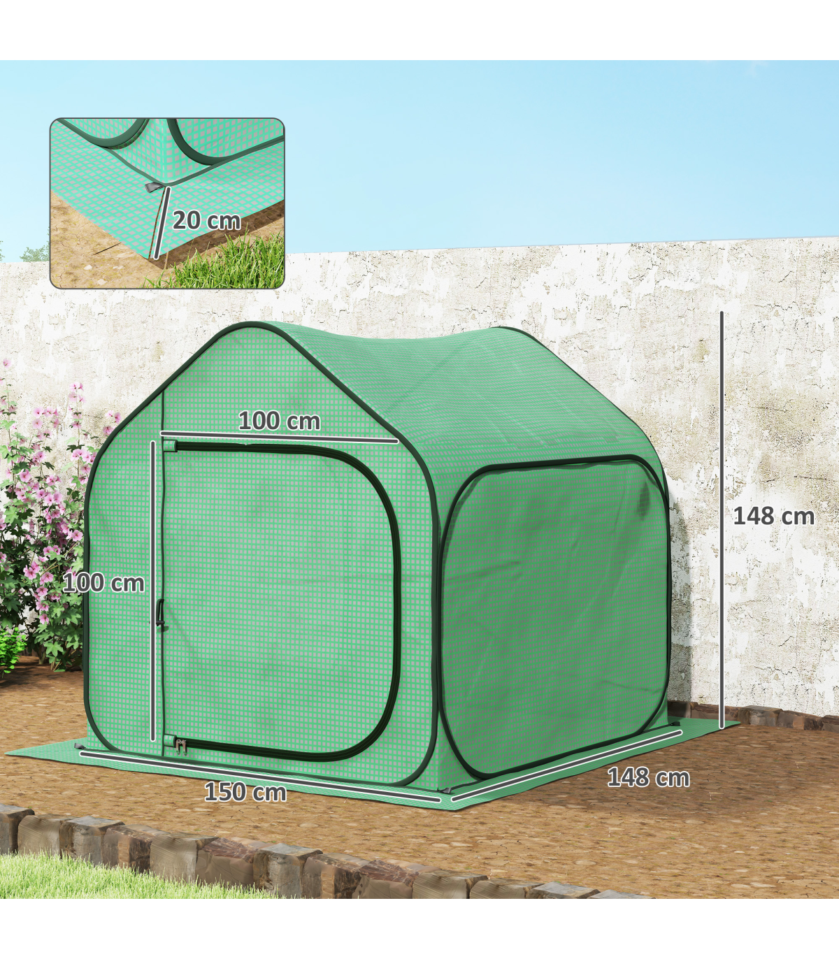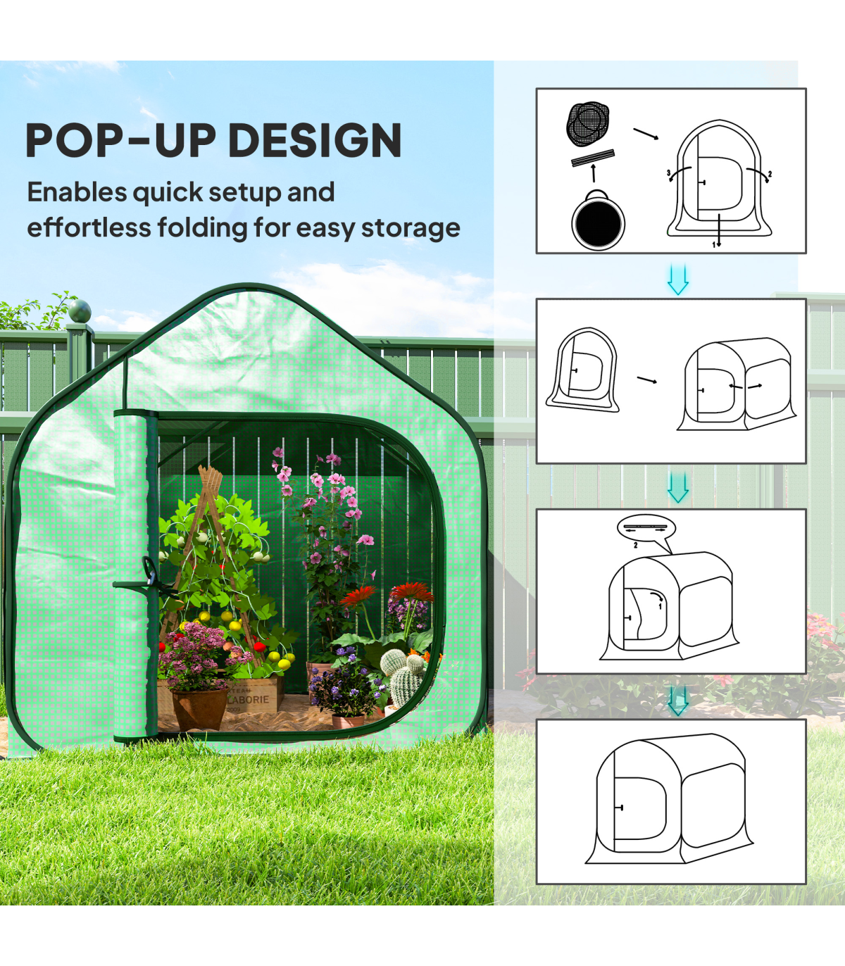 Outsunny Mini Pop Up Greenhouse w/ Reinforced PE Cover, Zipper Door, Green