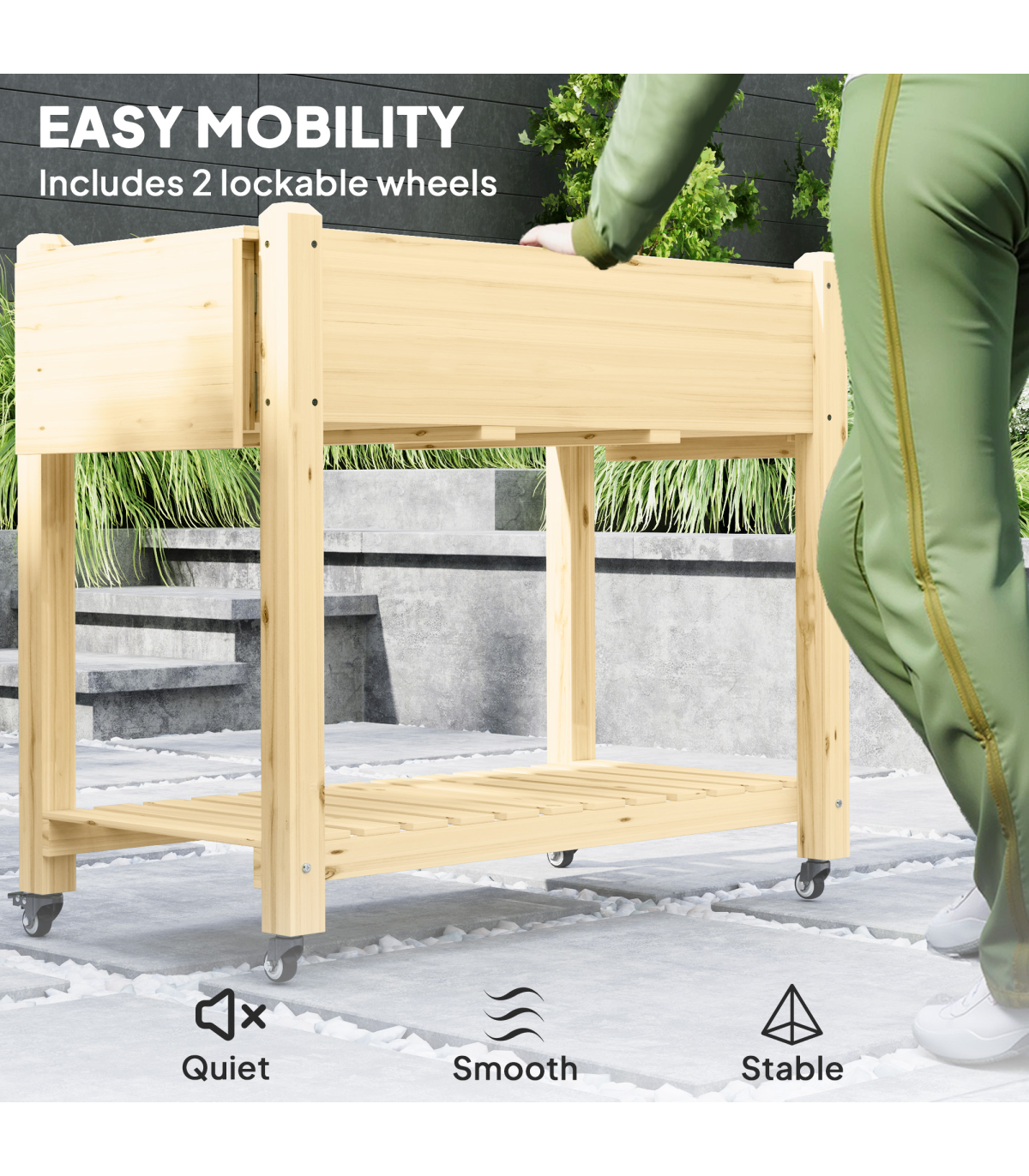 ● Four caster wheels, two lockable, secure planter position easily