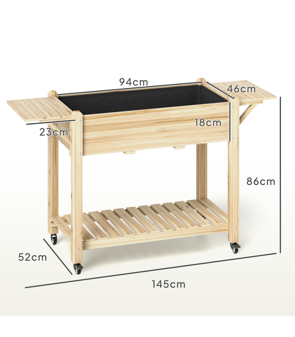 ● Planting Area Dimensions: 94W x 46D x 18H cm
