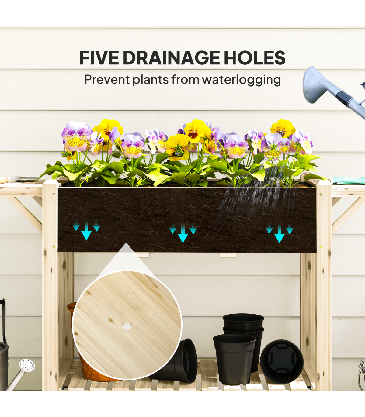 ● Five drainage holes prevent waterlogging, improving plant health