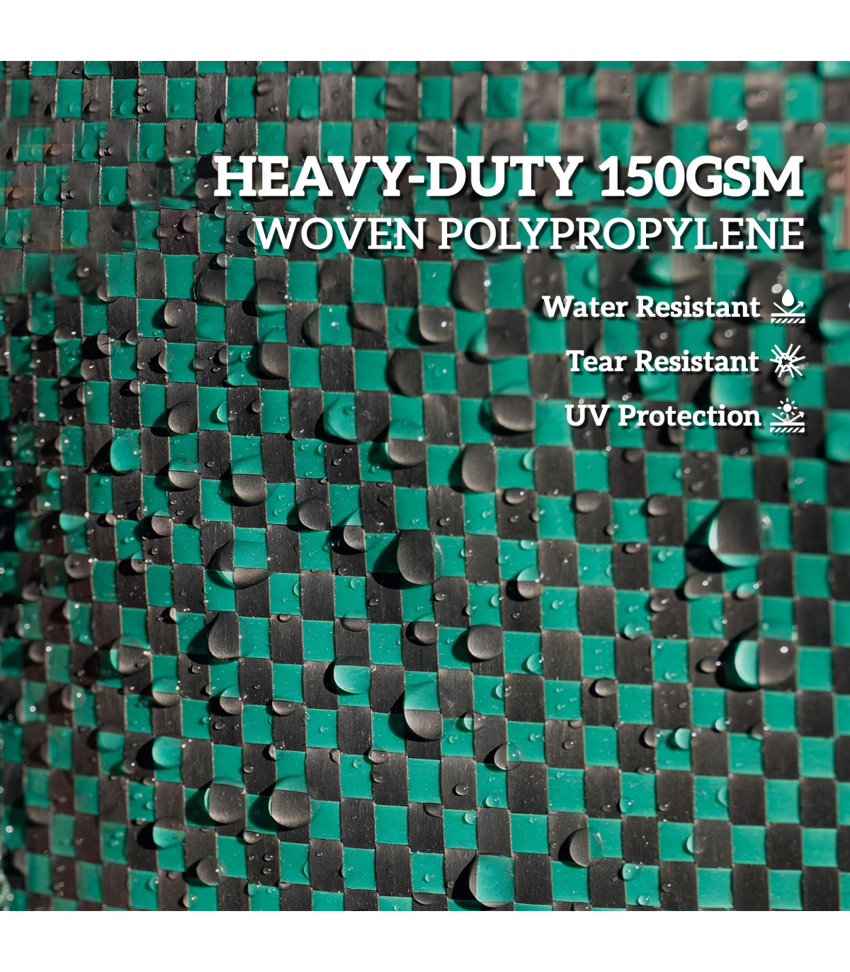 ● Made from 150gsm polypropylene, lightweight, tear and water-resistant