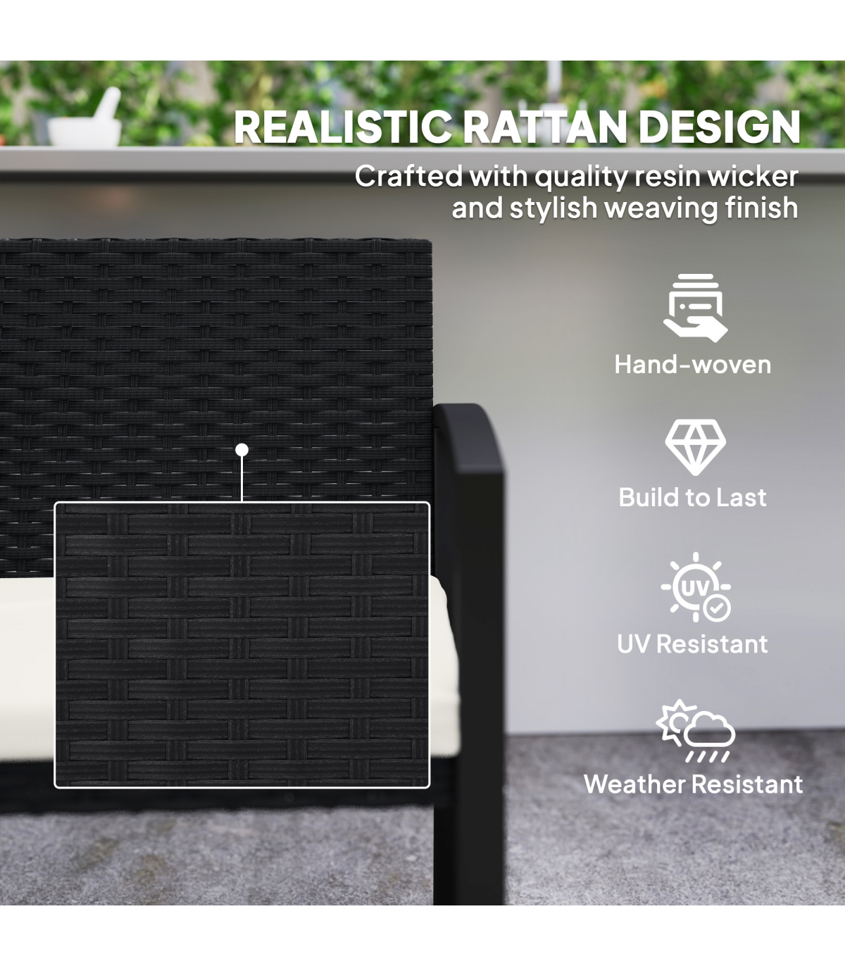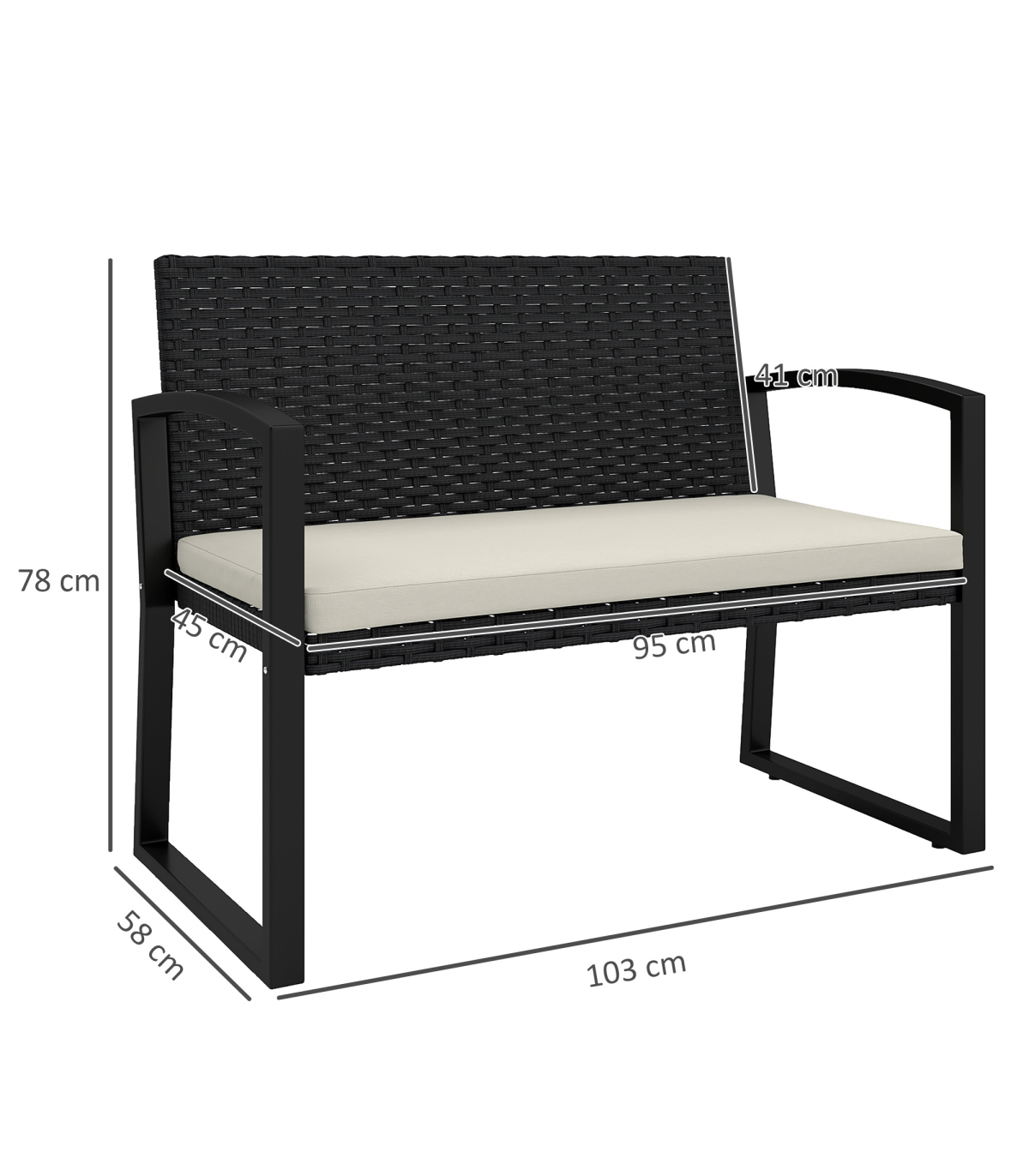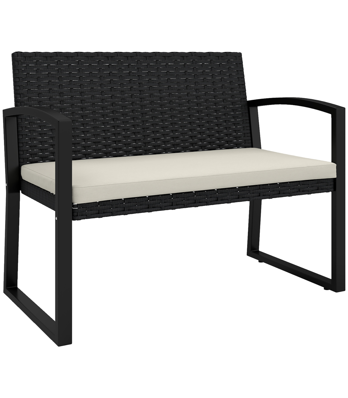 Sit down outdoors in style and comfort, with this Outsunny two seater garden bench. The powder coated steel frame for a strong piece, fitted with a rattan back and seat for garden style. Fitted with a padded seat cushion so you'll sit comfortably, rattan bench is complete with a removable and washable cover for hygiene.
