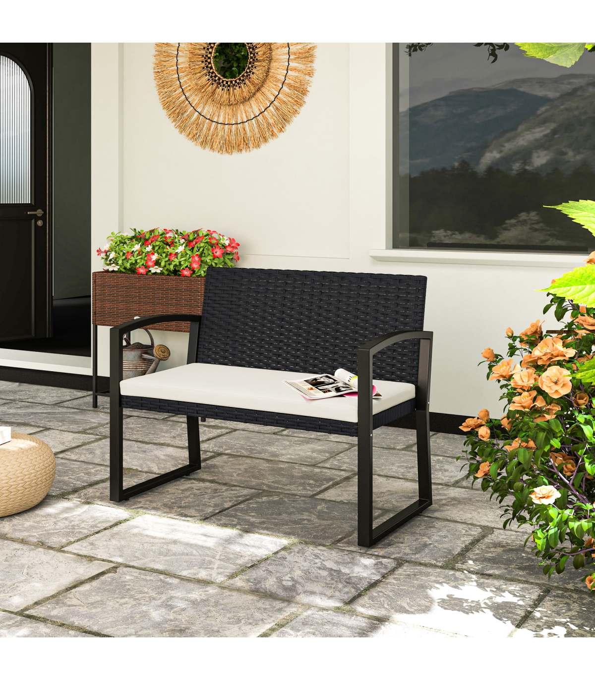 Rattan Garden Bench with Cushioned Comfort for Relaxation & Style