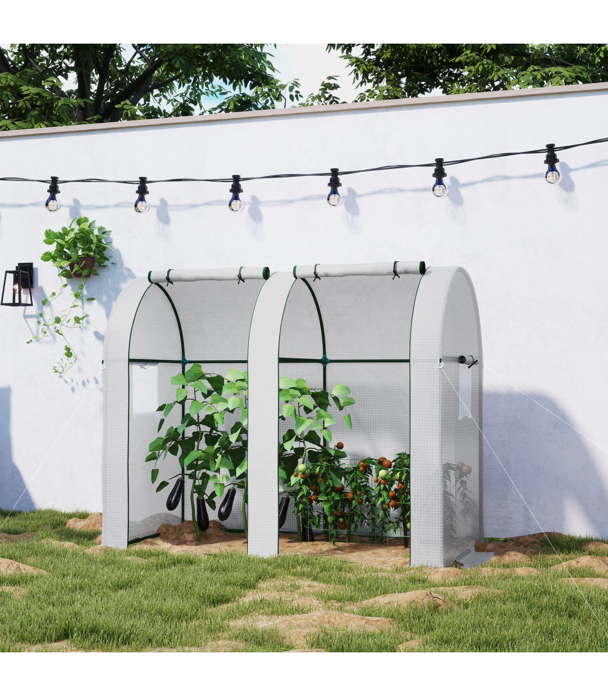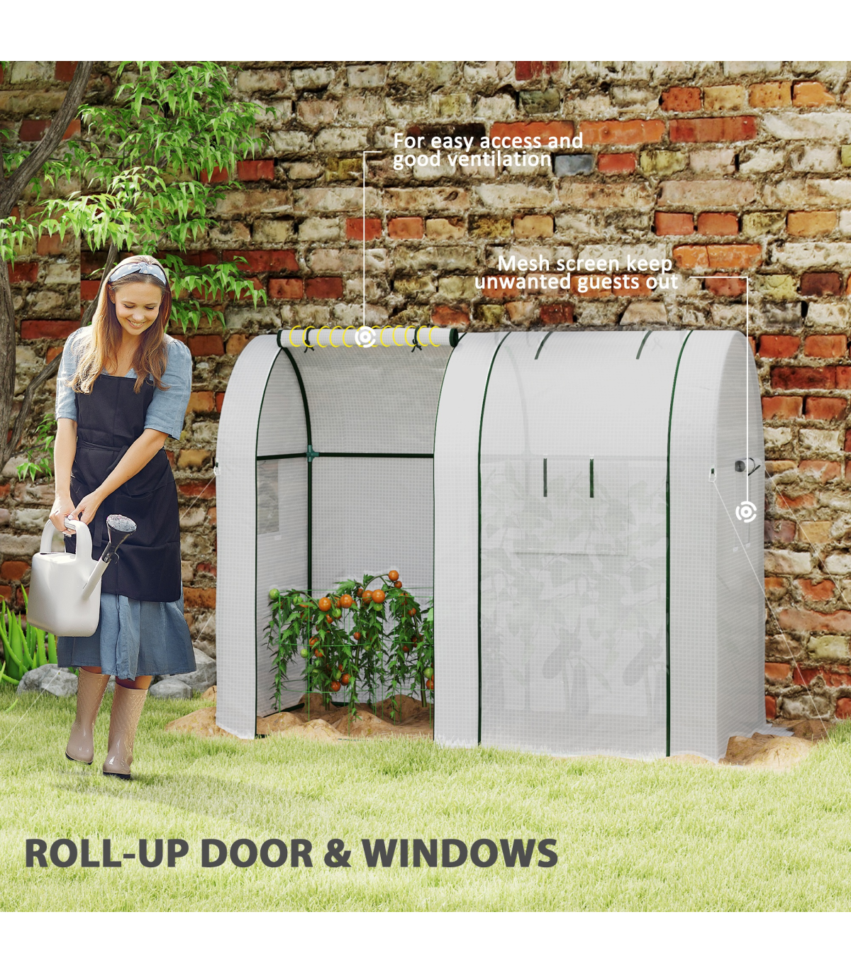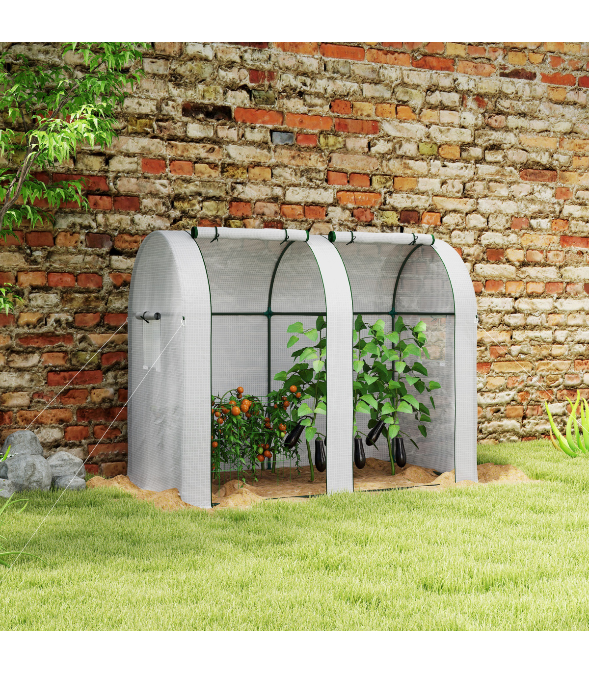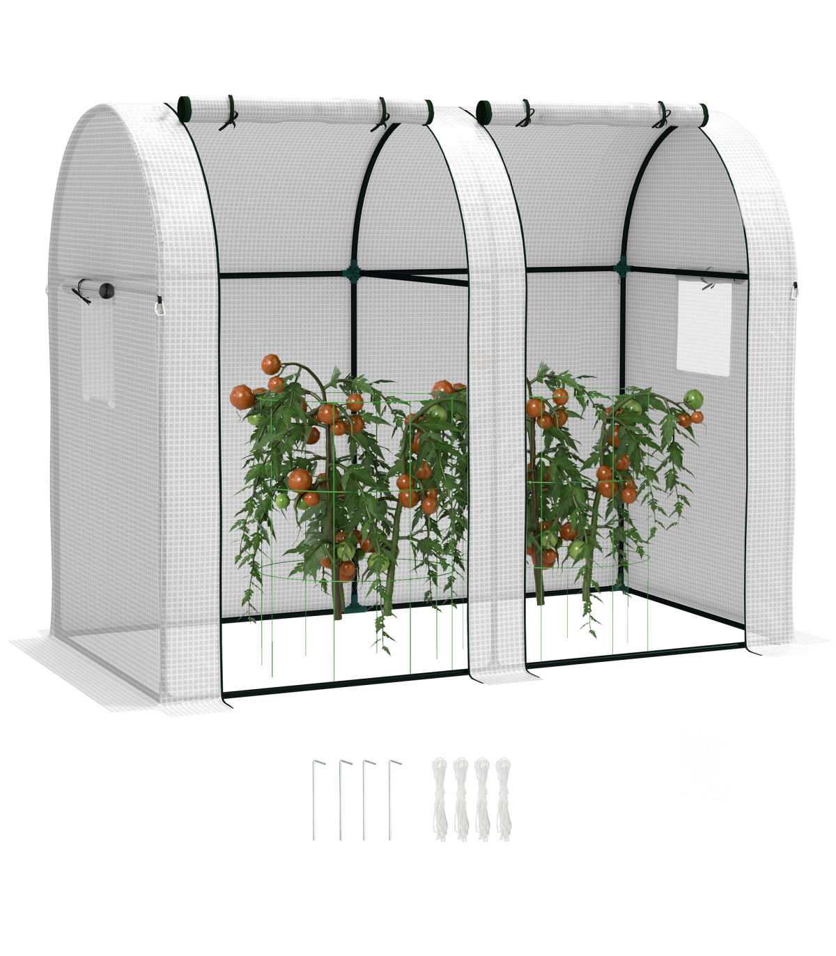 Outsunny Tomato Greenhouse with 2 Roll-up Doors, 185 x 94 x 150cm, White