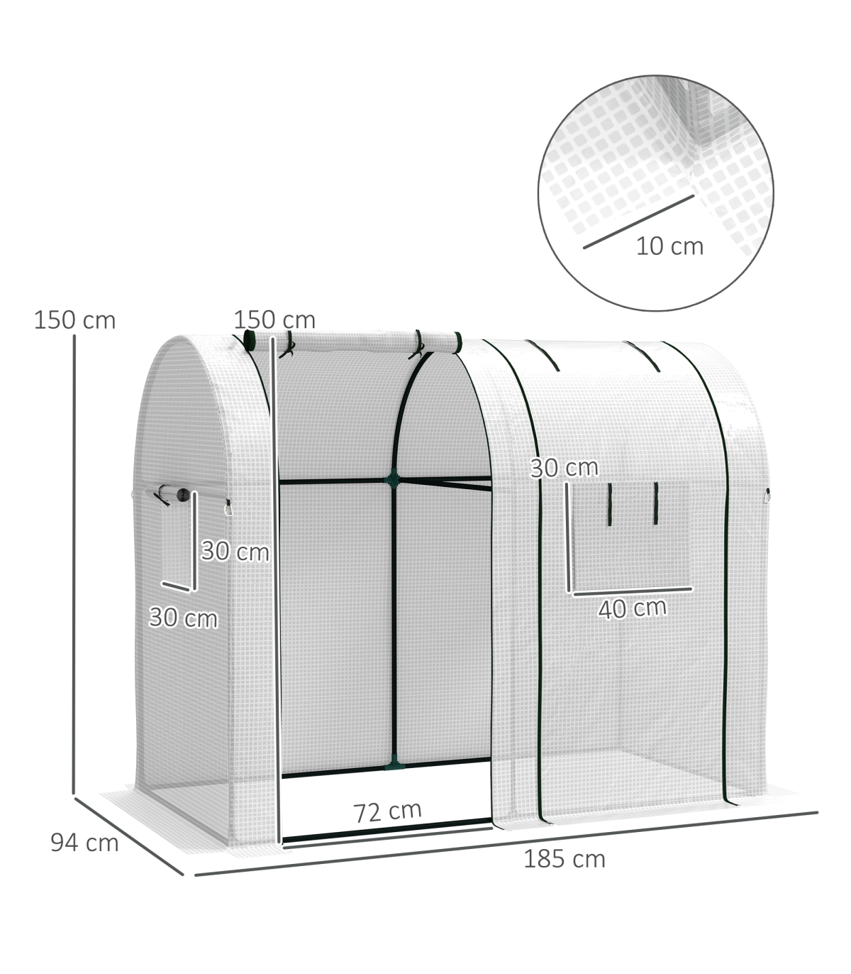 ● Roll-up zipped door and mesh windows for easy access and ventilation