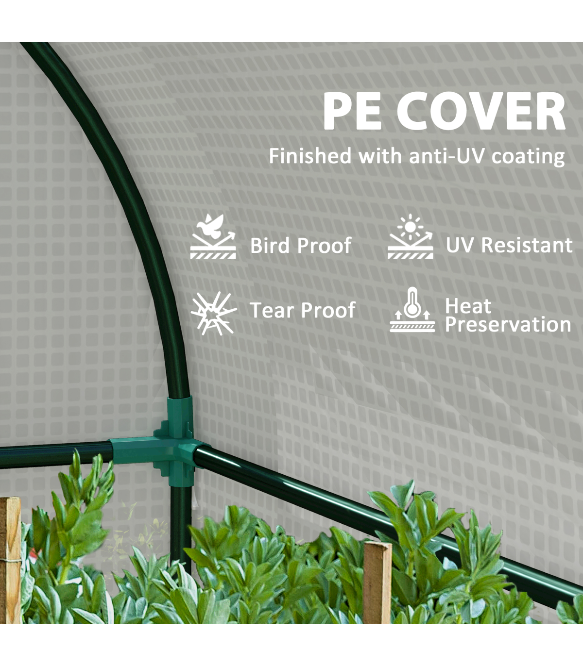 ● Plastic, UV-resistant cover: a safe shield for plants inside