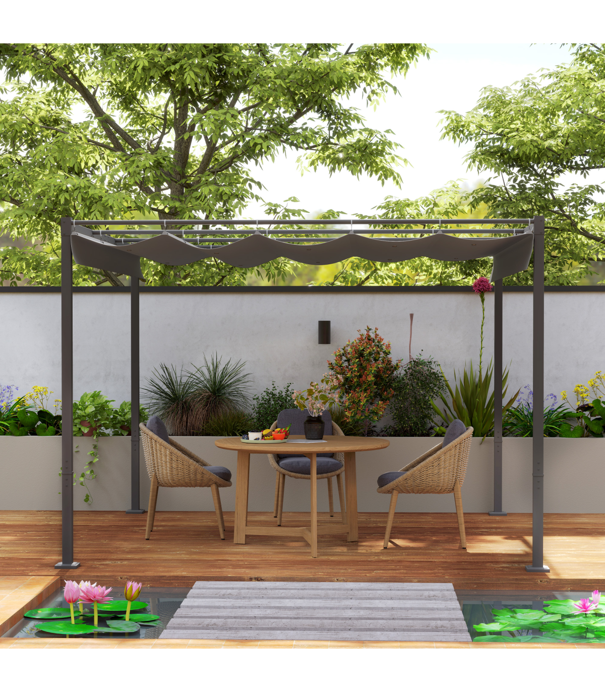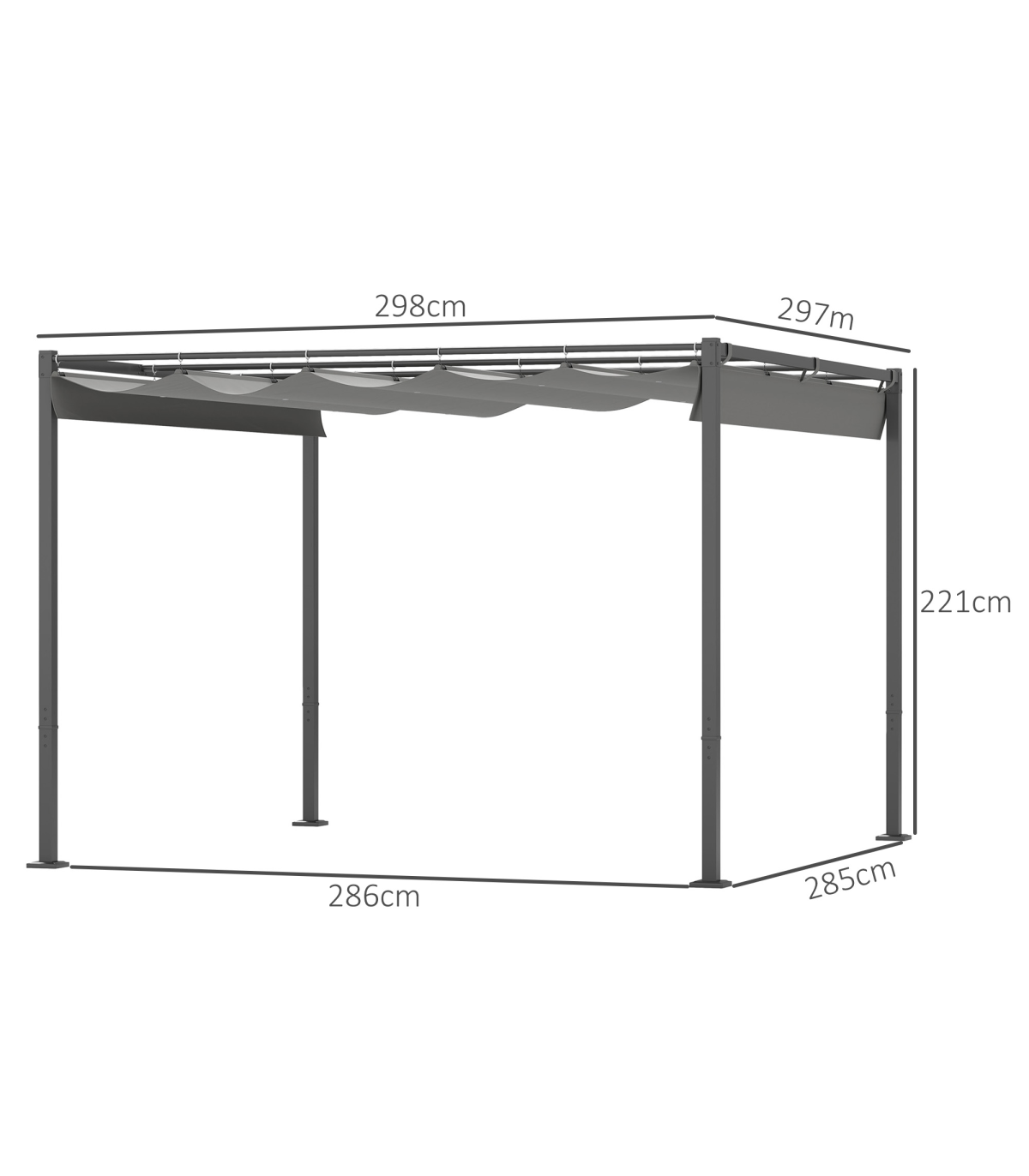 Outsunny 3 x 3(m) Garden Pergola with Retractable Roof, UPF30+, Grey