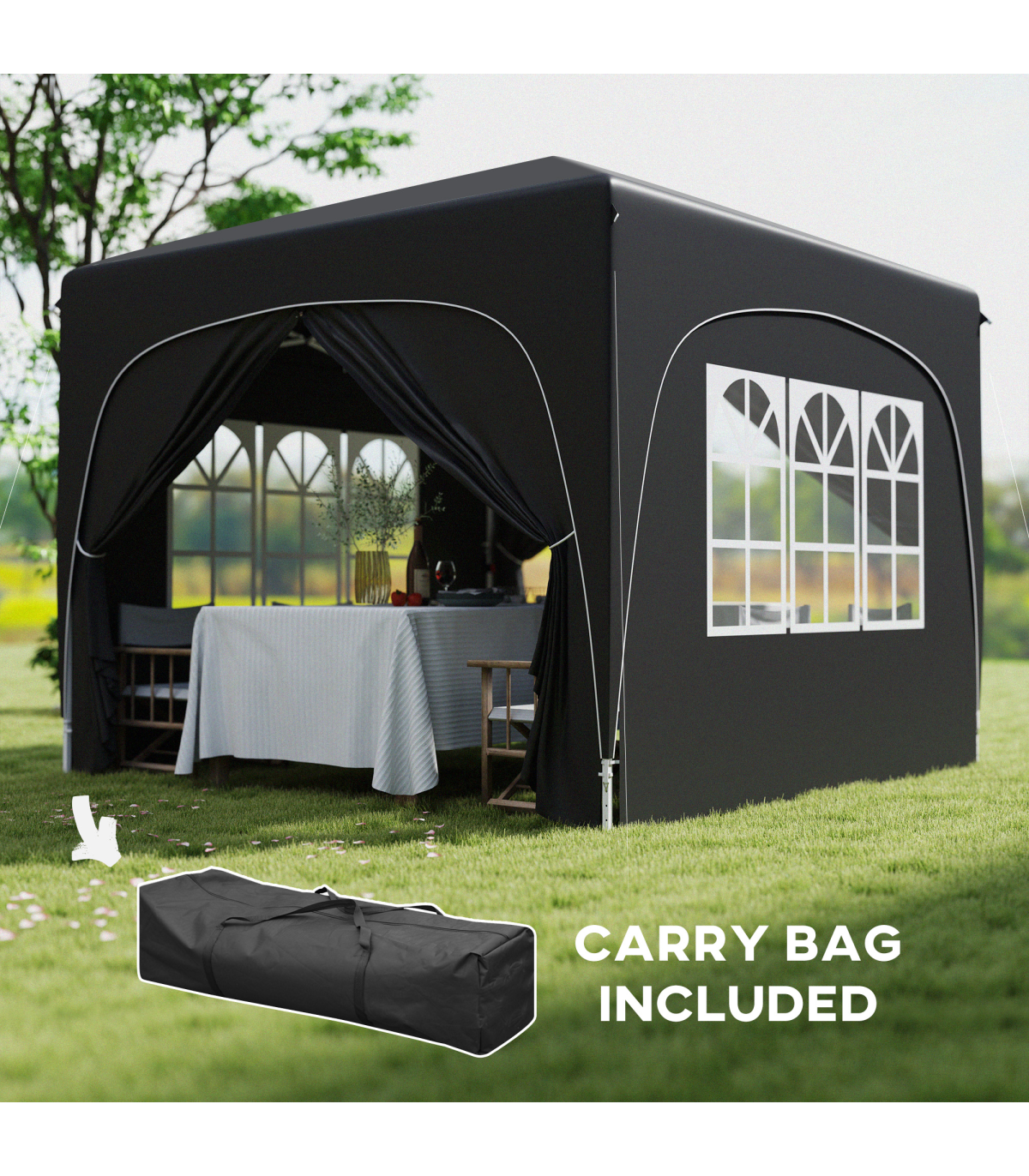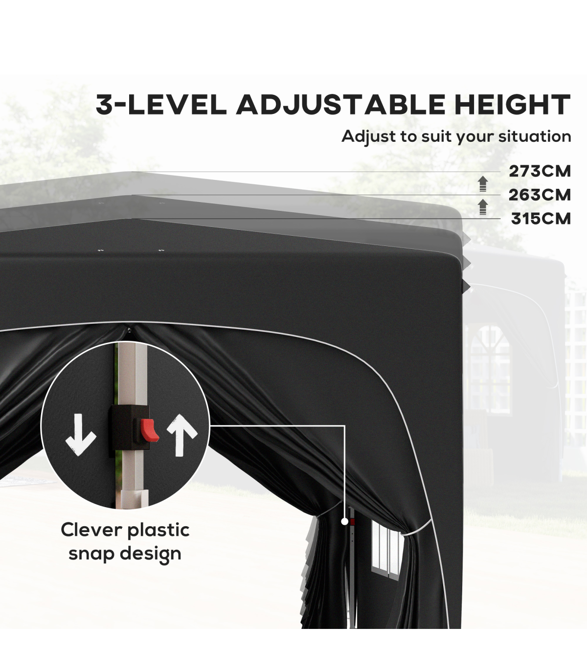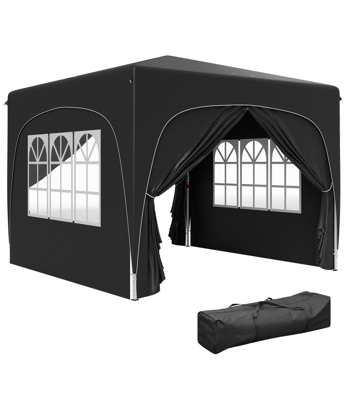 Outsunny 3 x 3(m) UPF50+ Pop Up Gazebo with Sides and Carry Bag, Black