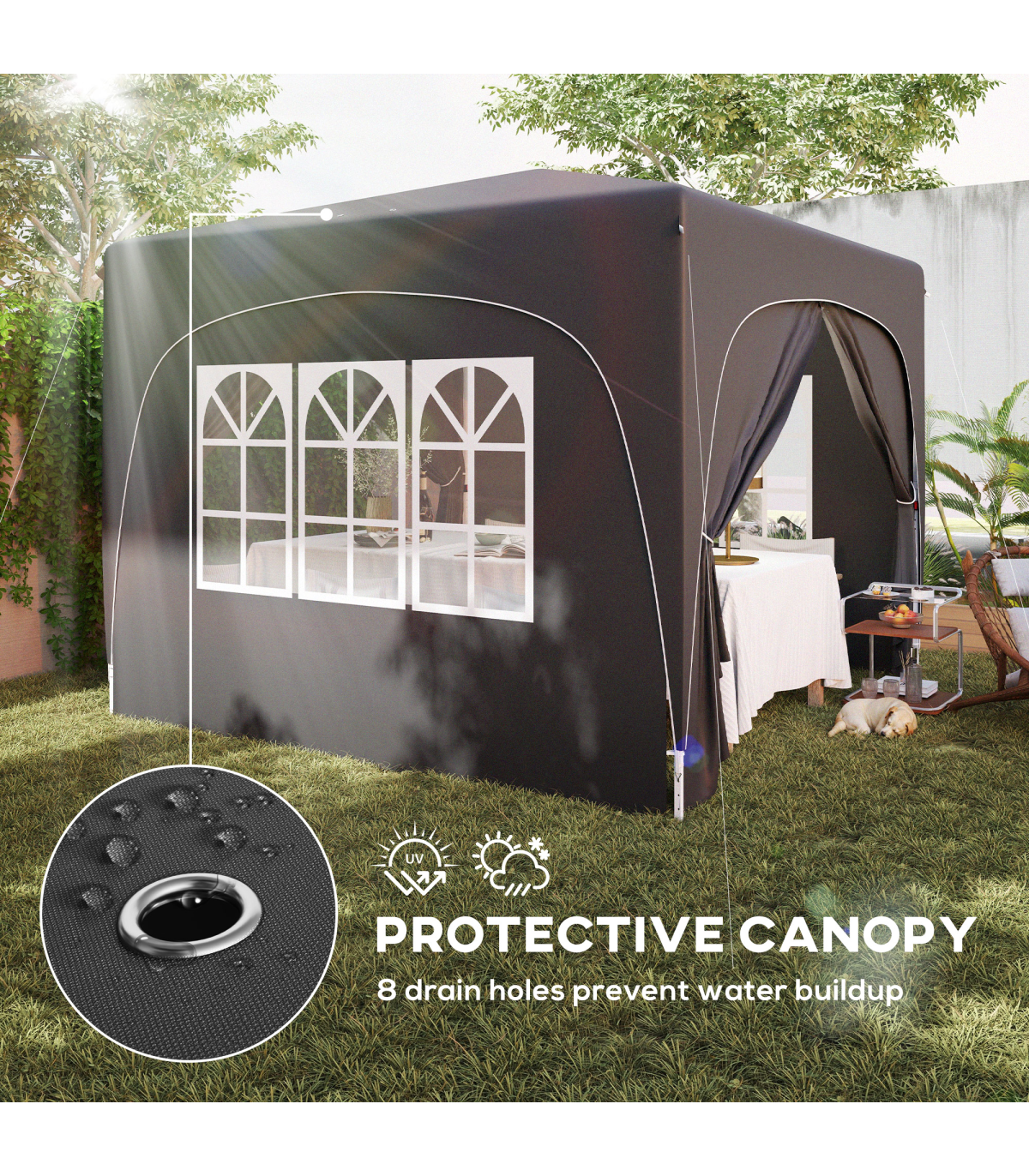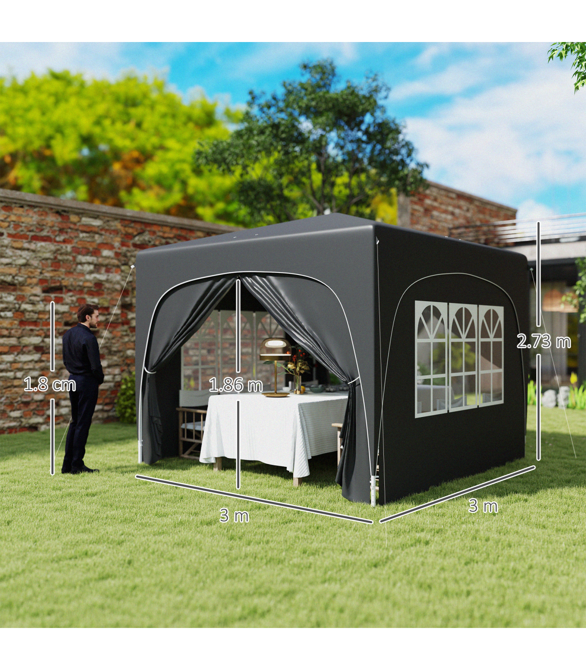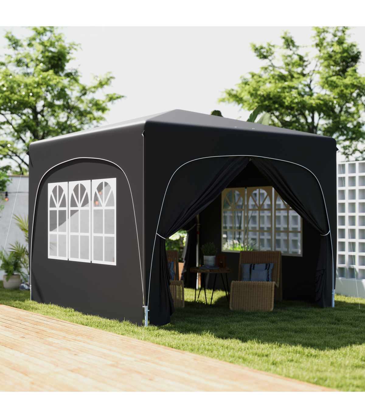 Outsunny 3 x 3(m) UPF50+ Pop Up Gazebo with Sides and Carry Bag, Black