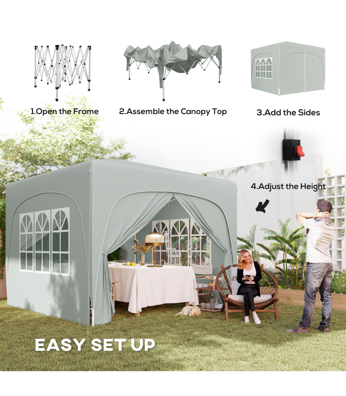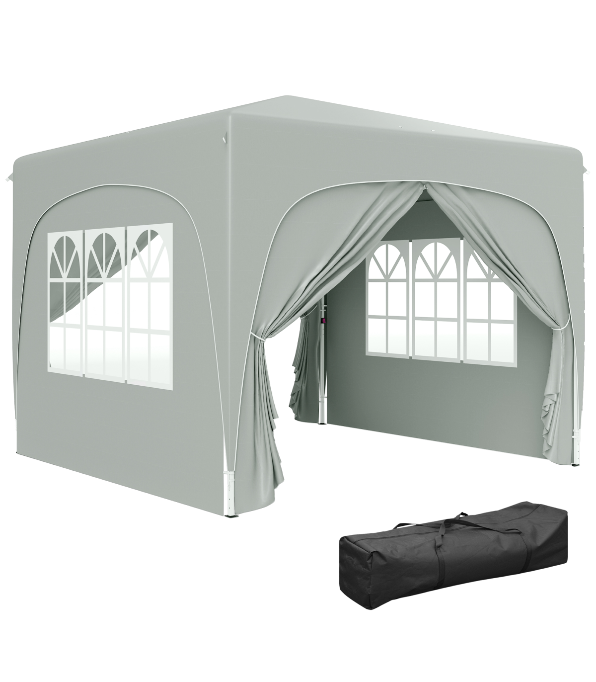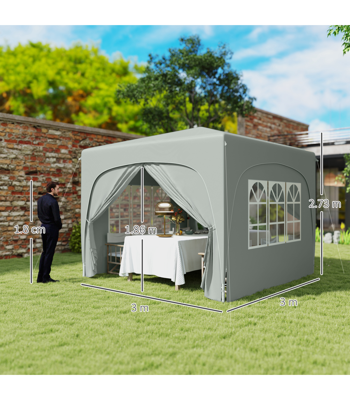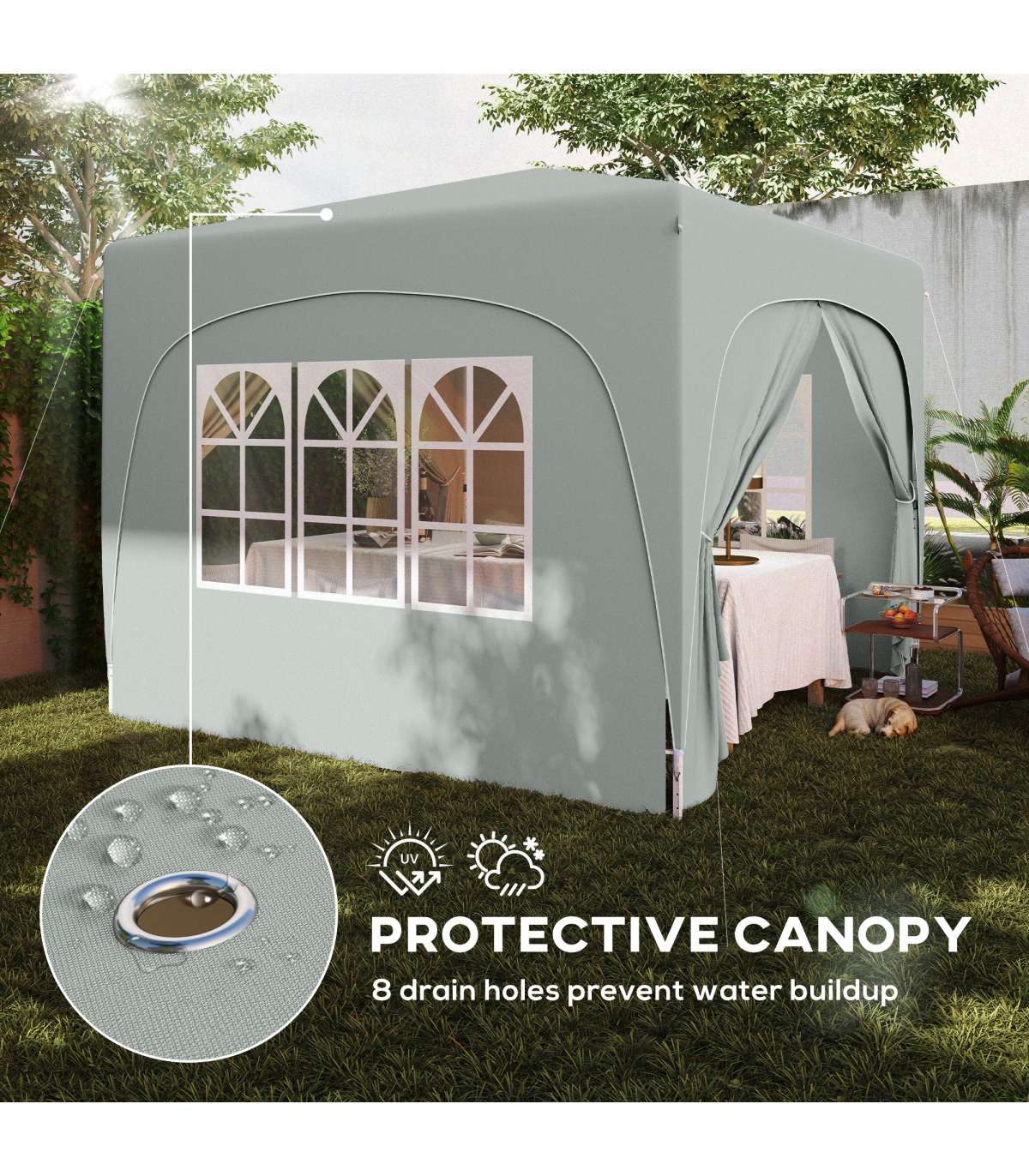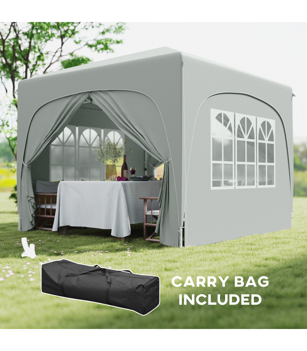 Outsunny 3 x 3(m) UPF50+ Pop Up Gazebo with Sides and Carry Bag, Light Grey