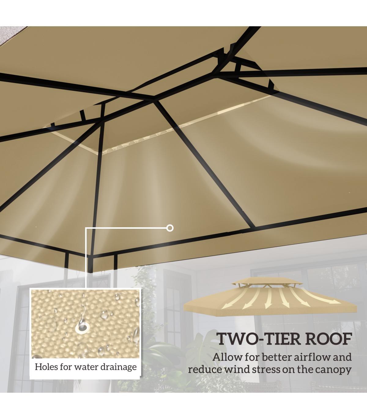 ● Two-tier roof lets air pass in and out easily