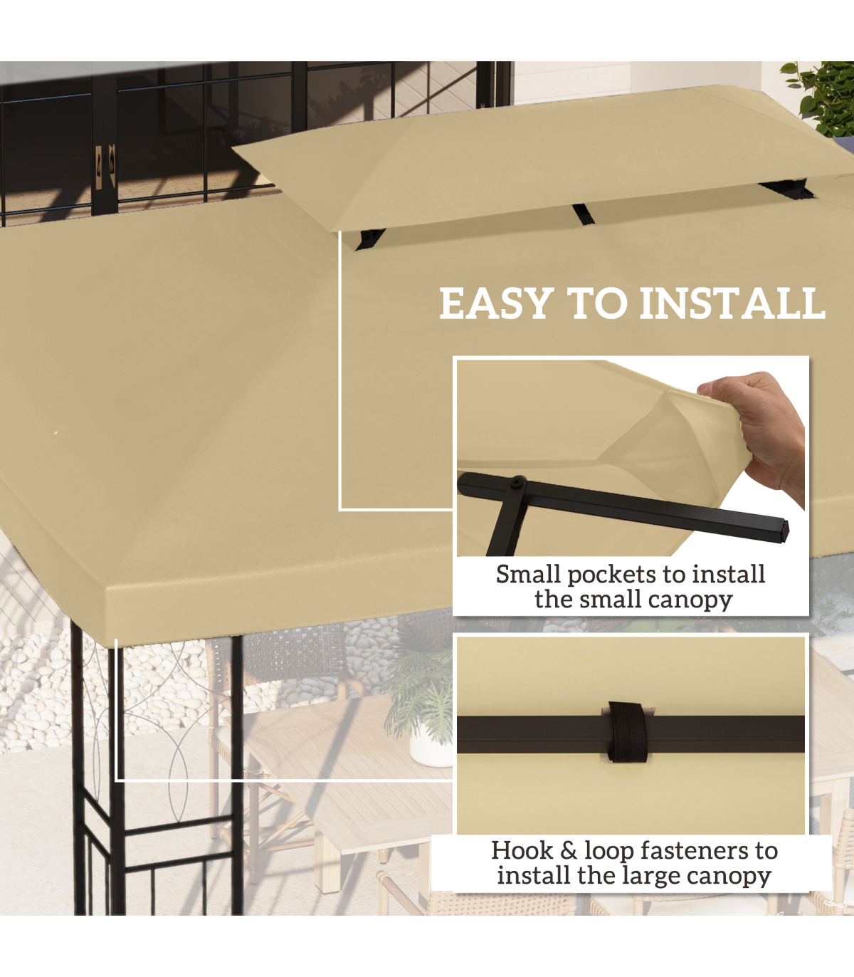 ● Velcro-style straps to attach and remove from gazebo easily