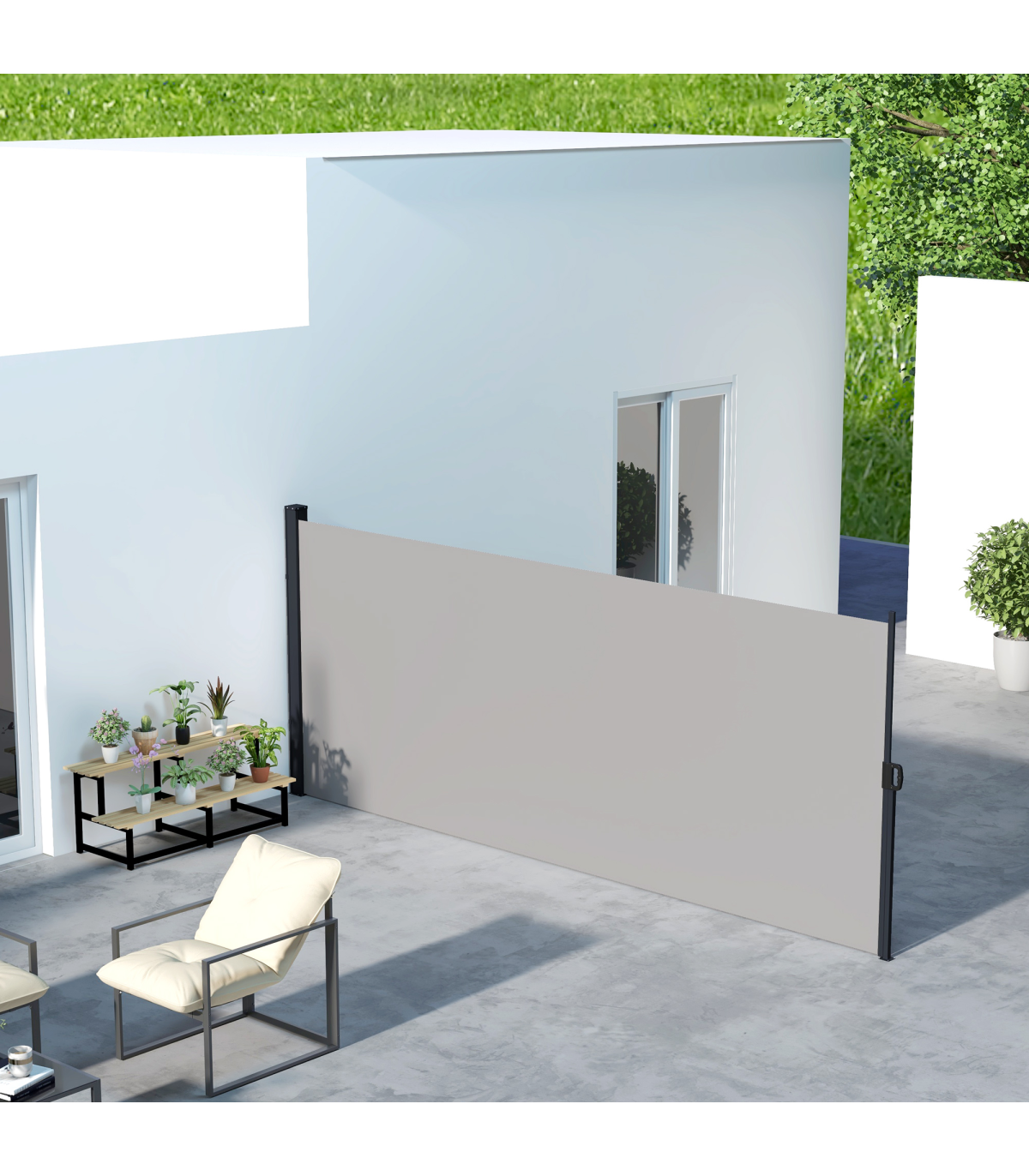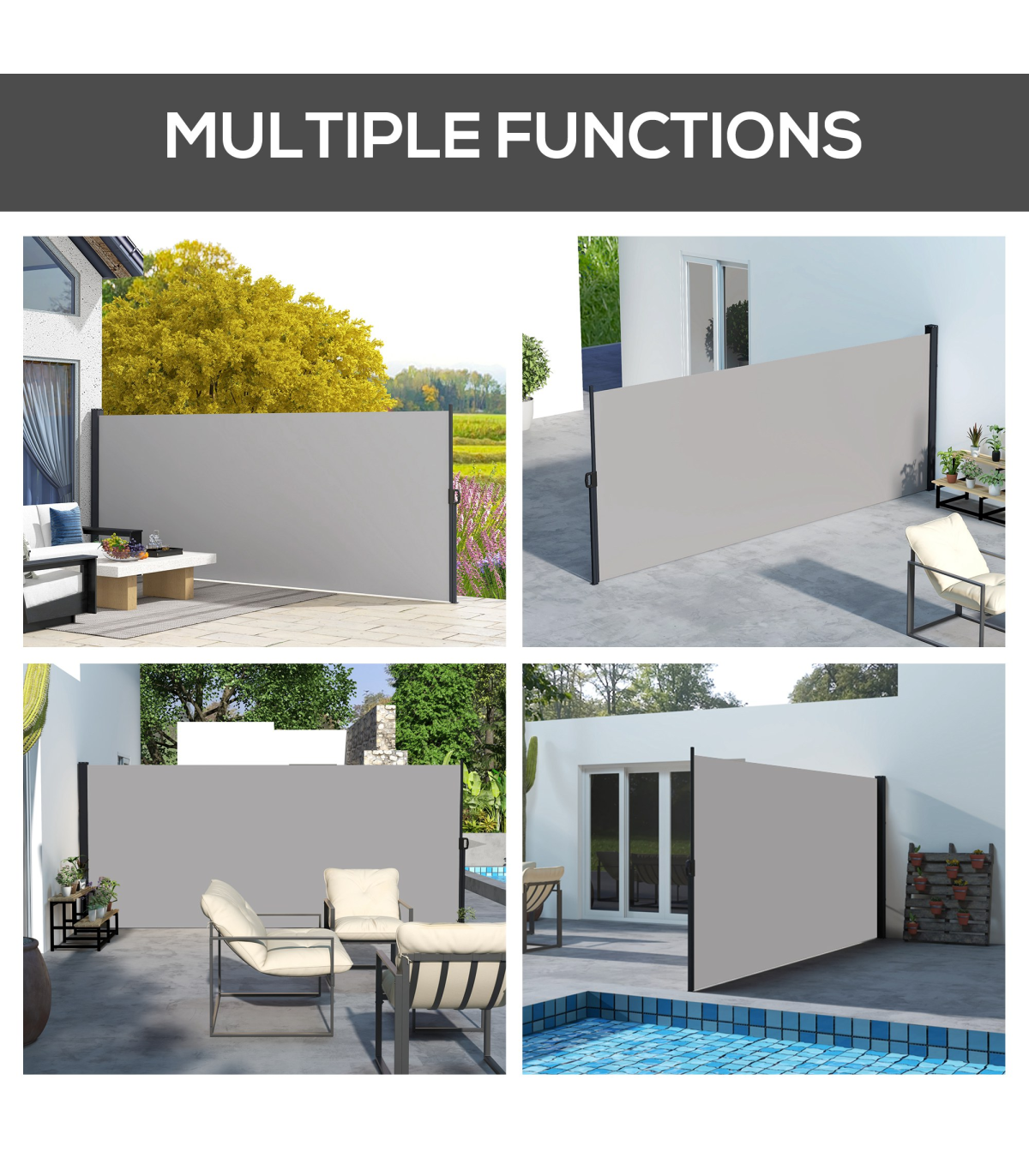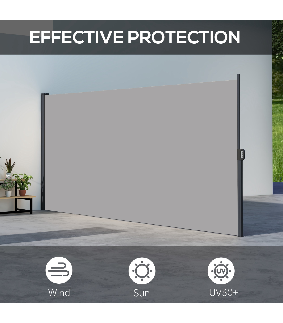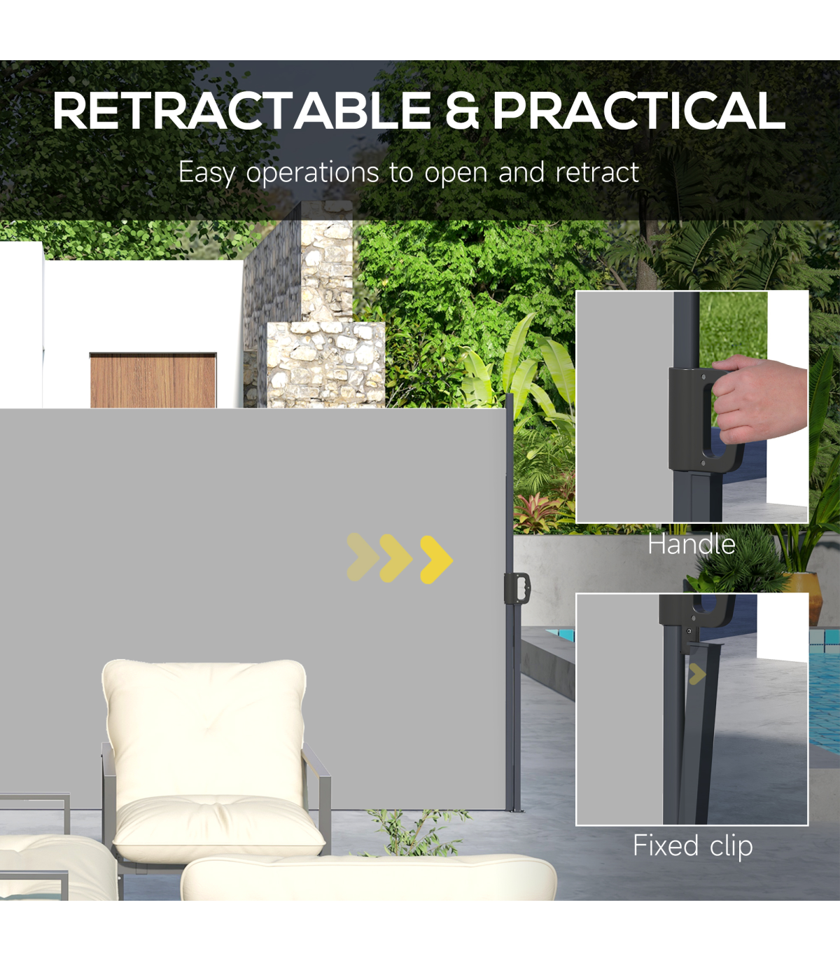● Retractable awning: pull the roller blind to a position you want
