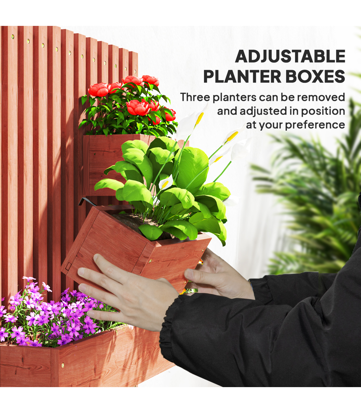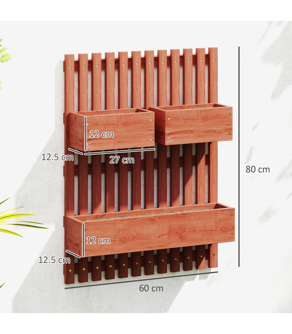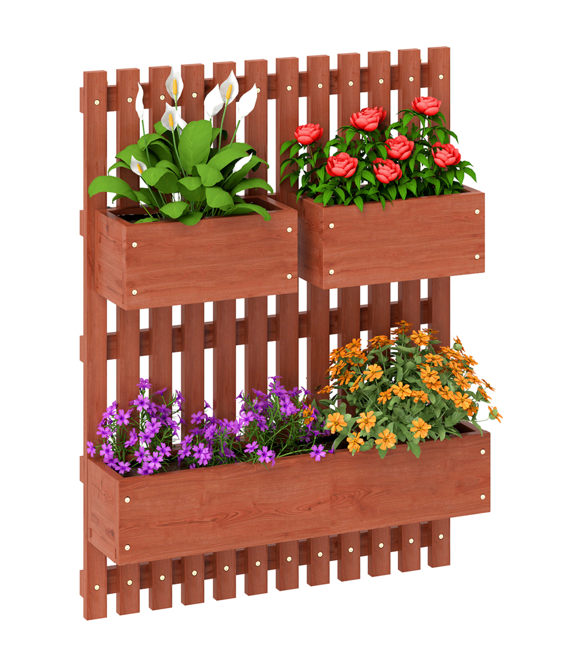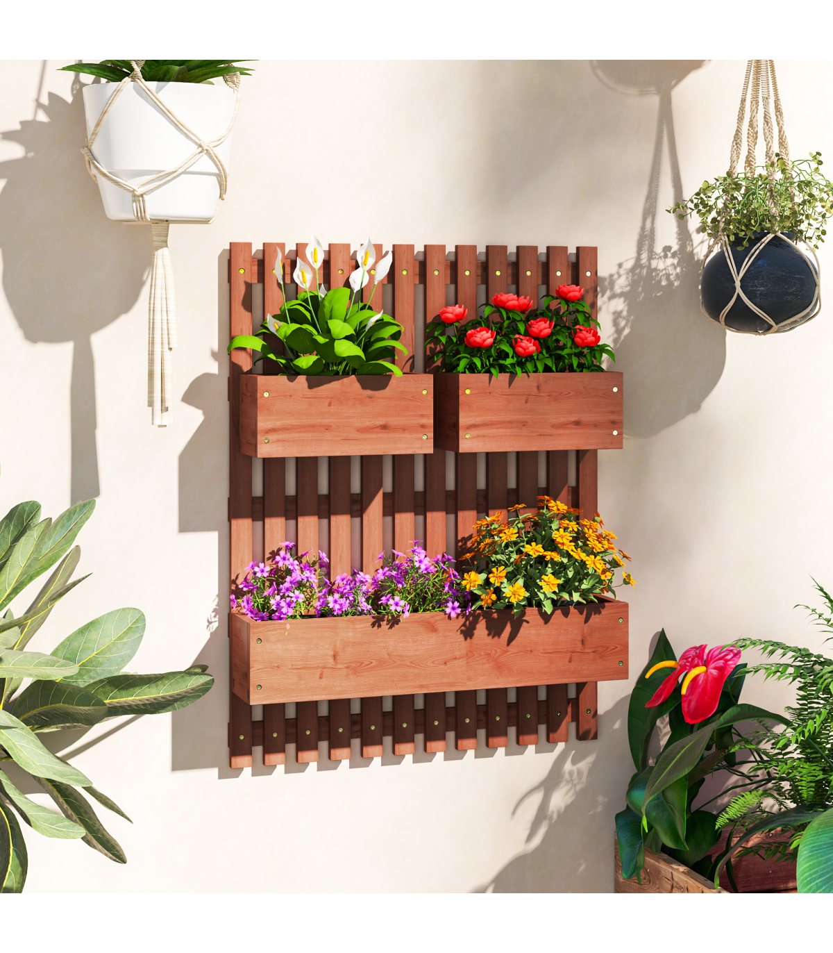 Position plants at a level you want with this Outsunny wall-mounted planter. It comes with two small and a large planter box, all of which are movable: grow and display different plants at a position you want. Made from wood, the structure is strong with a clear varnish coating for gentle protection. The outdoor planter also features a trellis back panel, which allows vines and shooting plants to grow around.