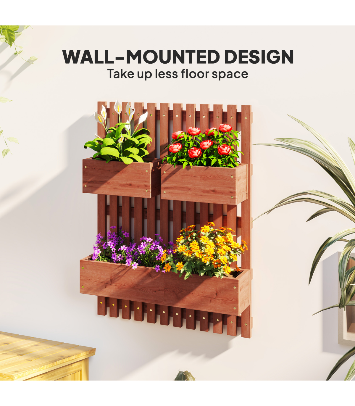 Outsunny Wooden Garden Planters with Trellis Wall-mounted Raised Garden Bed