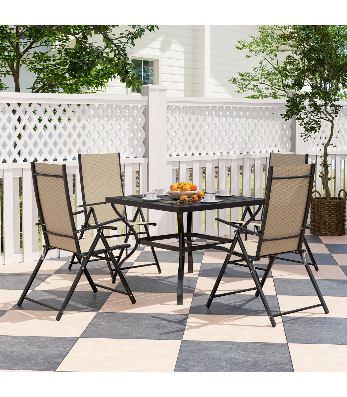 ● Patio furniture set comes with a square dining table and four matching folding chairs