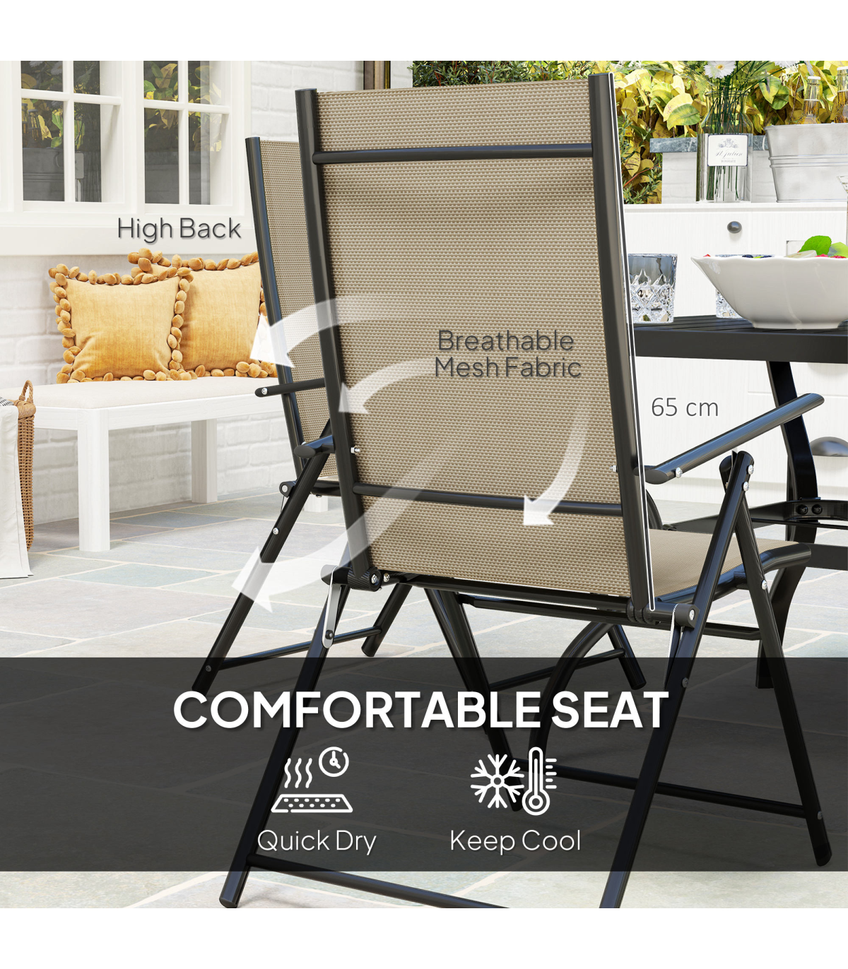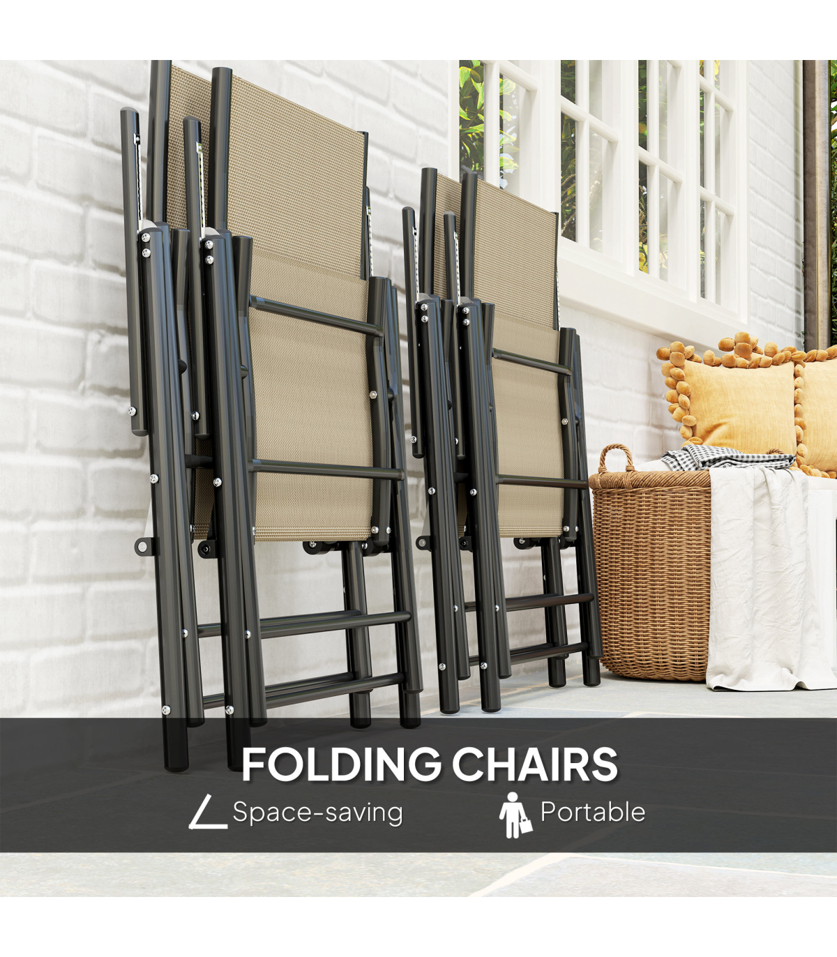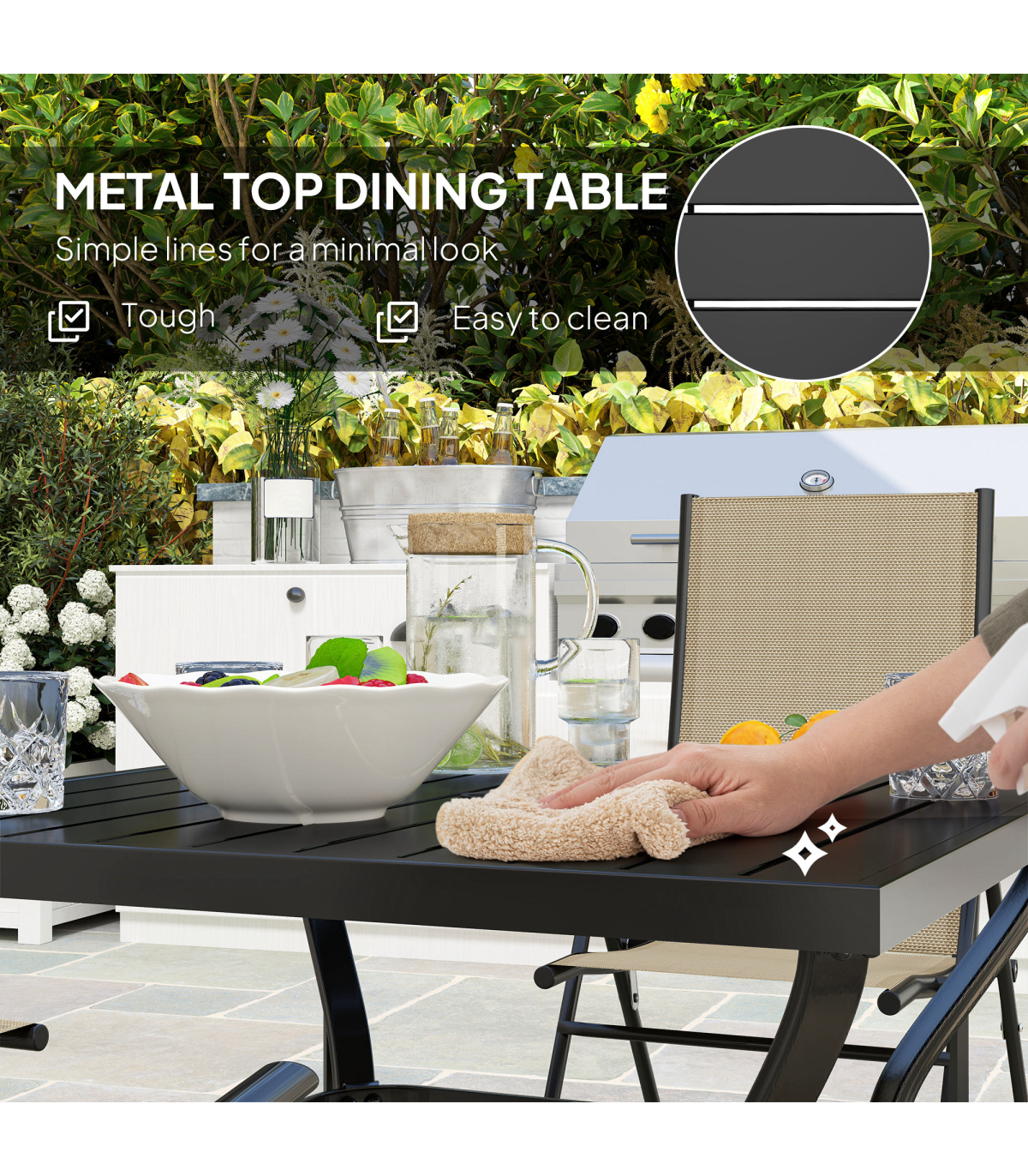 Outsunny 5 PCs Garden Dining Set, Folding Chairs and Metal Top Table, Khaki
