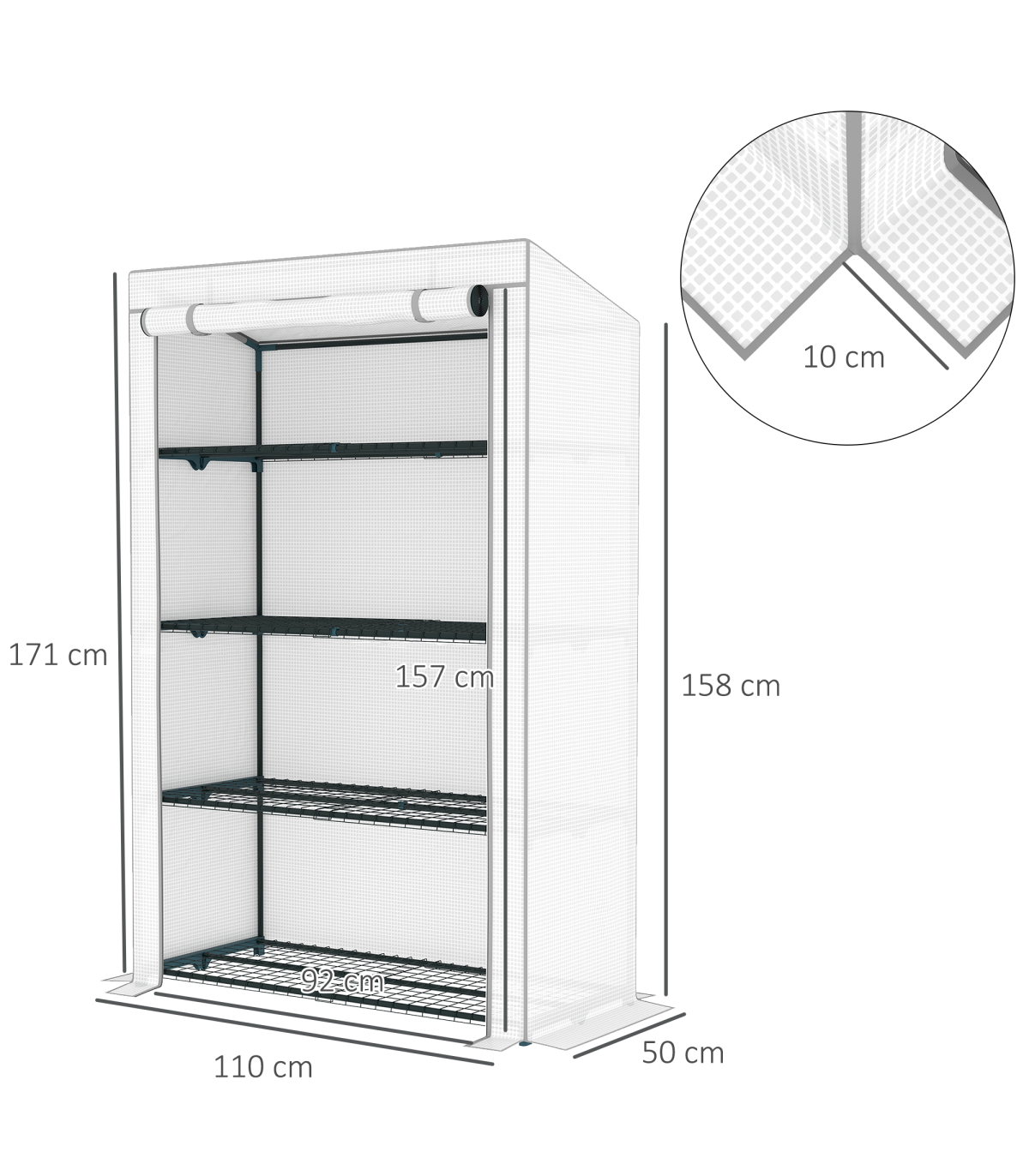 Outsunny 4 Tier Lean-to Mini Greenhouse with Reinforced PE Cover, Grey