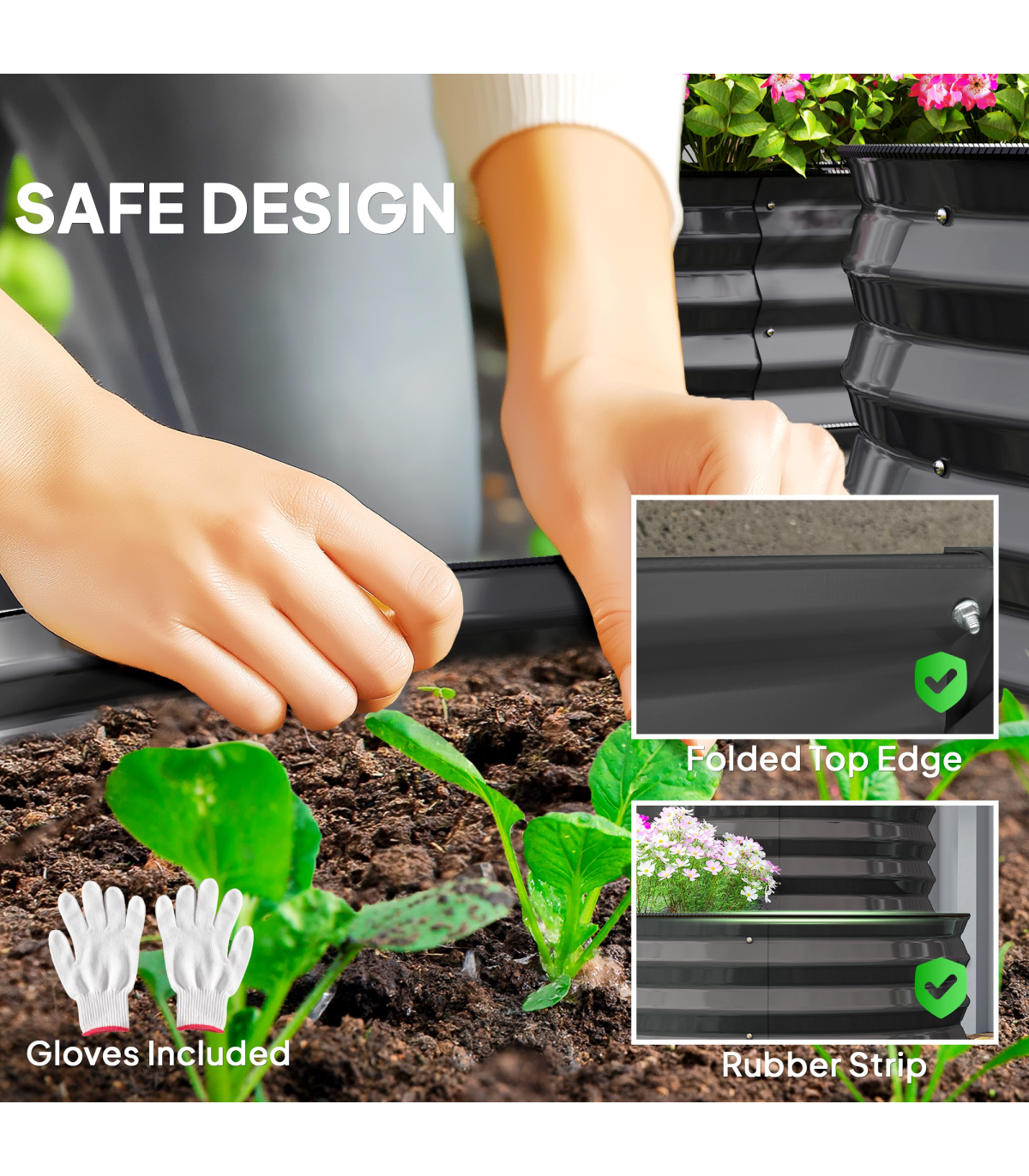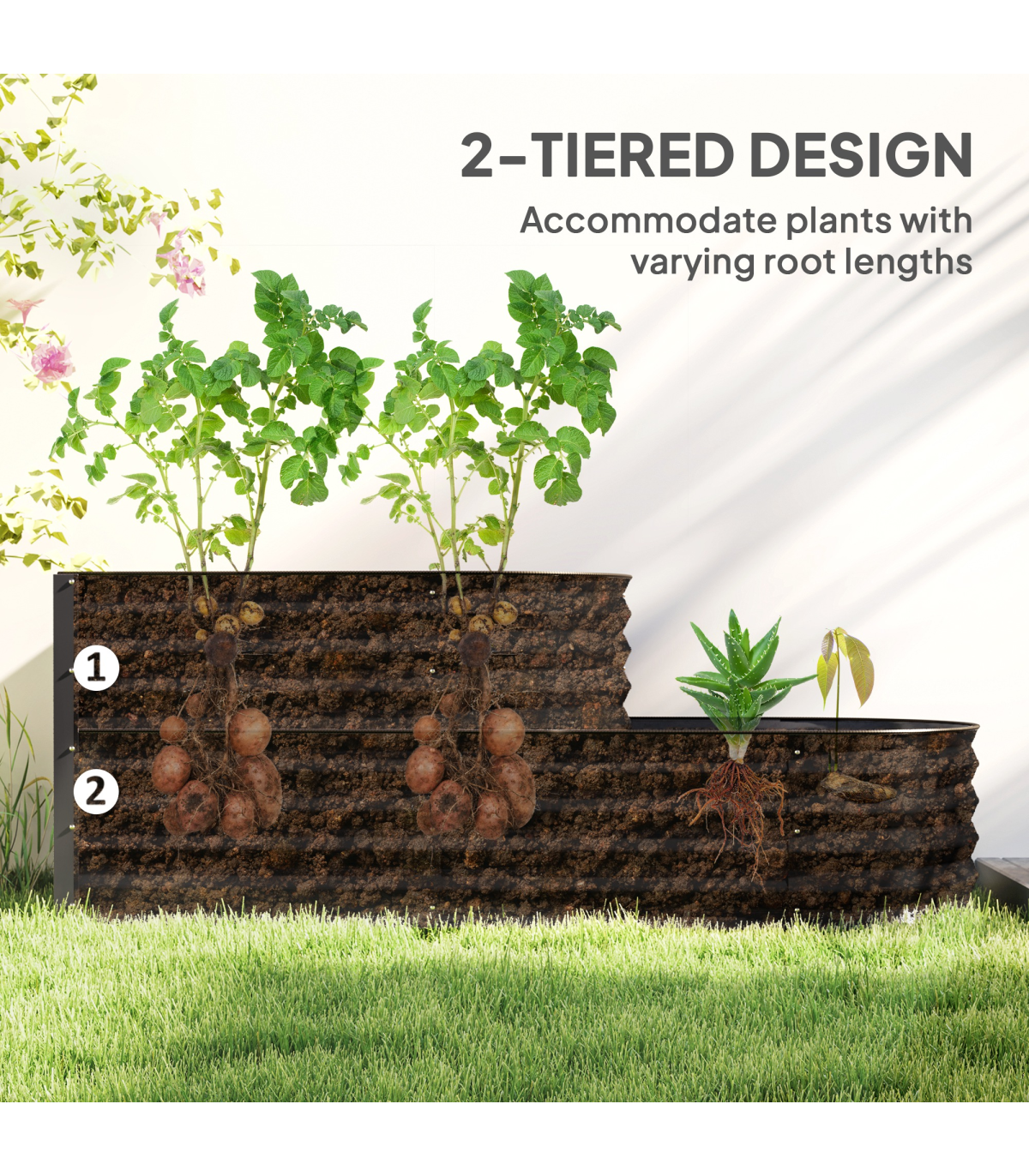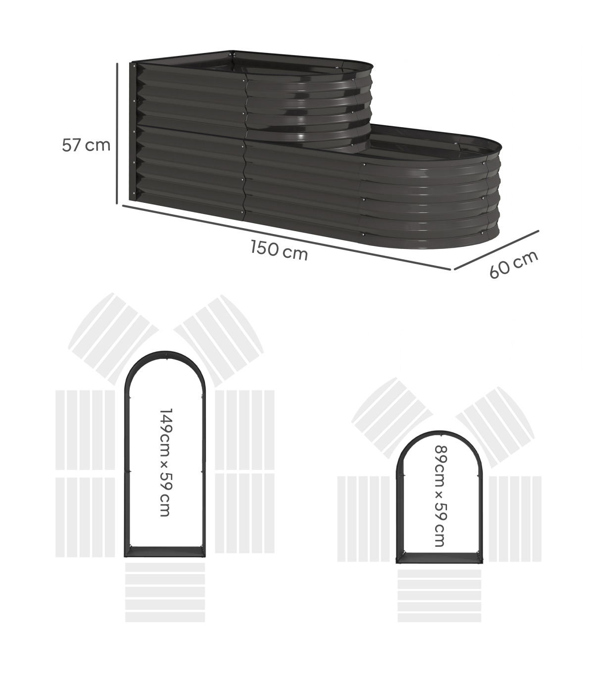 ● Planting Area Size: 149L x 59Wcm (bottom), 89L x 59W (top)
